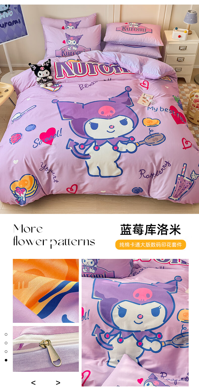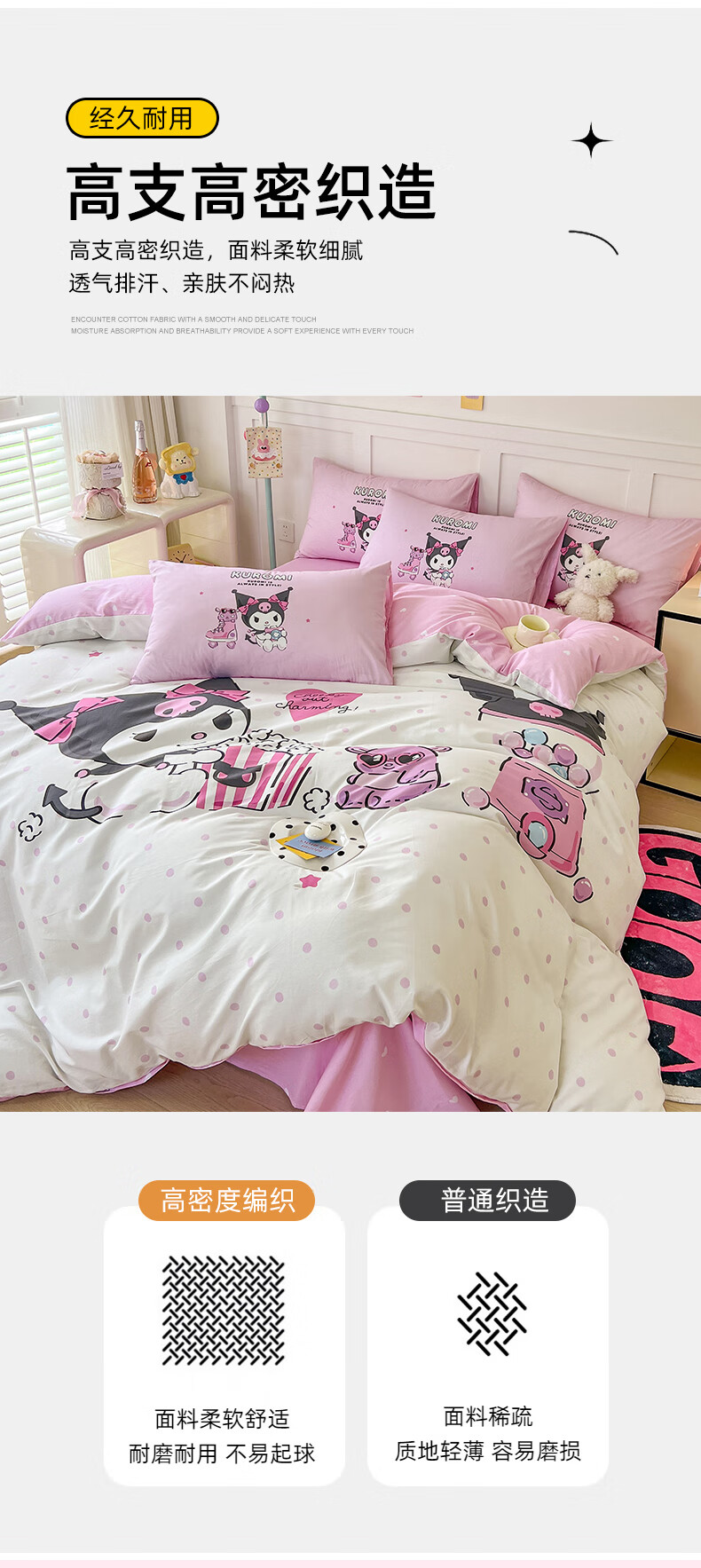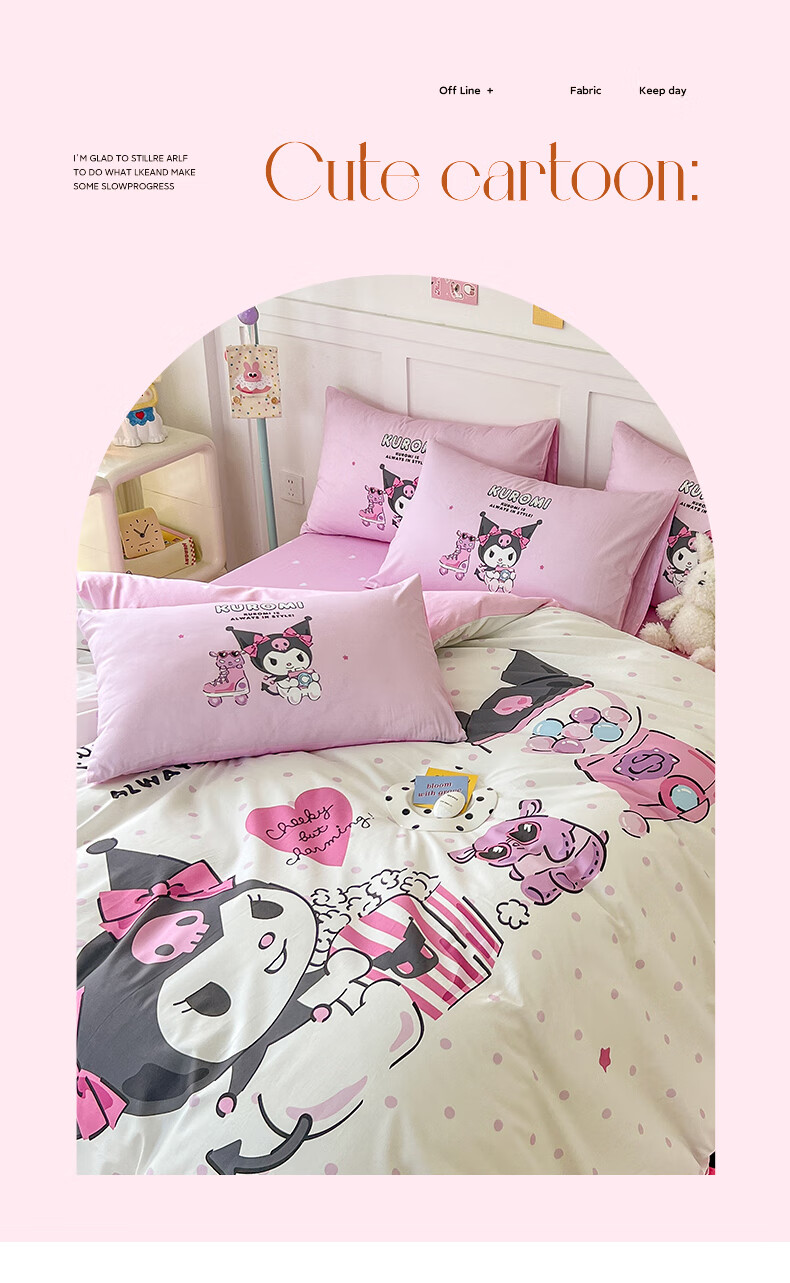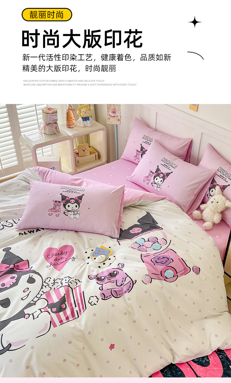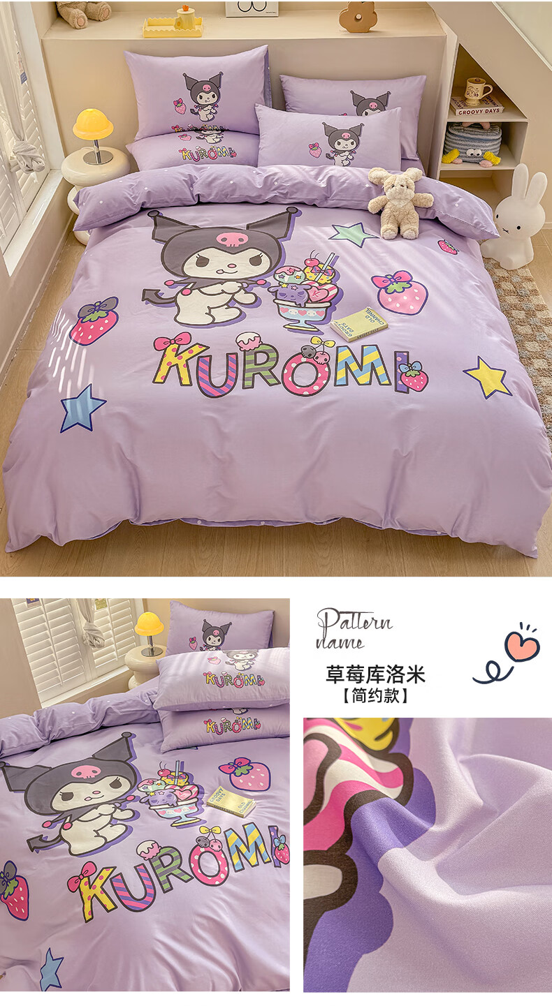 Mercury Series Home Textiles Children's Sanrio Cotton Three/Four Piece Set 120 Count Pure Cotton Cartoon Girl Printed Bed Skirt Bed Sheet Quilt Cover Sheet Large Simple - Good Night Kurome 1.8m Bed Skirt Four Piece Quilt Cover 200*230