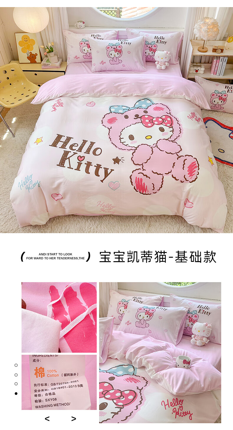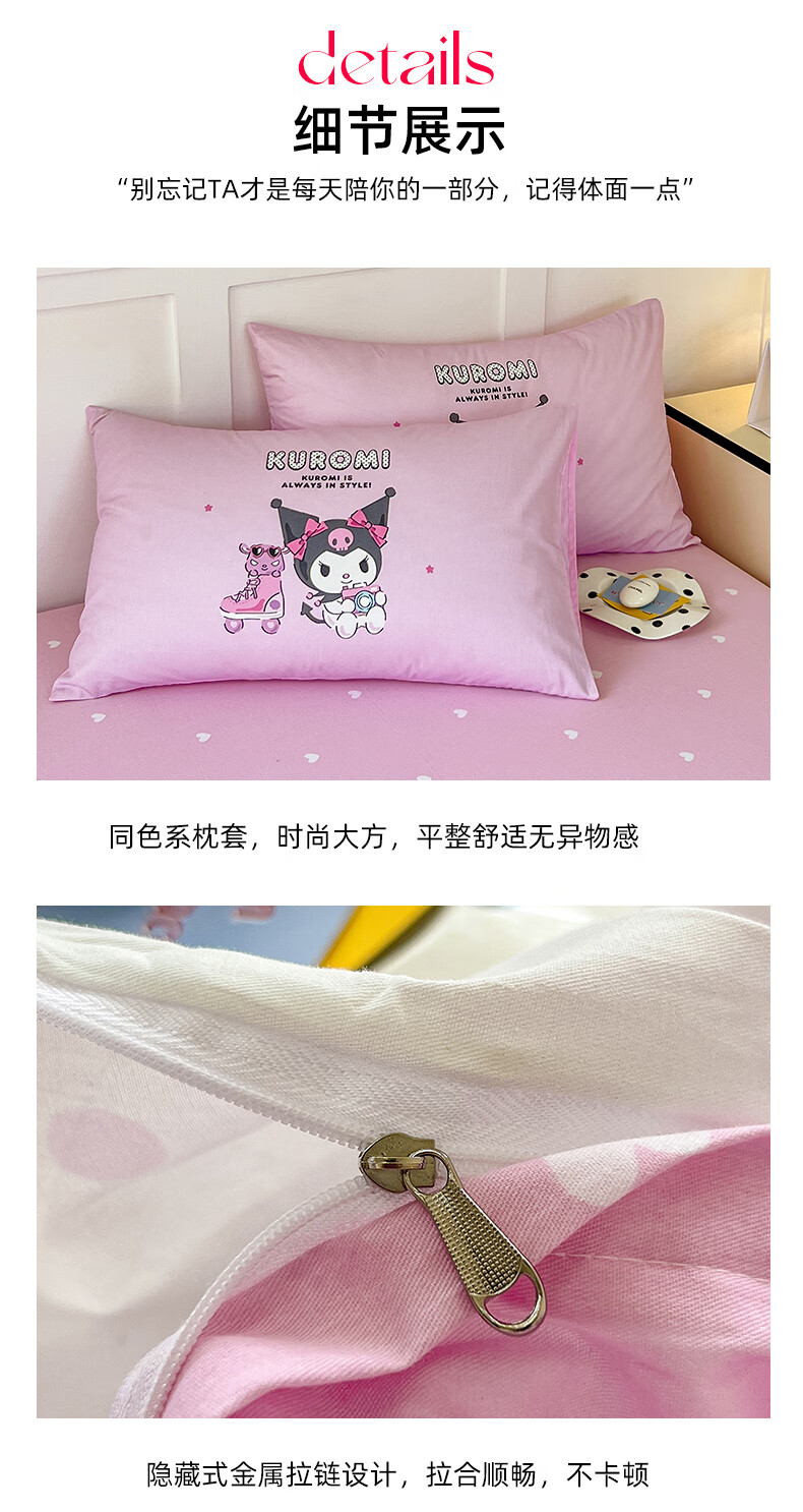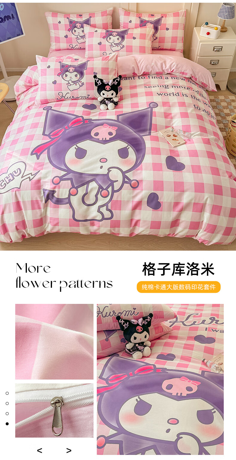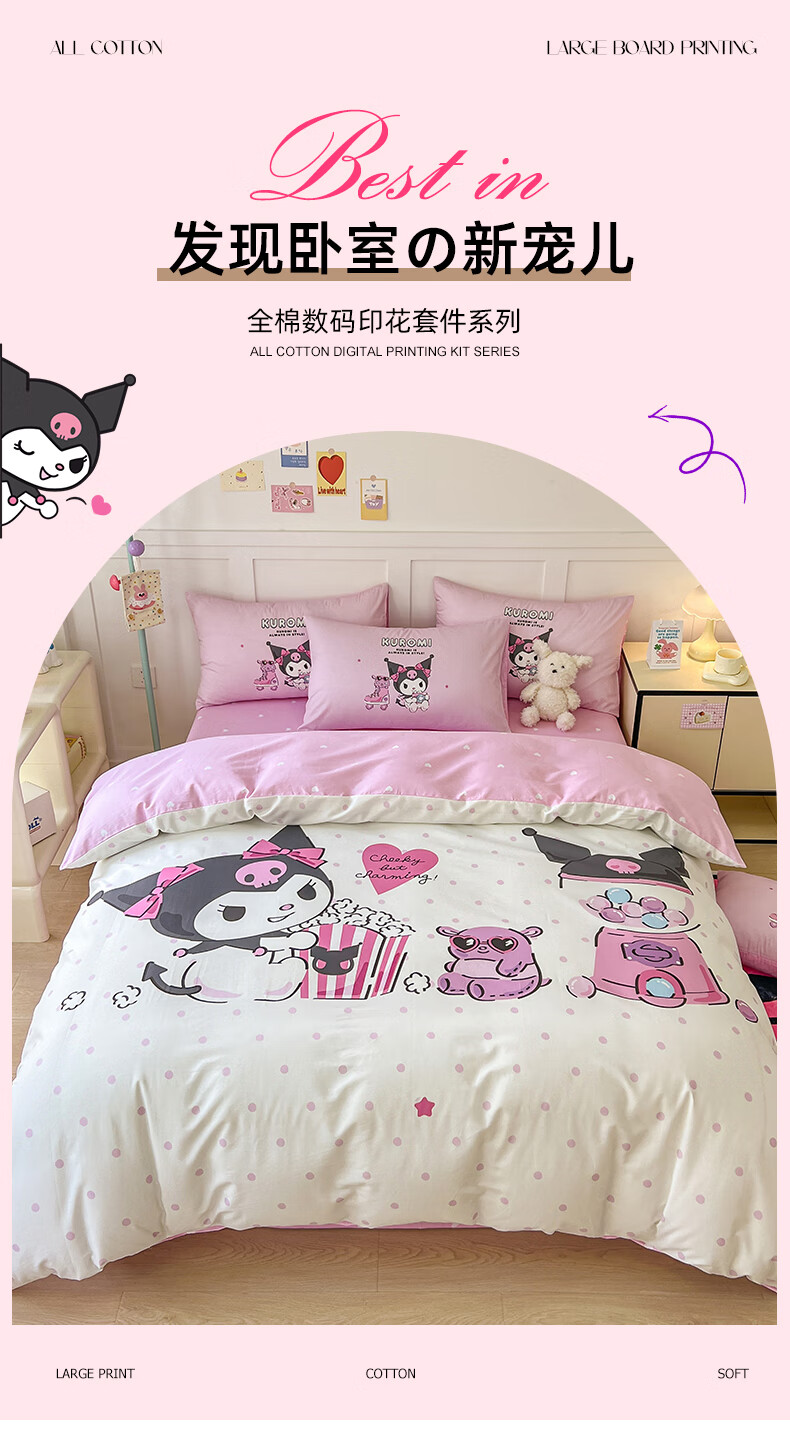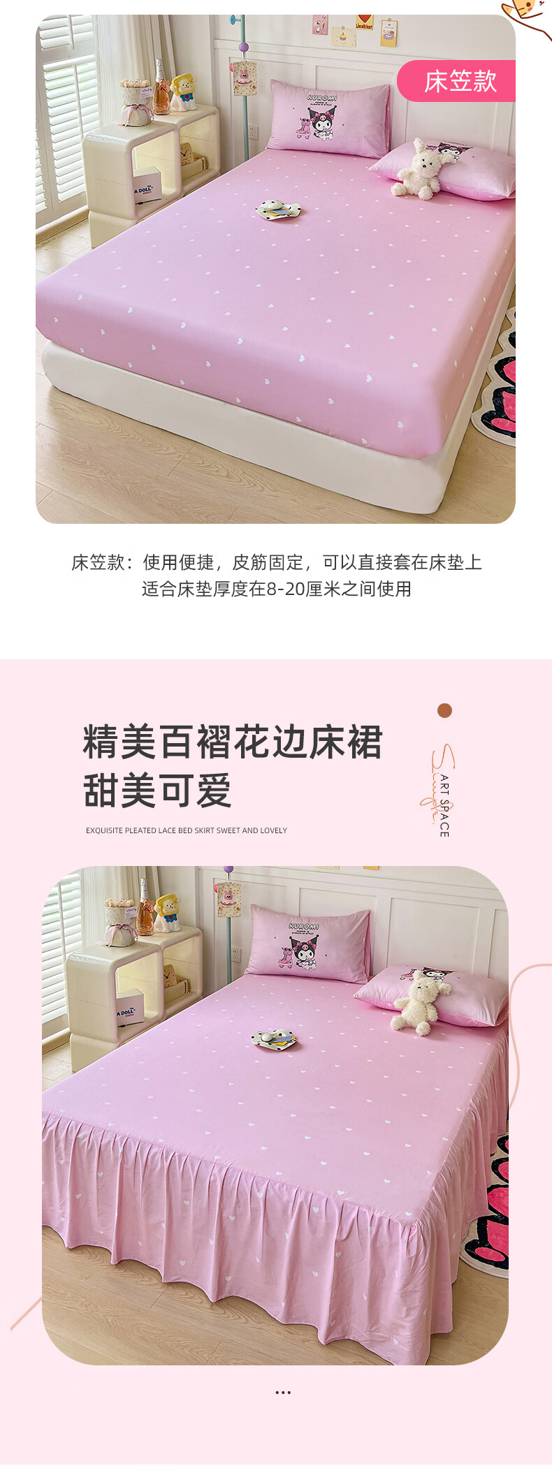 Mercury Series Home Textiles Children's Sanrio Cotton Three/Four Piece Set 120 Count Pure Cotton Cartoon Girl Printed Bed Skirt Bed Sheet Quilt Cover Sheet Large Simple - Good Night Kurome 1.8m Bed Skirt Four Piece Quilt Cover 200*230