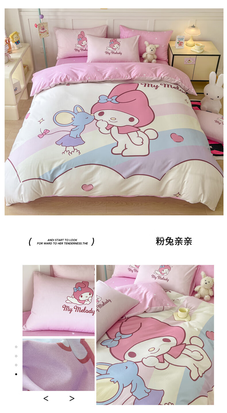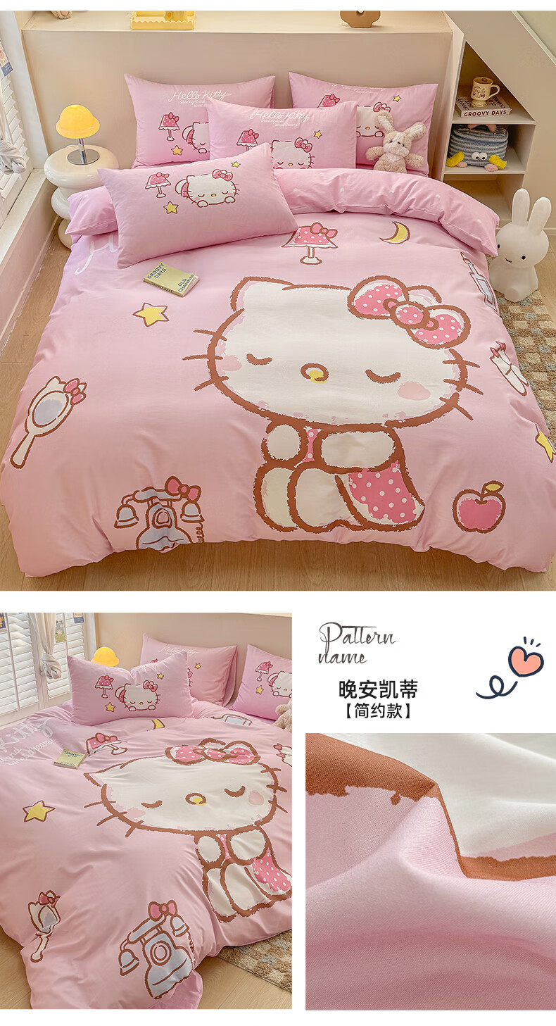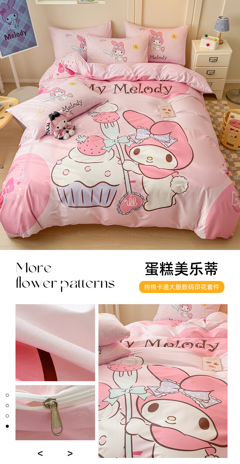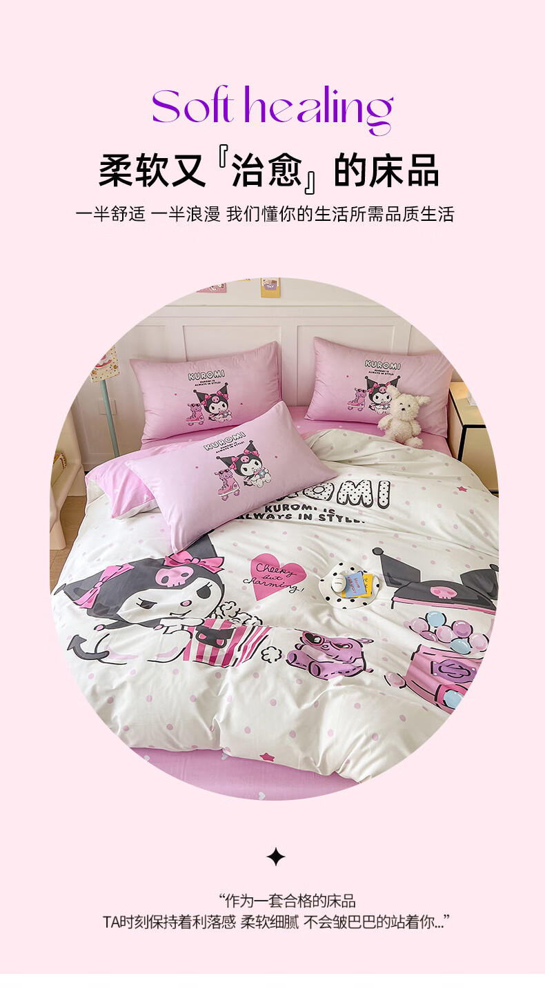 Mercury Series Home Textiles Children's Sanrio Cotton Three/Four Piece Set 120 Count Pure Cotton Cartoon Girl Printed Bed Skirt Bed Sheet Quilt Cover Sheet Large Simple - Good Night Kurome 1.8m Bed Skirt Four Piece Quilt Cover 200*230