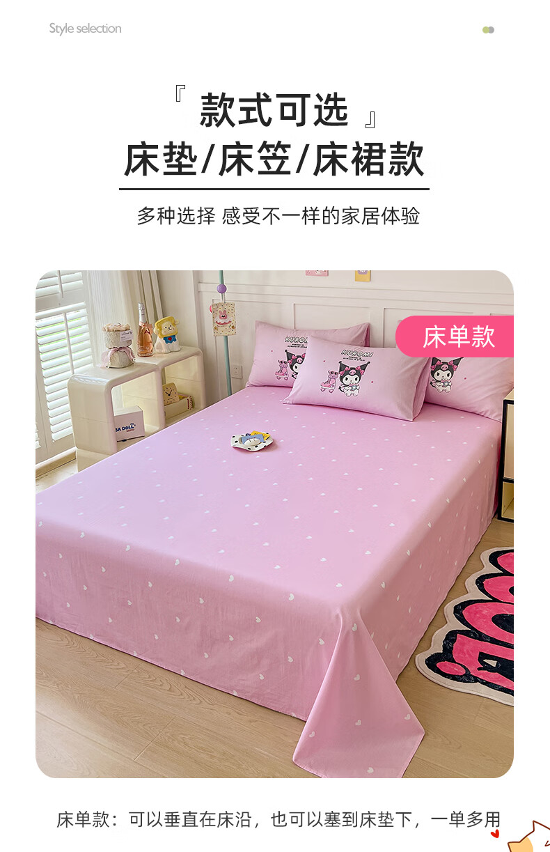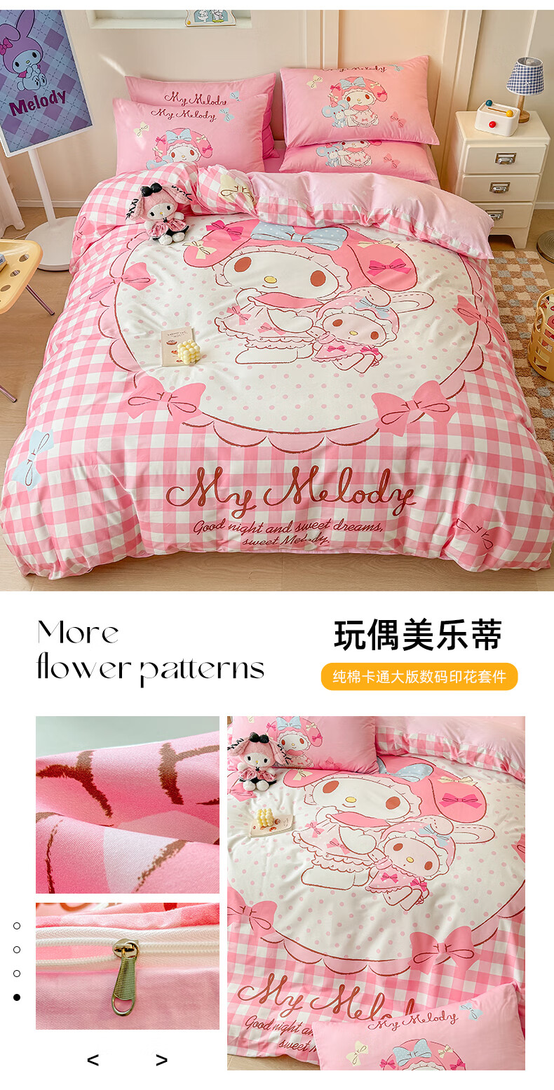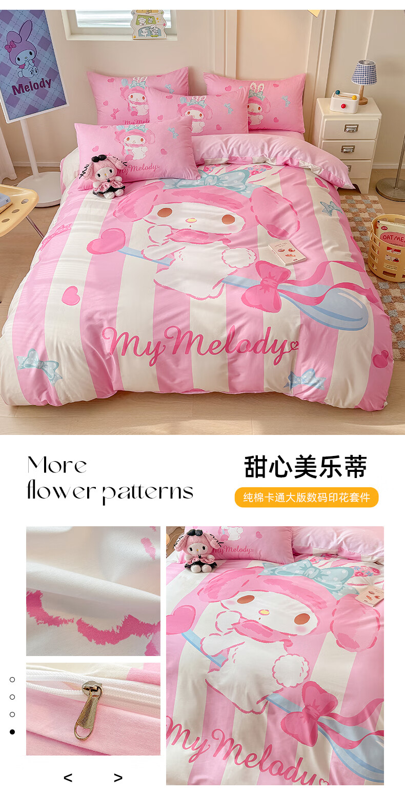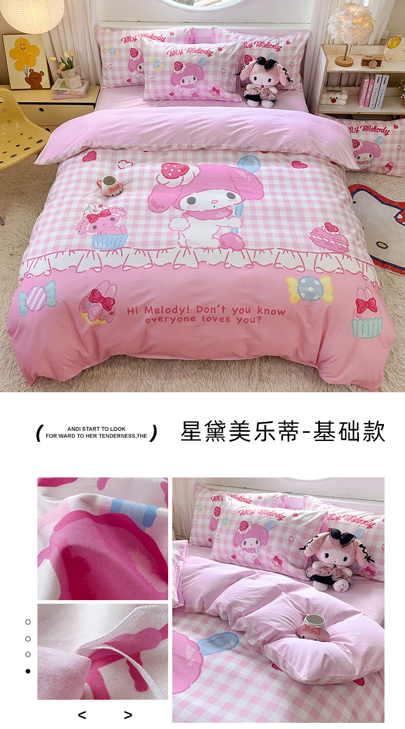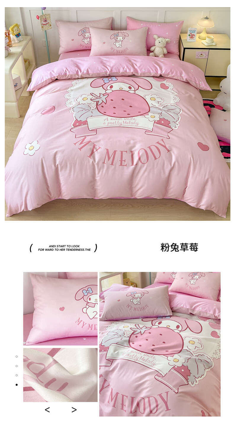 Mercury Series Home Textiles Children's Sanrio Cotton Three/Four Piece Set 120 Count Pure Cotton Cartoon Girl Printed Bed Skirt Bed Sheet Quilt Cover Sheet Large Simple - Good Night Kurome 1.8m Bed Skirt Four Piece Quilt Cover 200*230