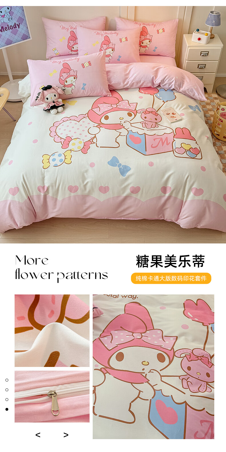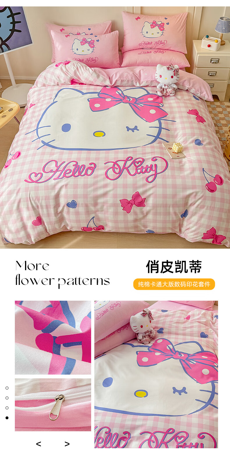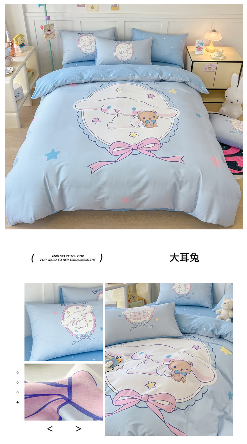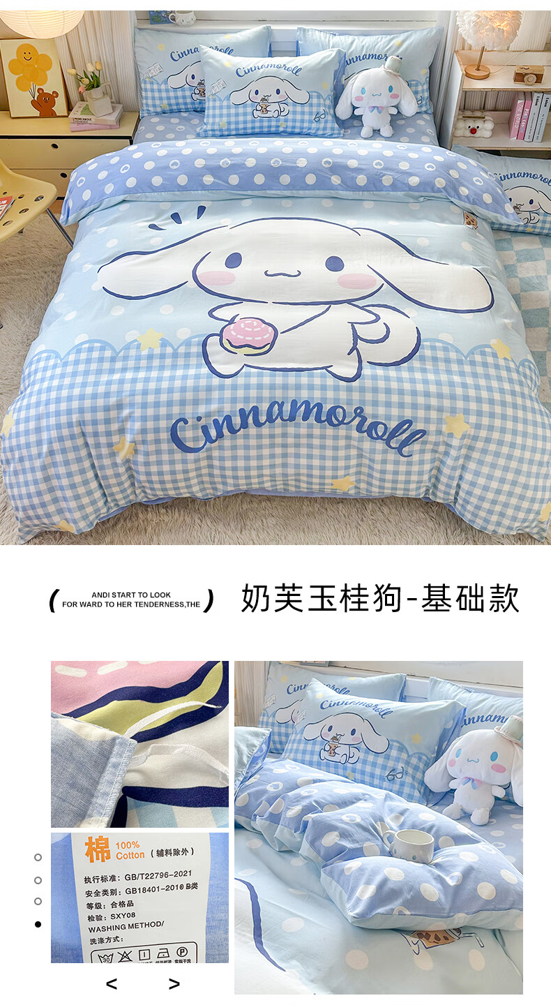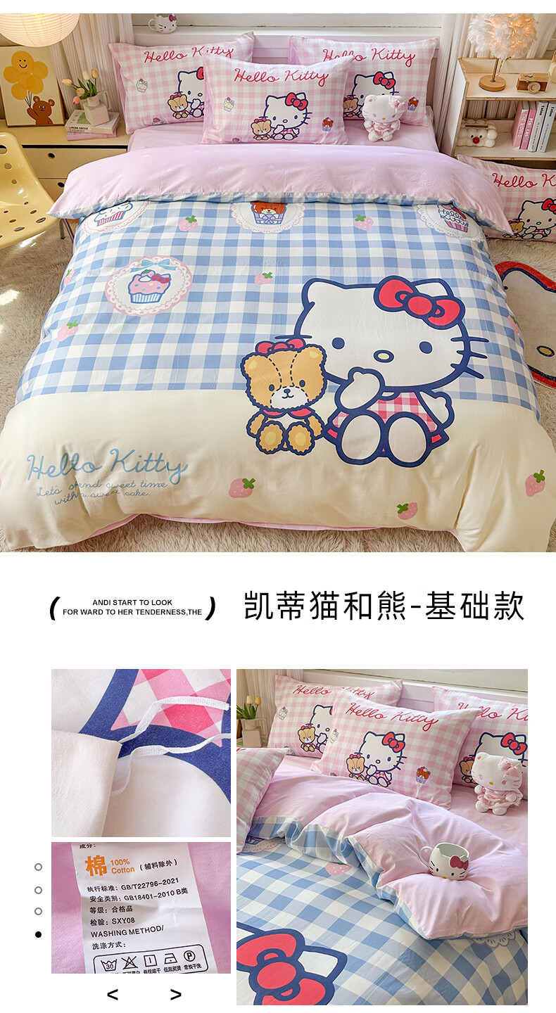 Mercury Series Home Textiles Children's Sanrio Cotton Three/Four Piece Set 120 Count Pure Cotton Cartoon Girl Printed Bed Skirt Bed Sheet Quilt Cover Sheet Large Simple - Good Night Kurome 1.8m Bed Skirt Four Piece Quilt Cover 200*230
