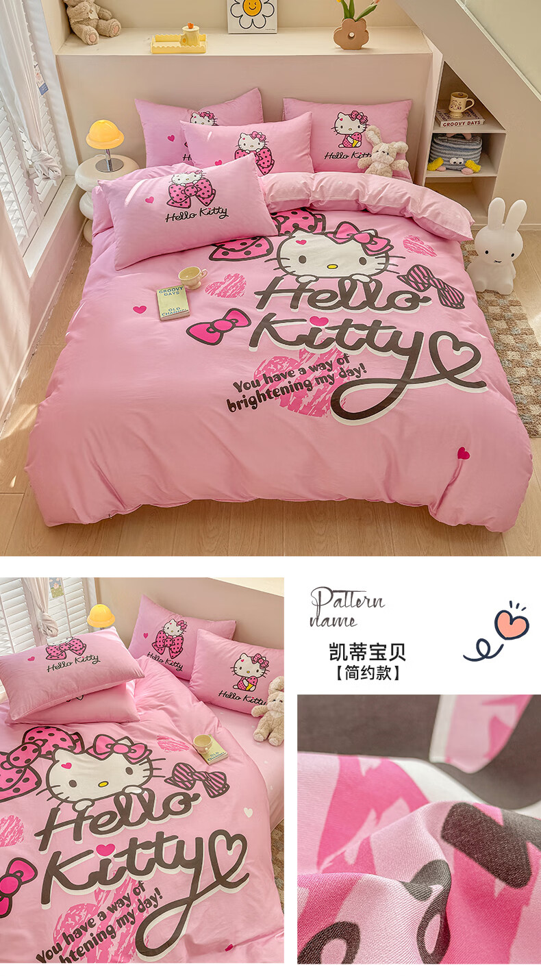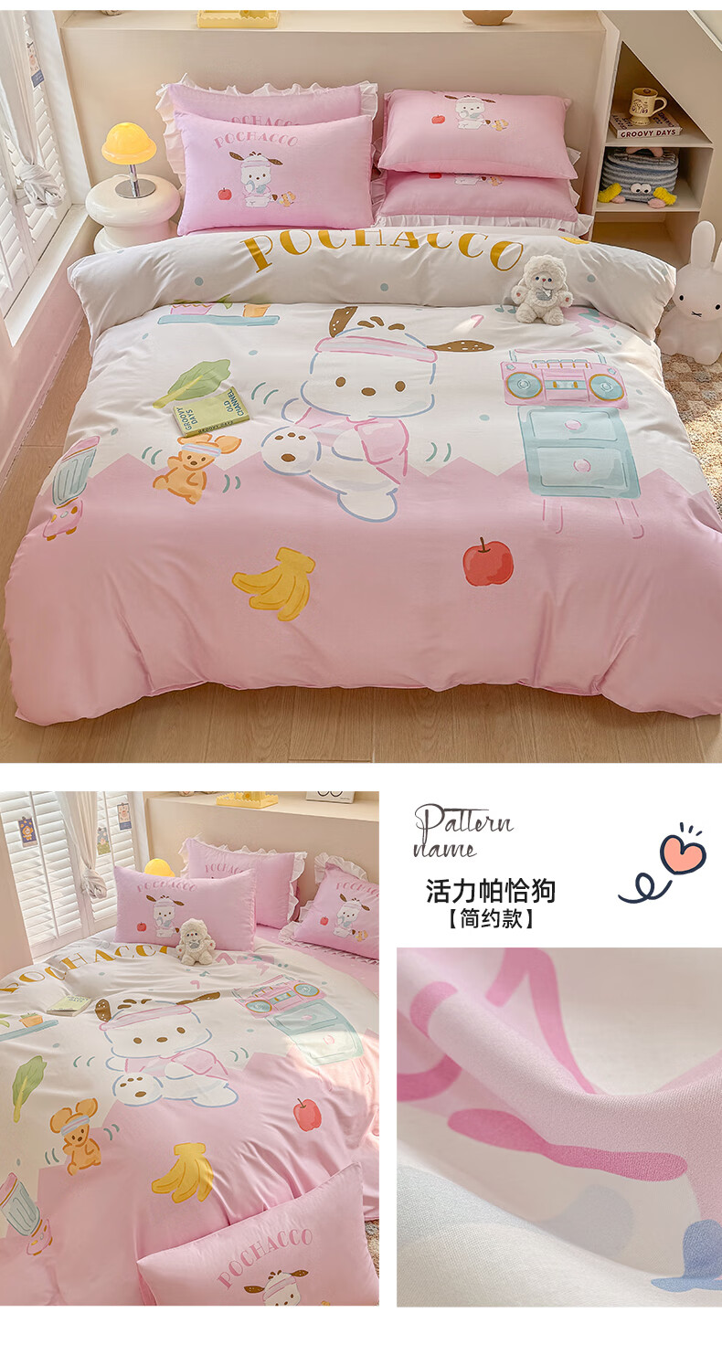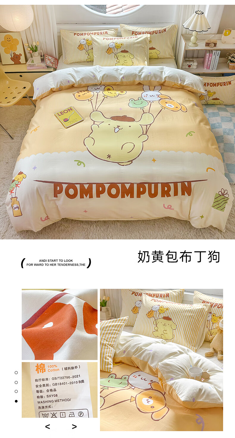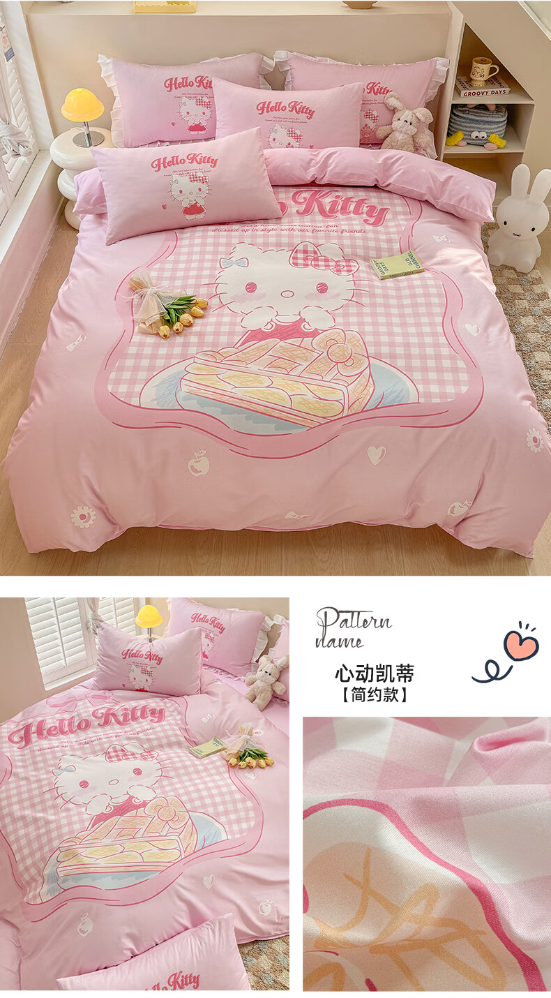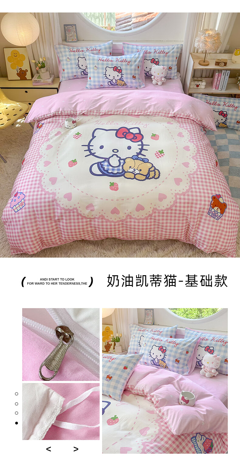 Mercury Series Home Textiles Children's Sanrio Cotton Three/Four Piece Set 120 Count Pure Cotton Cartoon Girl Printed Bed Skirt Bed Sheet Quilt Cover Sheet Large Simple - Good Night Kurome 1.8m Bed Skirt Four Piece Quilt Cover 200*230