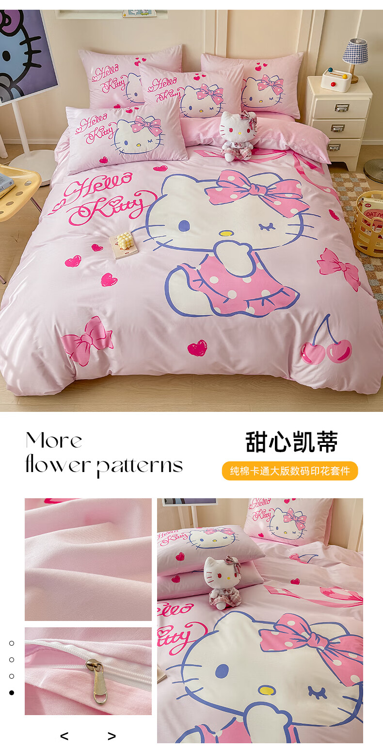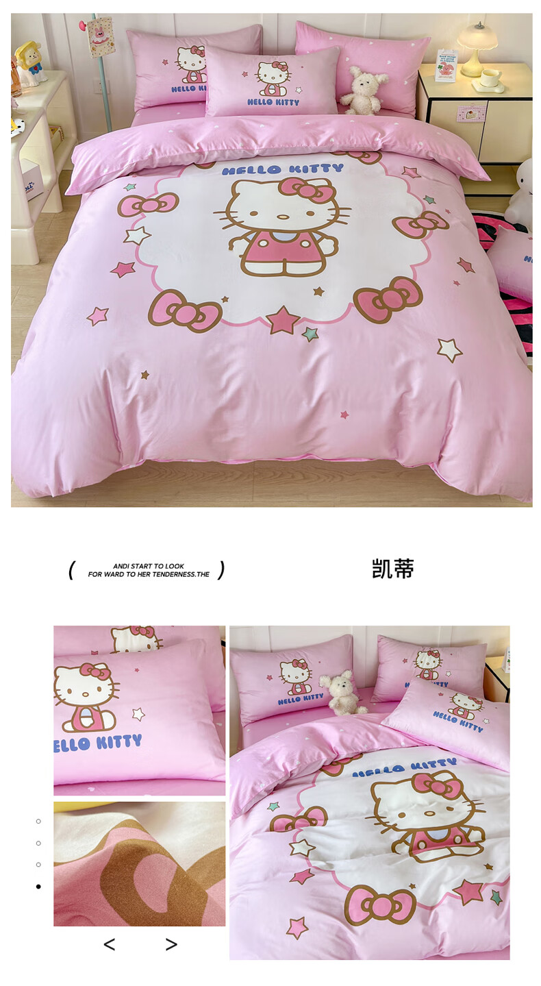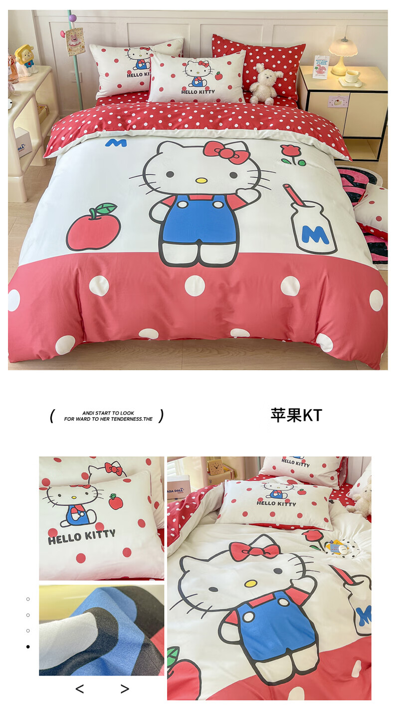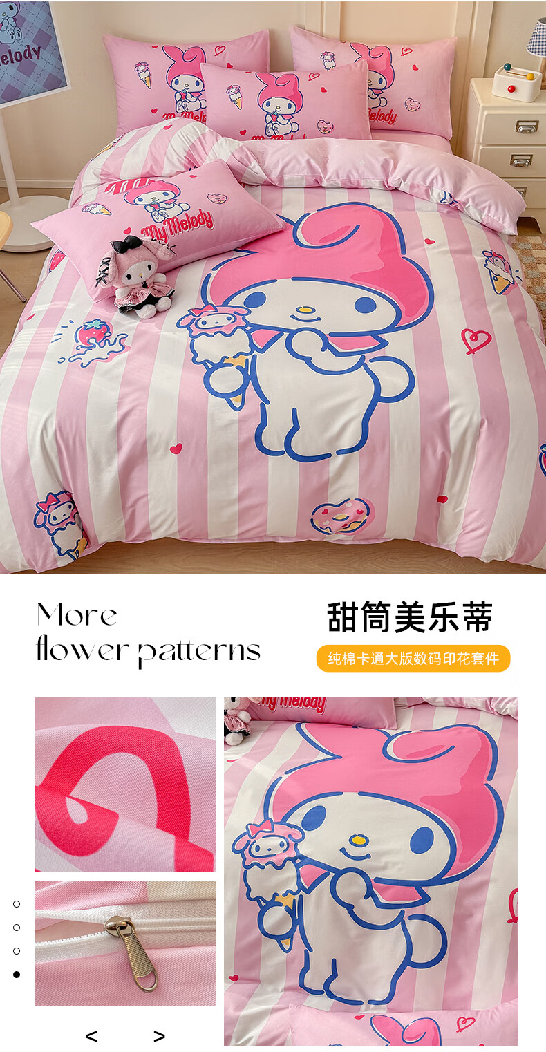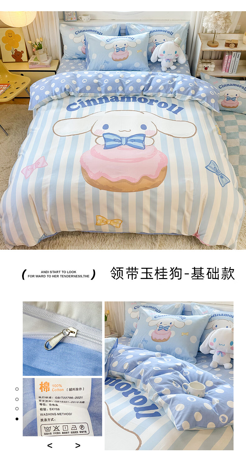 Mercury Series Home Textiles Children's Sanrio Cotton Three/Four Piece Set 120 Count Pure Cotton Cartoon Girl Printed Bed Skirt Bed Sheet Quilt Cover Sheet Large Simple - Good Night Kurome 1.8m Bed Skirt Four Piece Quilt Cover 200*230