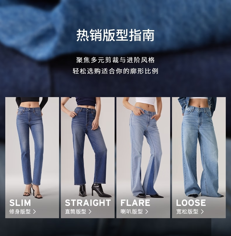 Levi's 25th Autumn and Winter New Winter Warm Series Women's American 318 Loose Wide Leg Jeans Blue 28 (30)