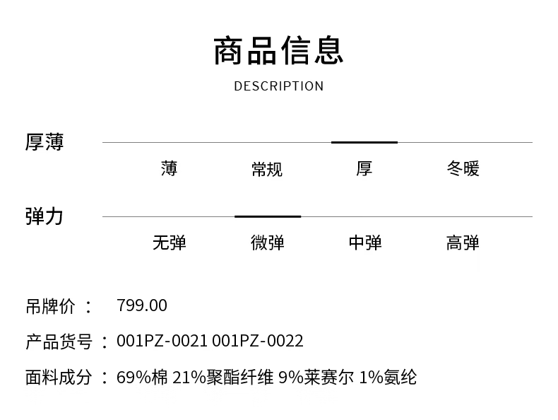 Outseam (cm) 99 cm 101.5 cm 104 cm 106.5 cm 109 cm