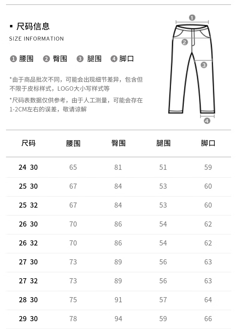 USA(inch) 28-30 30-32 32-34 34-38 38-42