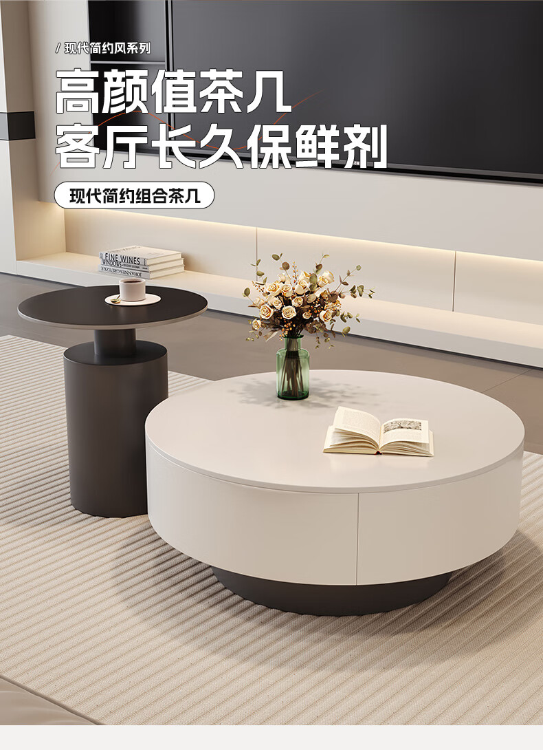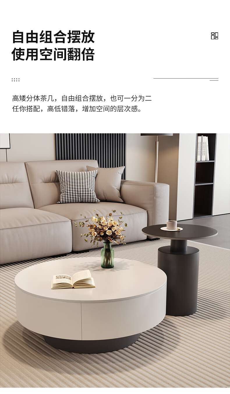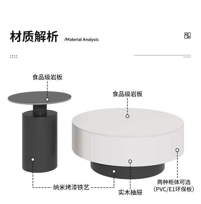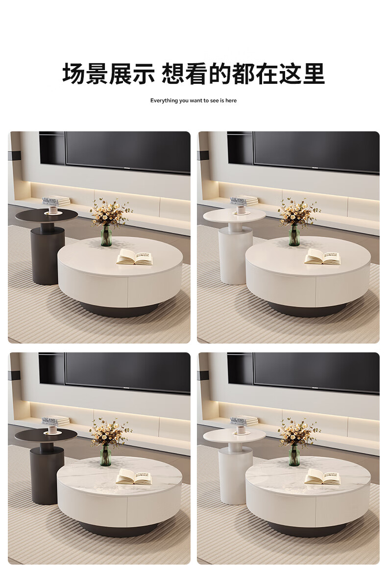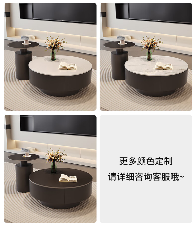 Huabisen Italian high-end light luxury slate coffee table small apartment living room home minimalist round combination simple modern black cabinet white slate 70+45 black edge table