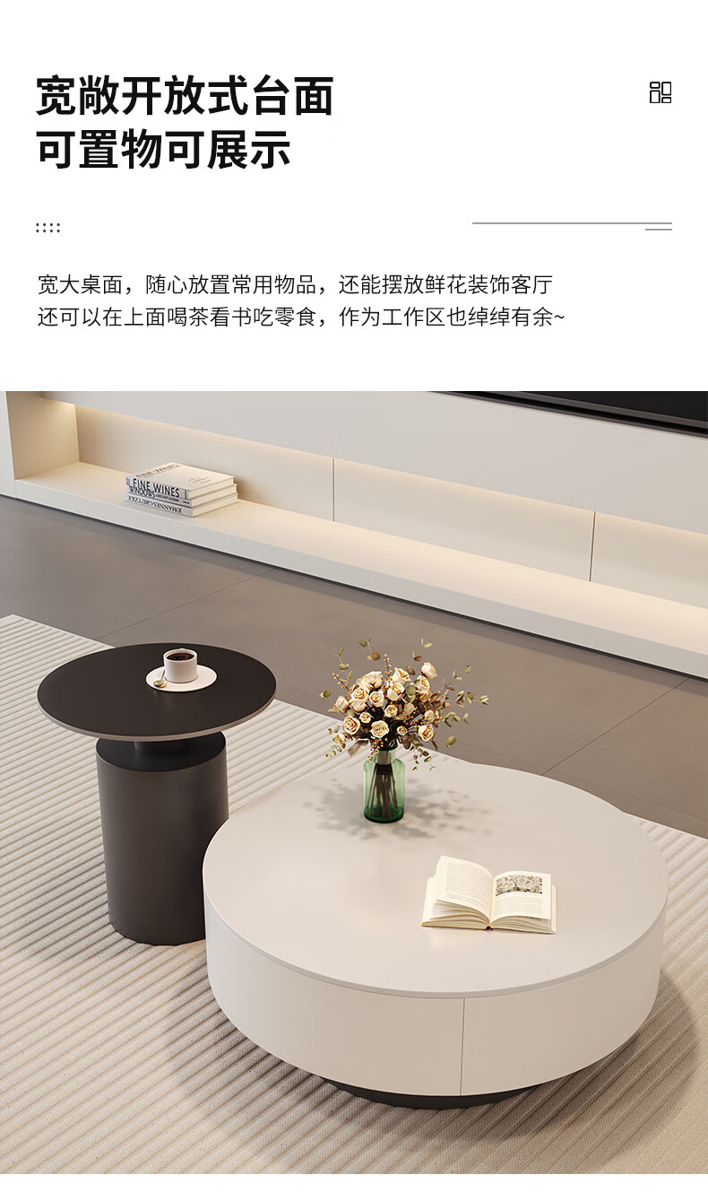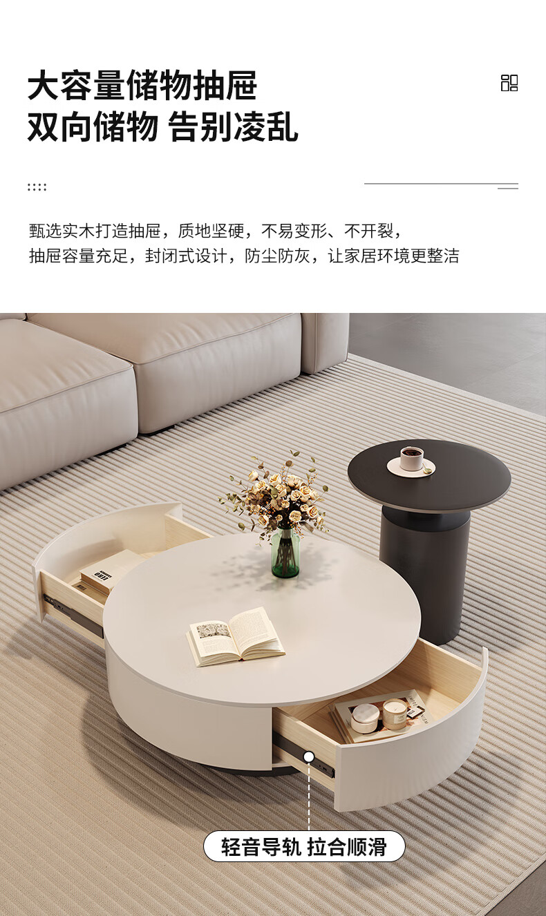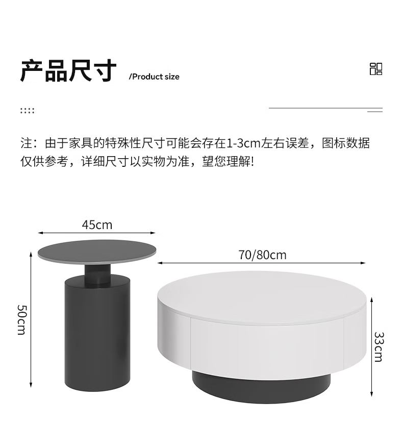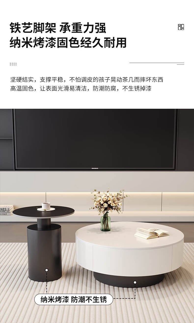 Huabisen Italian high-end light luxury slate coffee table small apartment living room home minimalist round combination simple modern black cabinet white slate 70+45 black edge table