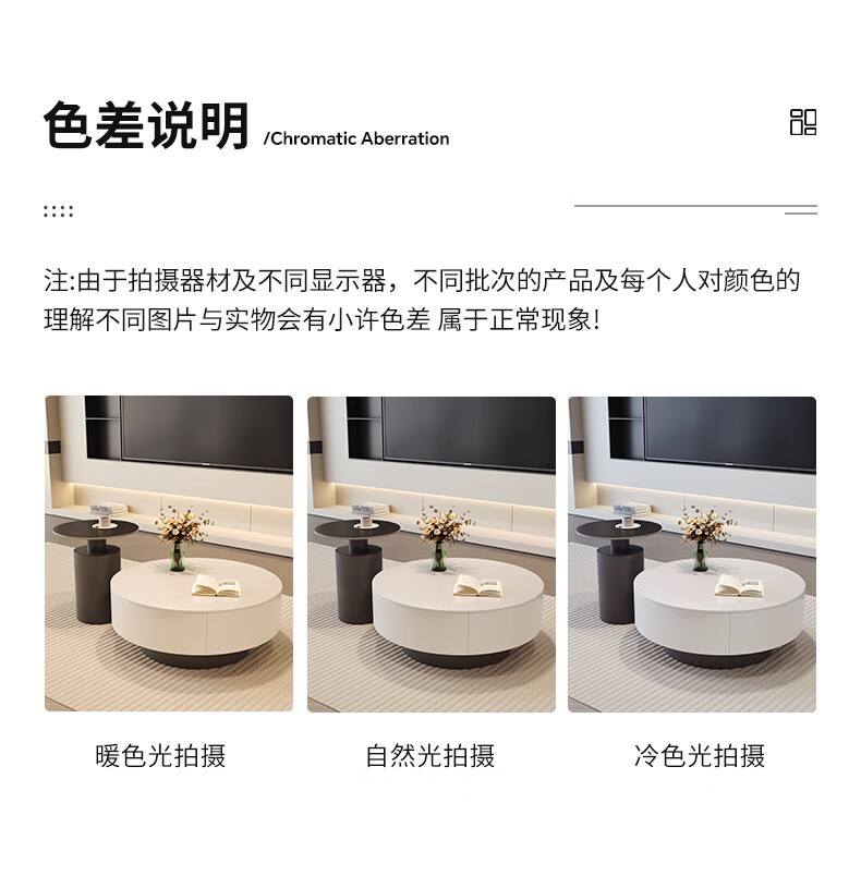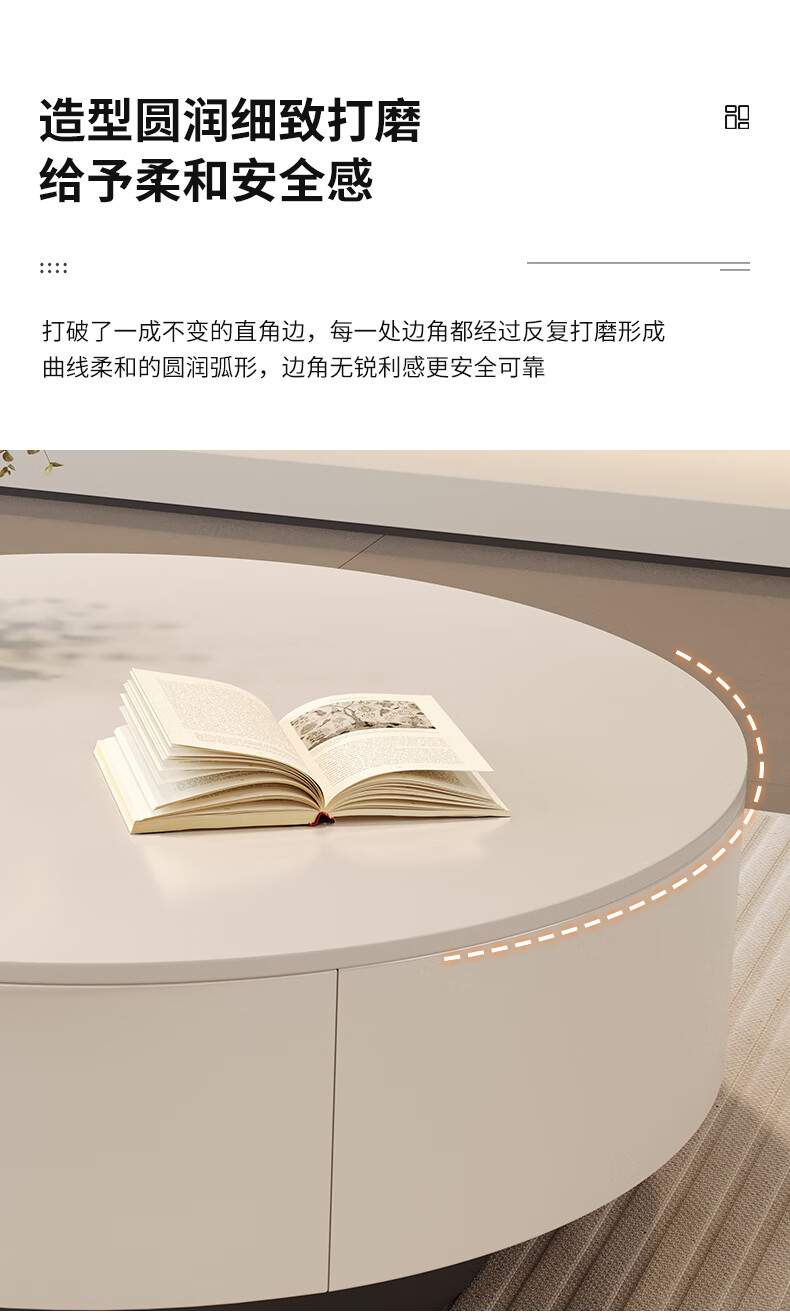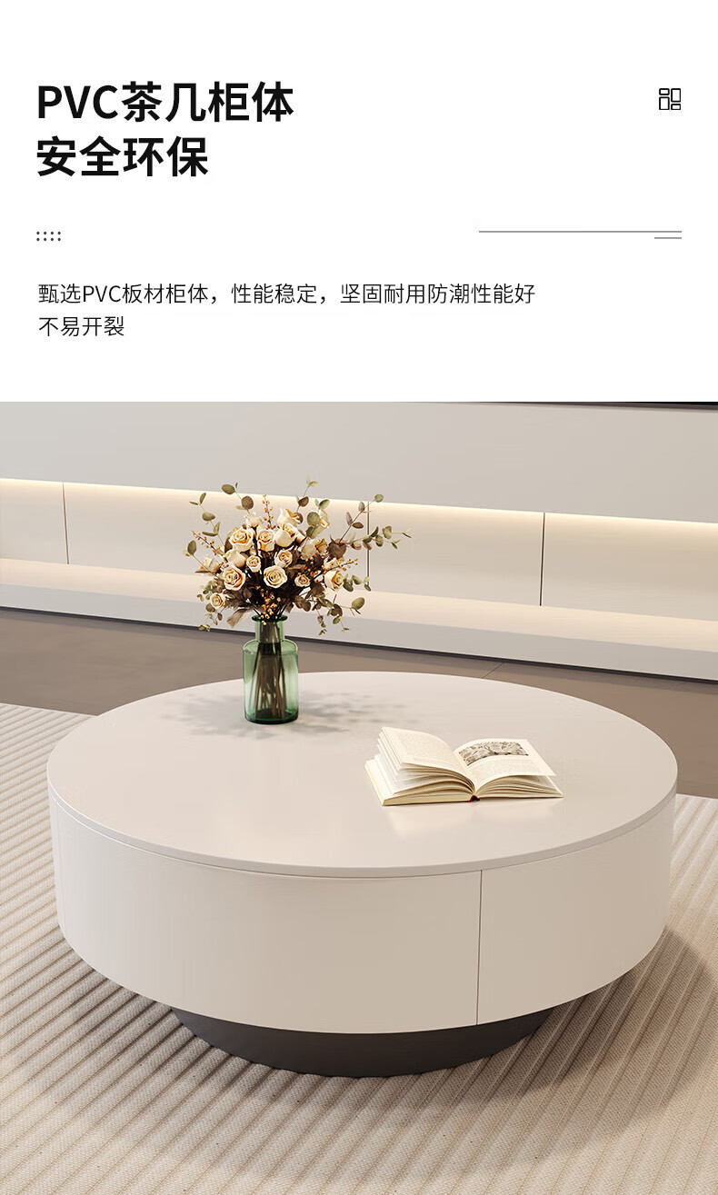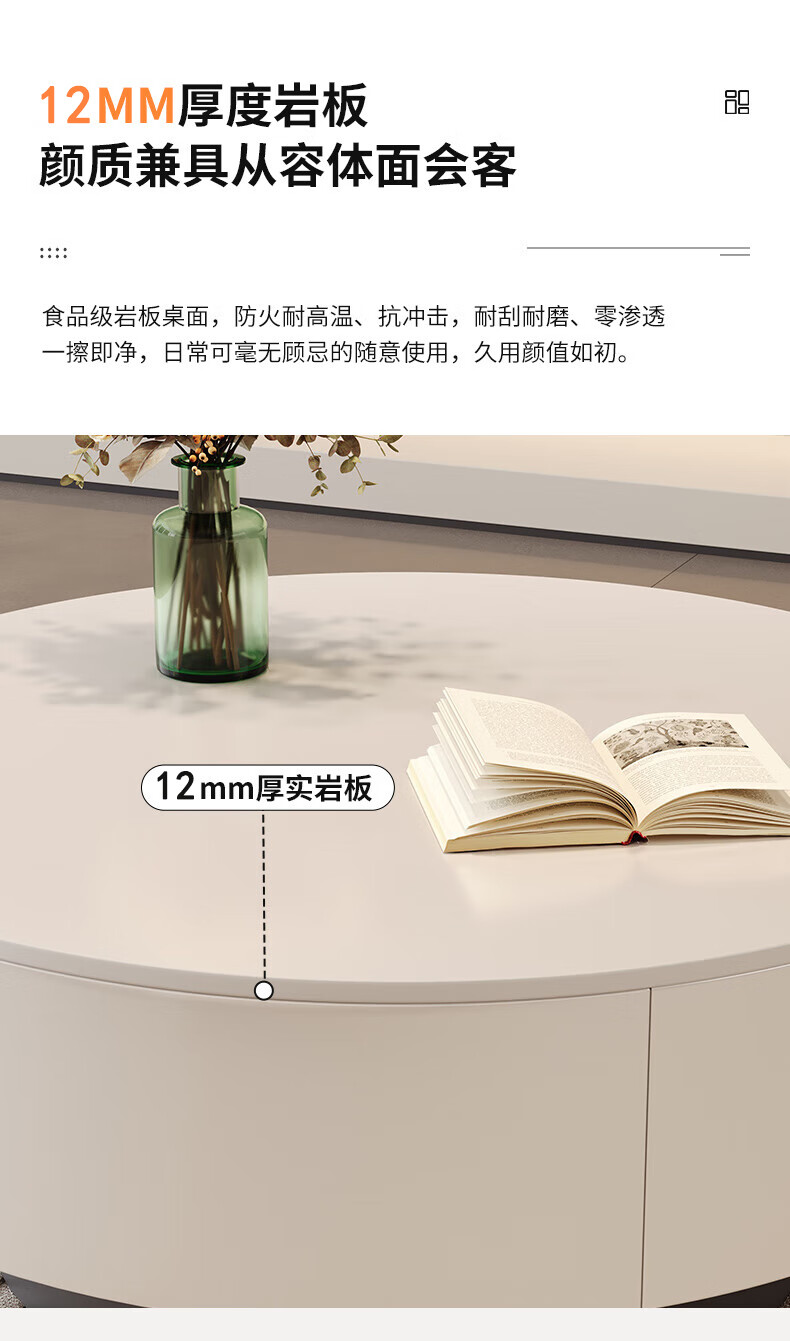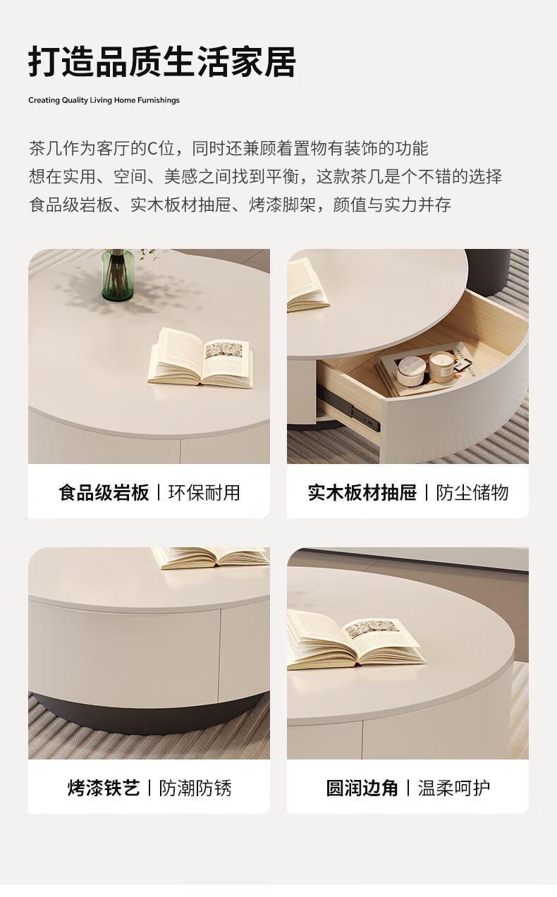 Huabisen Italian high-end light luxury slate coffee table small apartment living room home minimalist round combination simple modern black cabinet white slate 70+45 black edge table