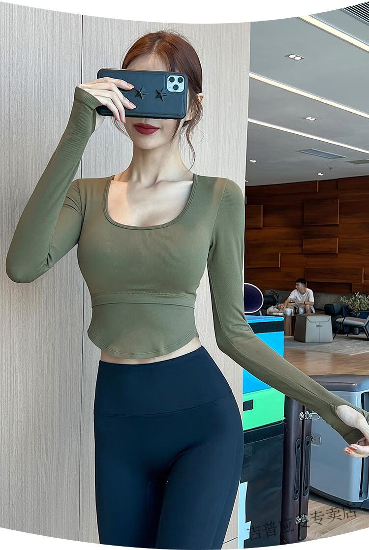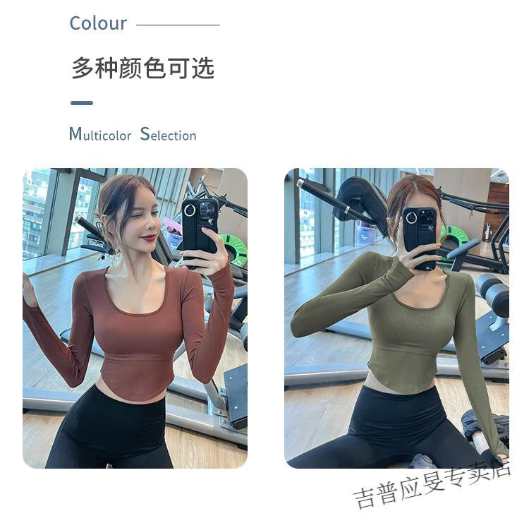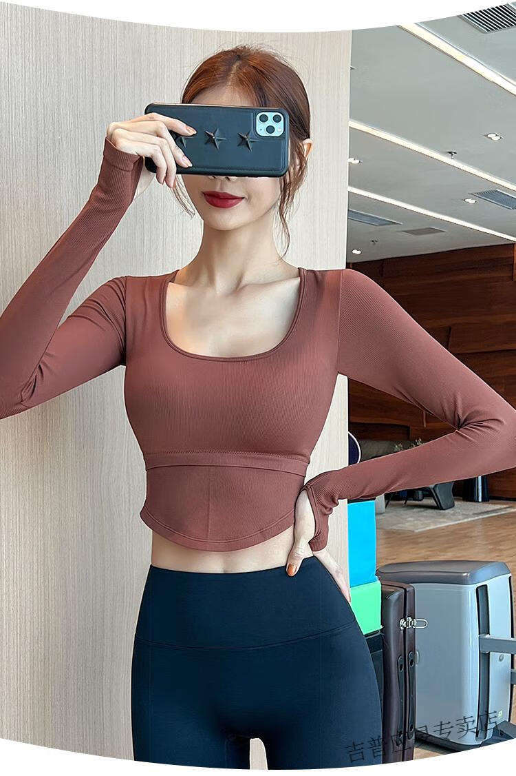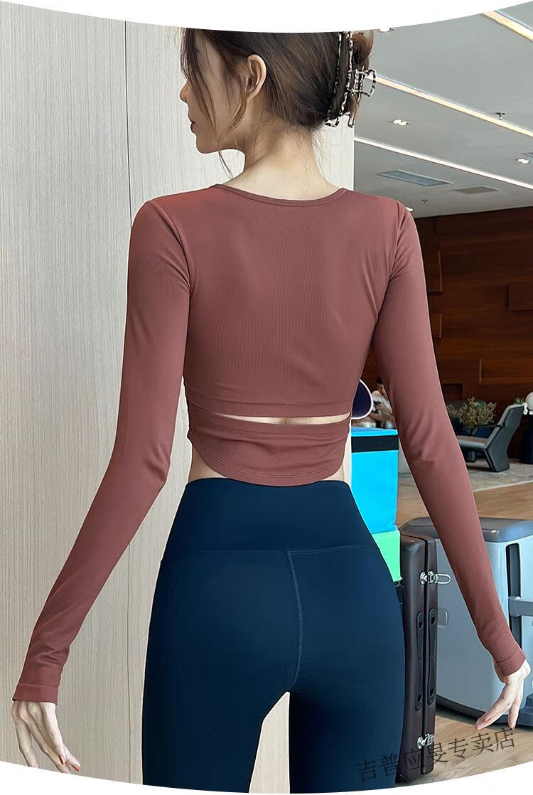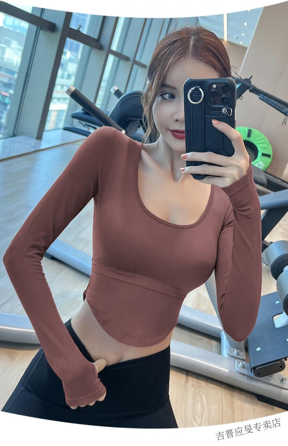 JEEP SPIRIT long-sleeved yoga clothes with chest pads, nude Pilates slim tops, spring and autumn running sports fitness T-shirts for women, crimson L (recommended 110-115 Jin Jin equals 0.5 kg)
