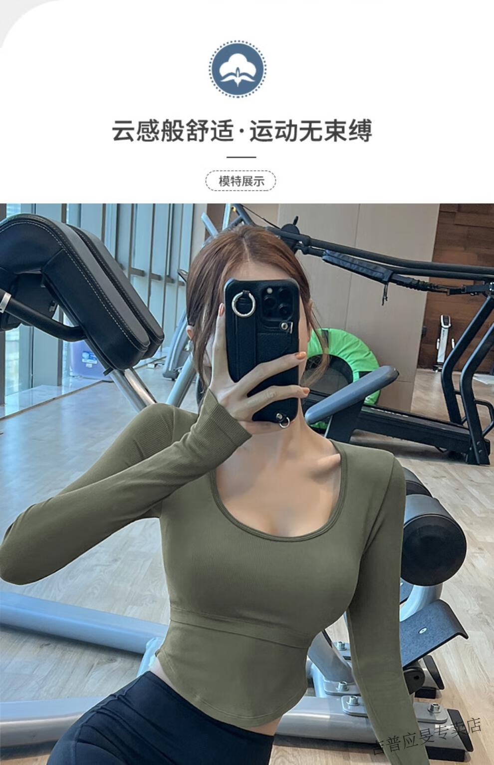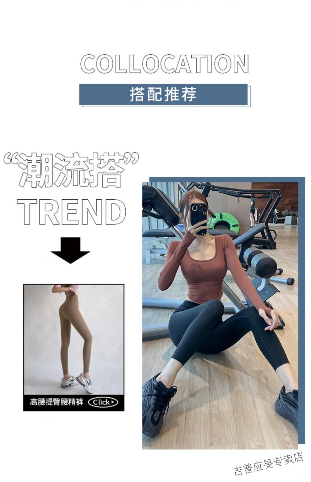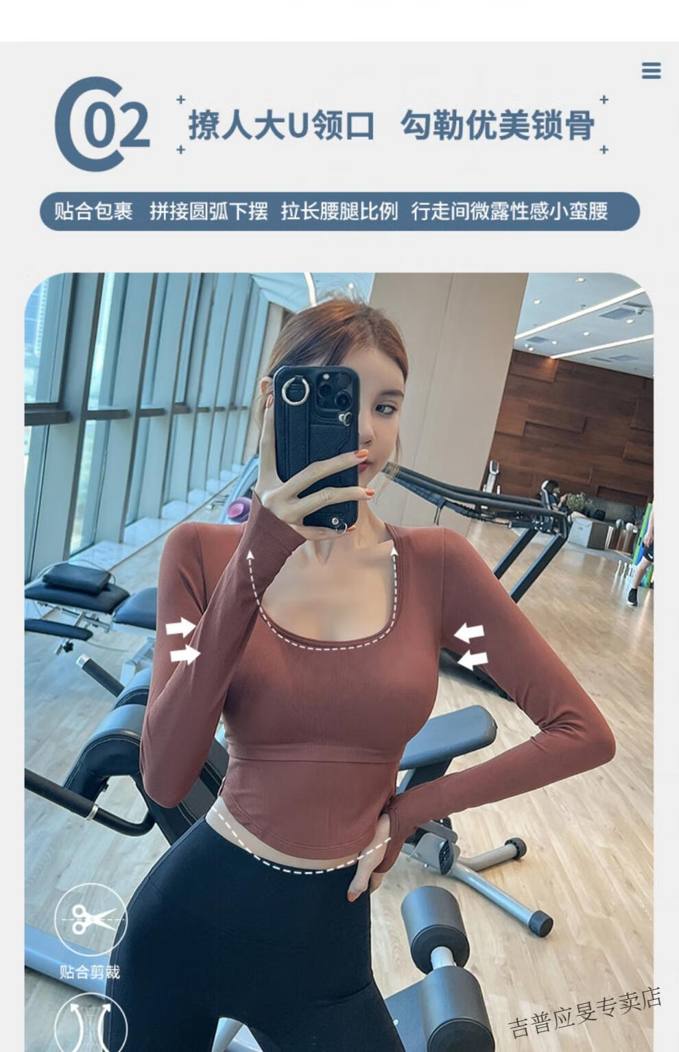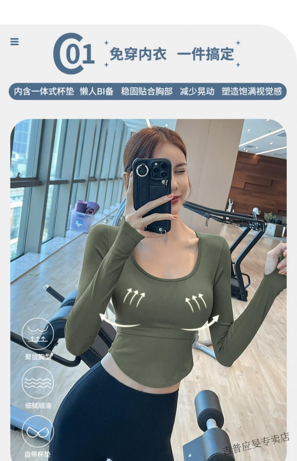 JEEP SPIRIT long-sleeved yoga clothes with chest pads, nude Pilates slim tops, spring and autumn running sports fitness T-shirts for women, crimson L (recommended 110-115 Jin Jin equals 0.5 kg)
