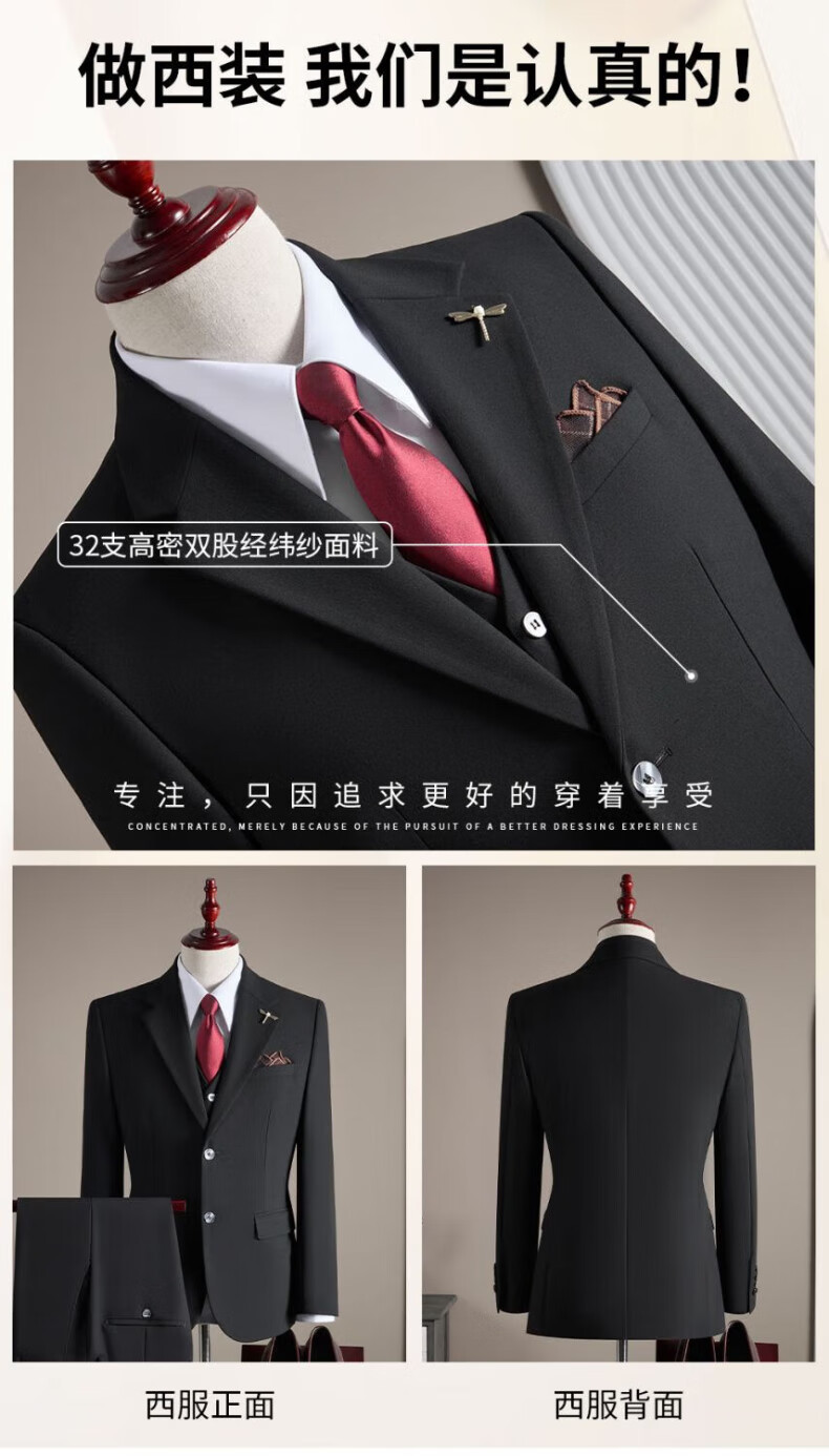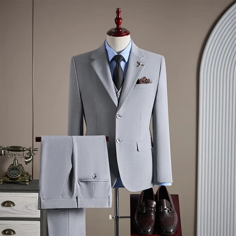 FZPT light luxury trendy brand suit suit for men 2025 autumn and winter new high-end business fashion slim two-piece single-breasted suit medium gray suit + trousers 3XL recommended 150-165Jin Jin equals 0.5 kg