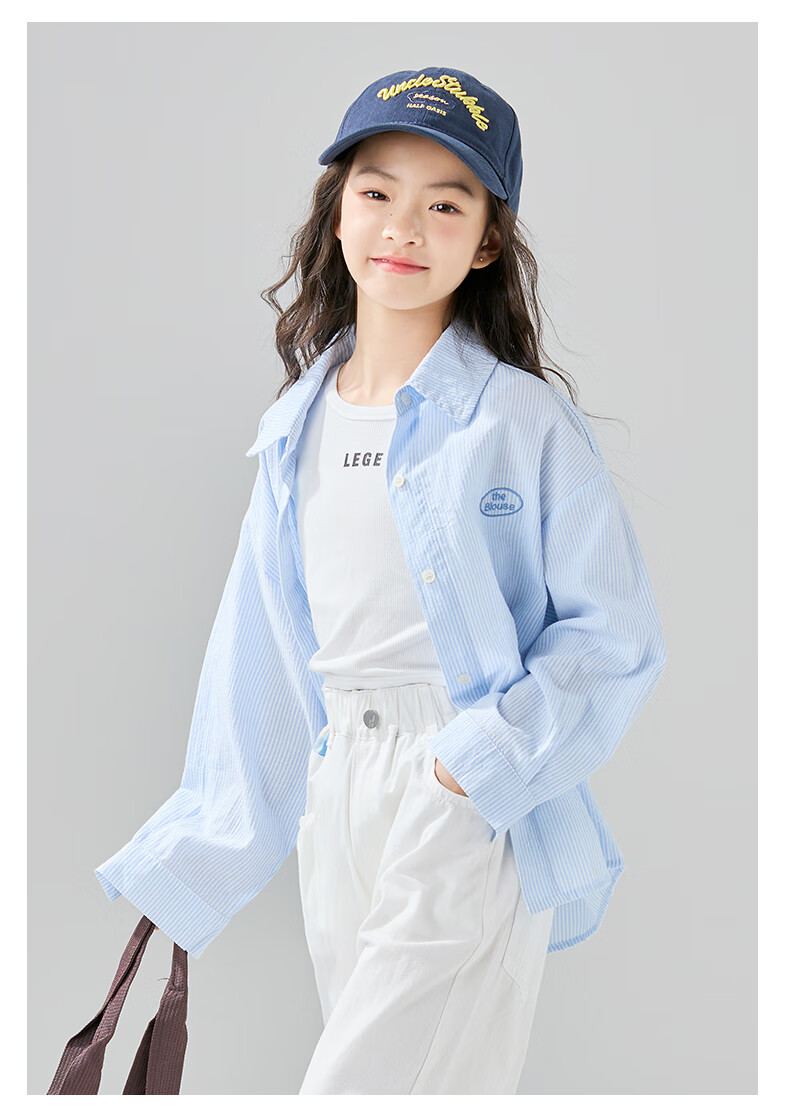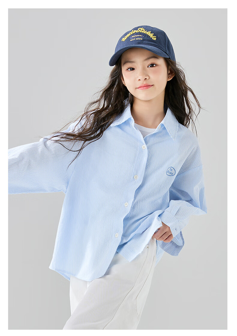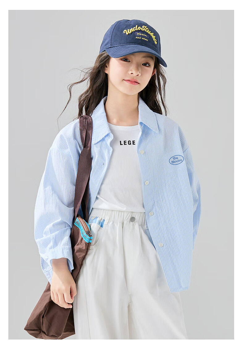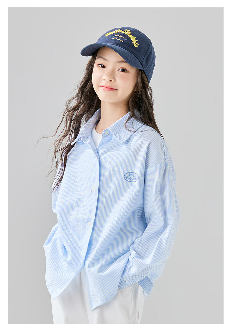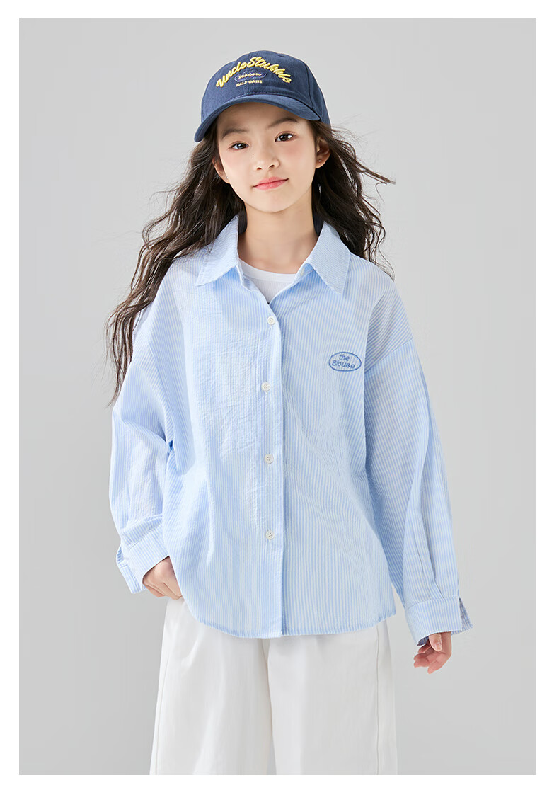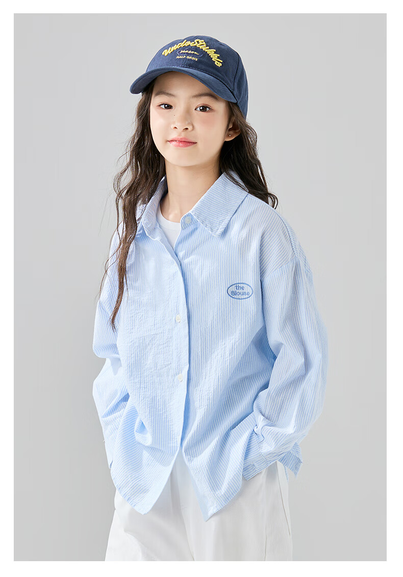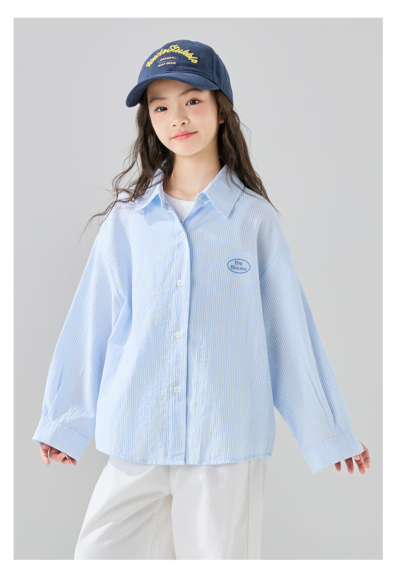 McTicco Girls' Shirt 2026 New Spring Children's Style Blue Striped Shirt Spring and Autumn Long-Sleeved Jacket Big Children's Top 10209 Blue Shirt 150 150cm