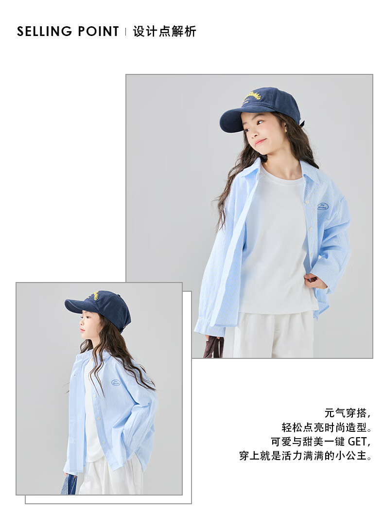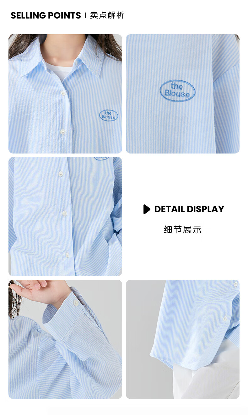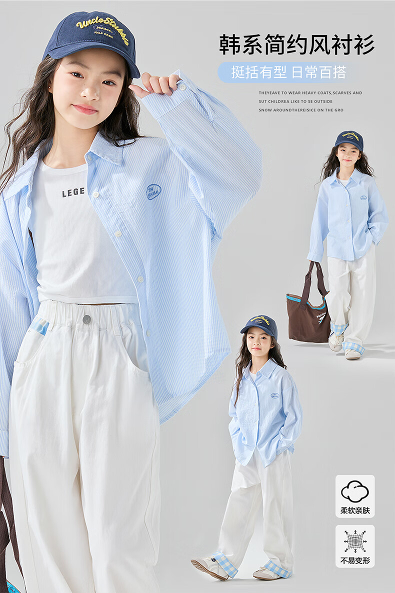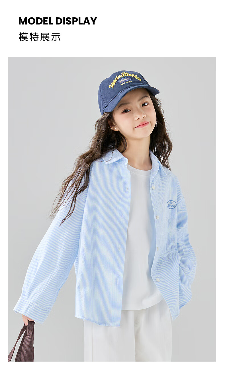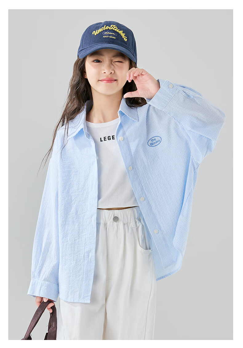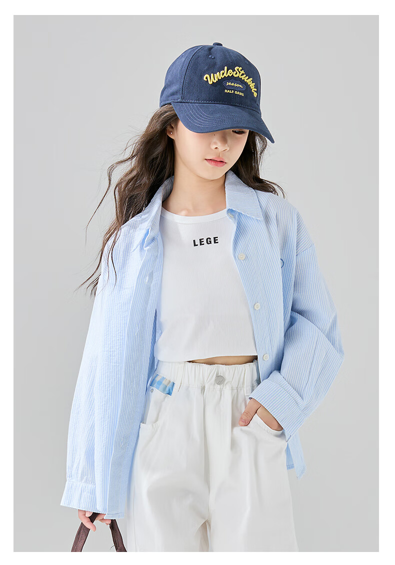 McTicco Girls' Shirt 2026 New Spring Children's Style Blue Striped Shirt Spring and Autumn Long-Sleeved Jacket Big Children's Top 10209 Blue Shirt 150 150cm