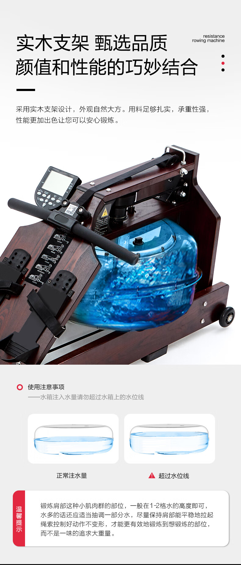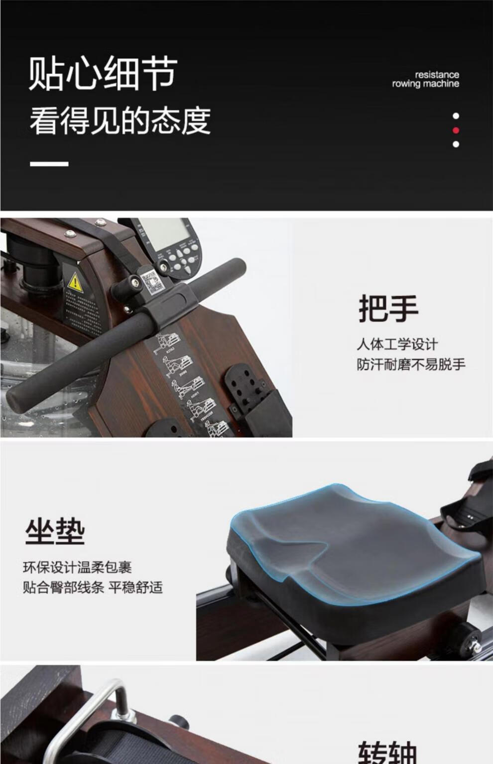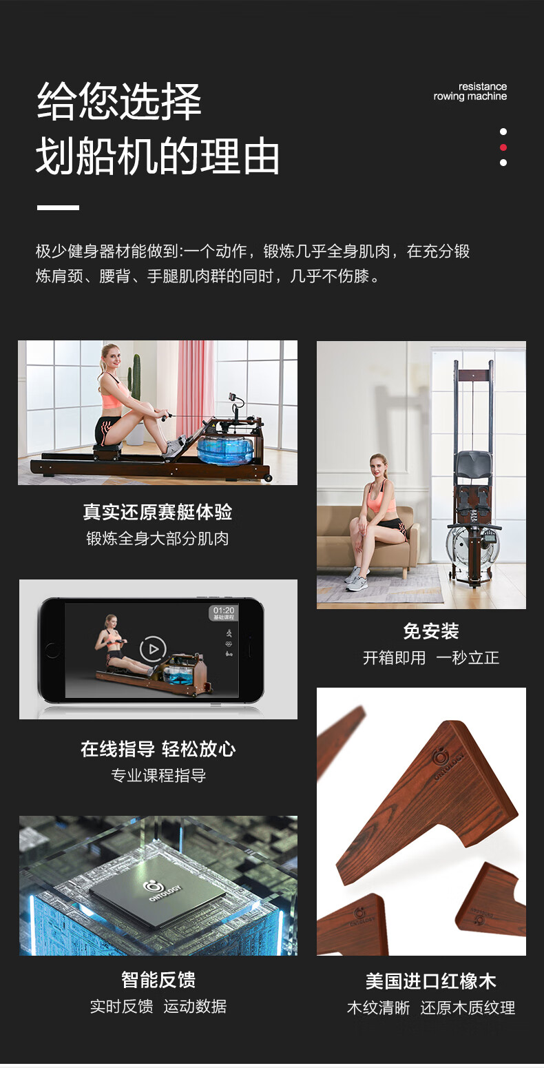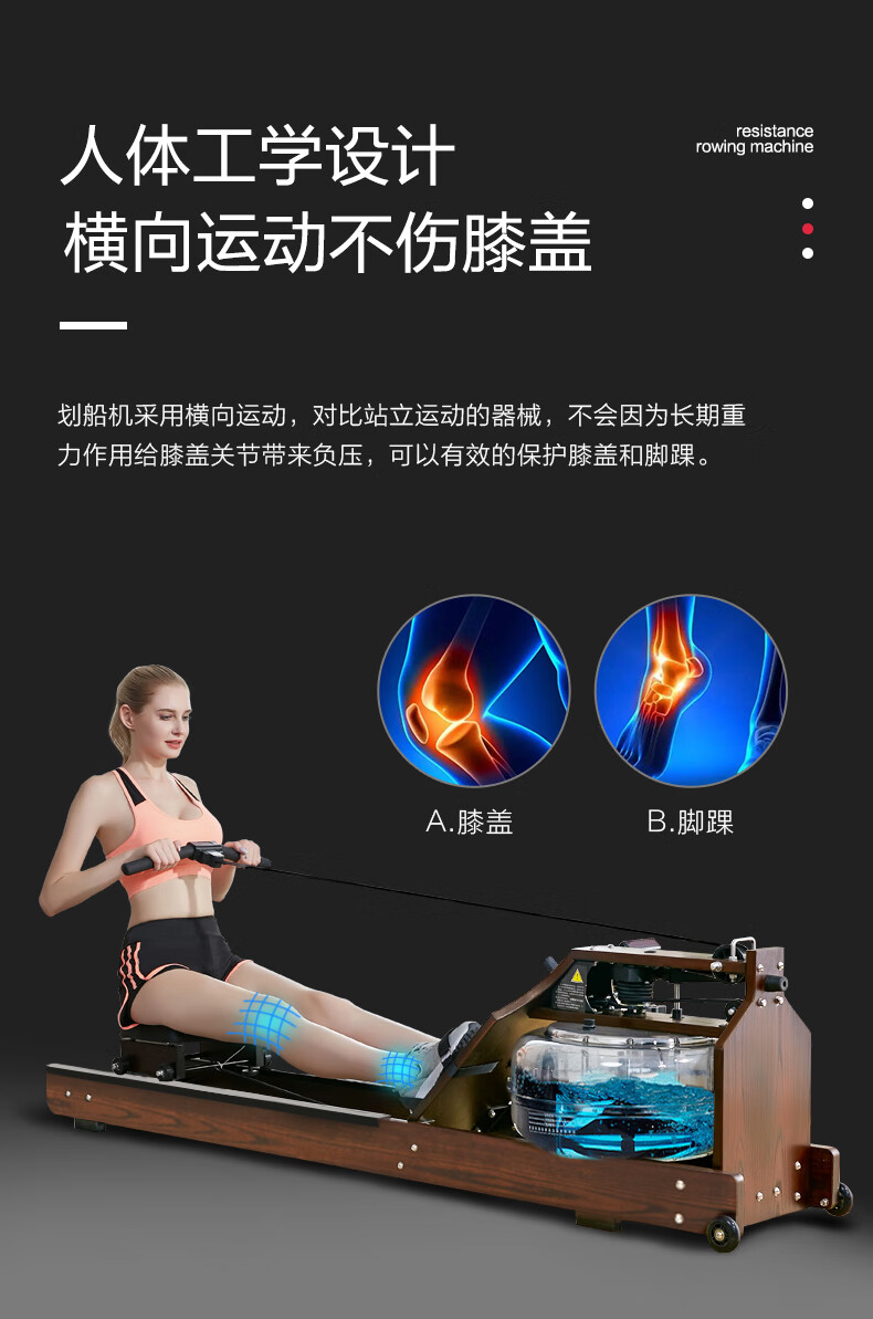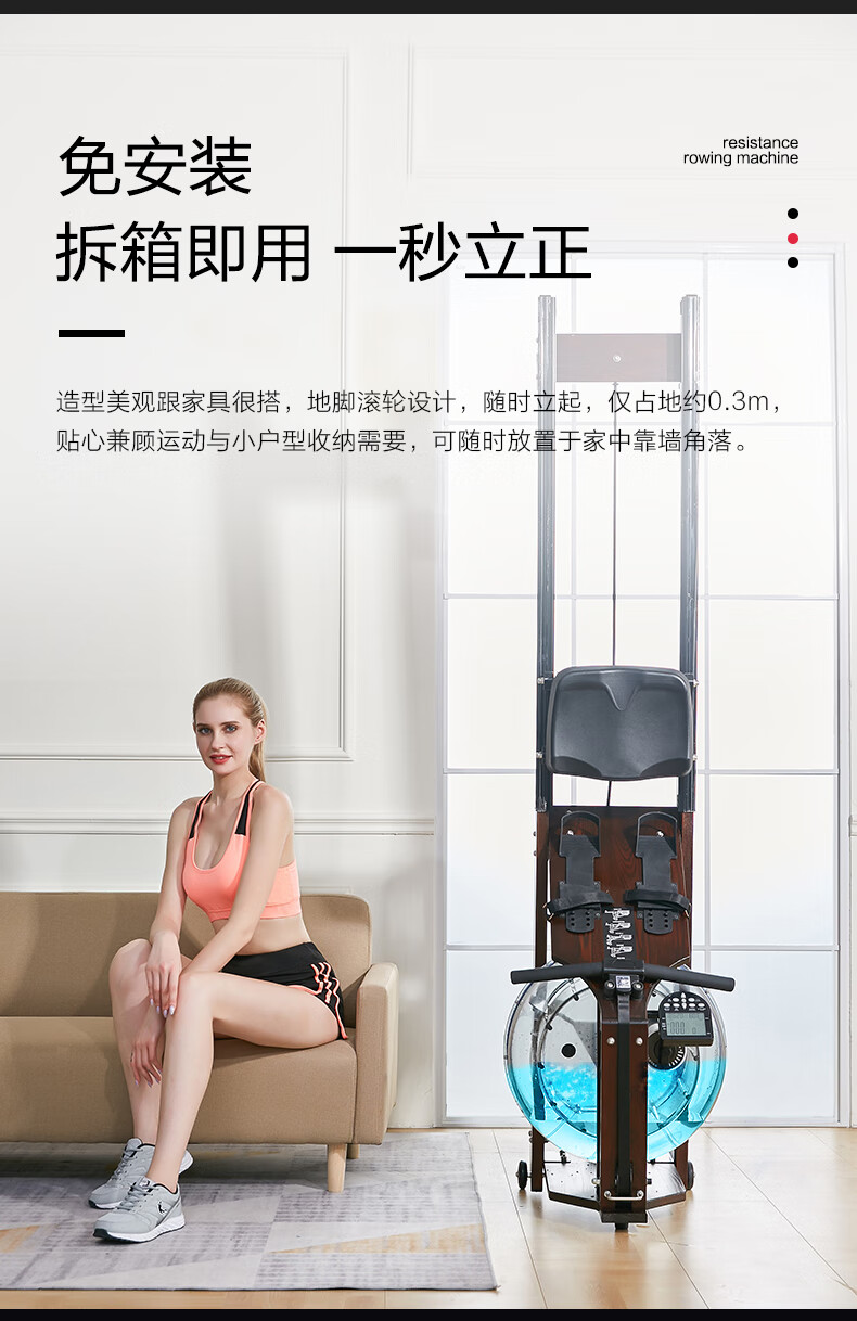 Iosn British commercial water resistance rowing machine home gym solid wood rowing machine boat folding house of cards log basic version/North American imported FAS oak