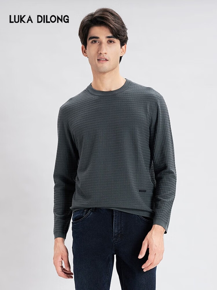 Luca Dillon contains golden wool, soft wool, elastic and antibacterial business long-sleeved men's wool sweater, round neck T-shirt, dark gray S 46
