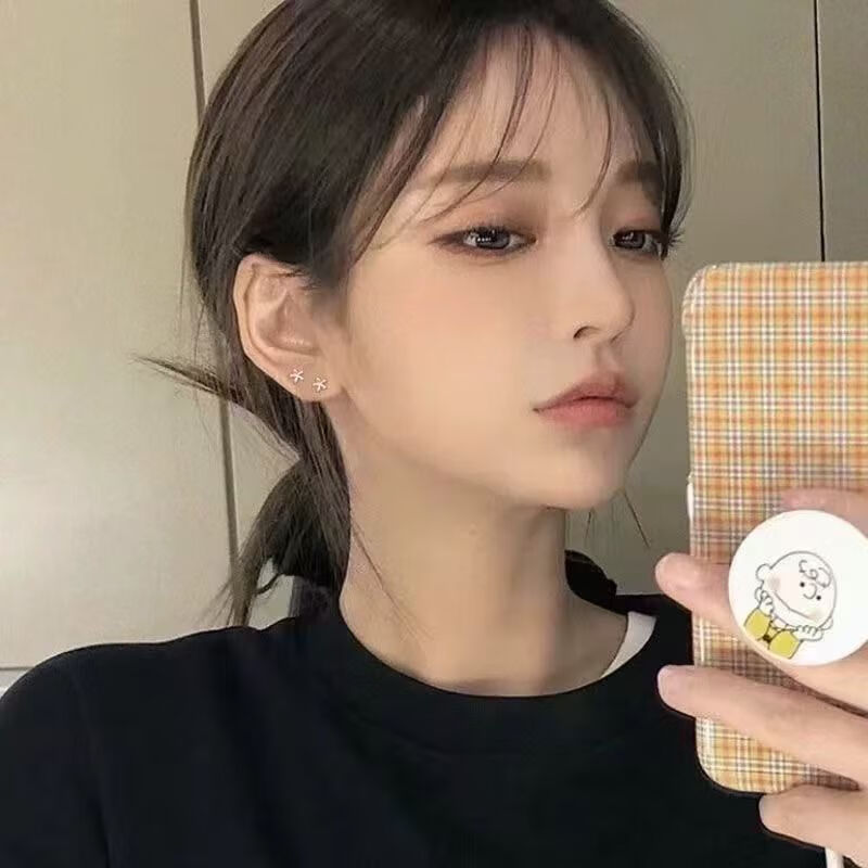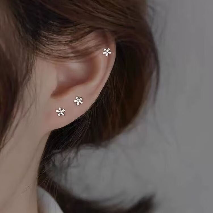 Pupan Lao Phoenix sterling silver 9999 small flower earrings for ear piercing, versatile mini small earrings for women to sleep without removing earrings, mini small flower pair, Lao Fengxiang's same style