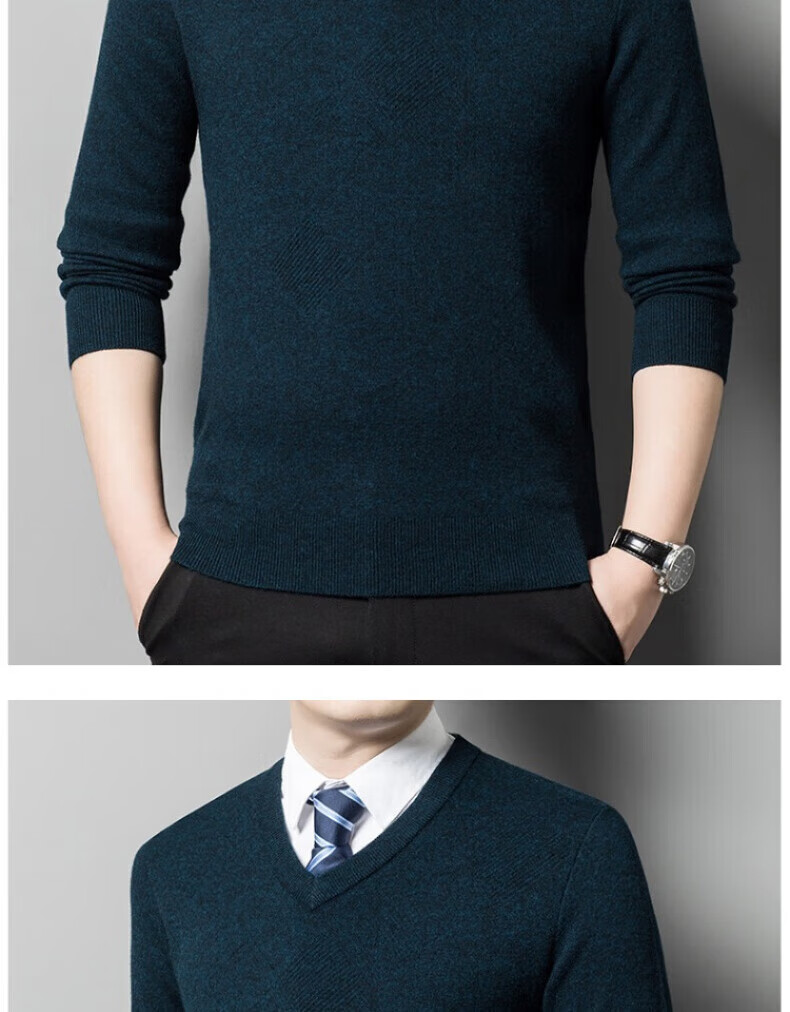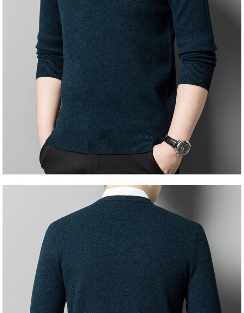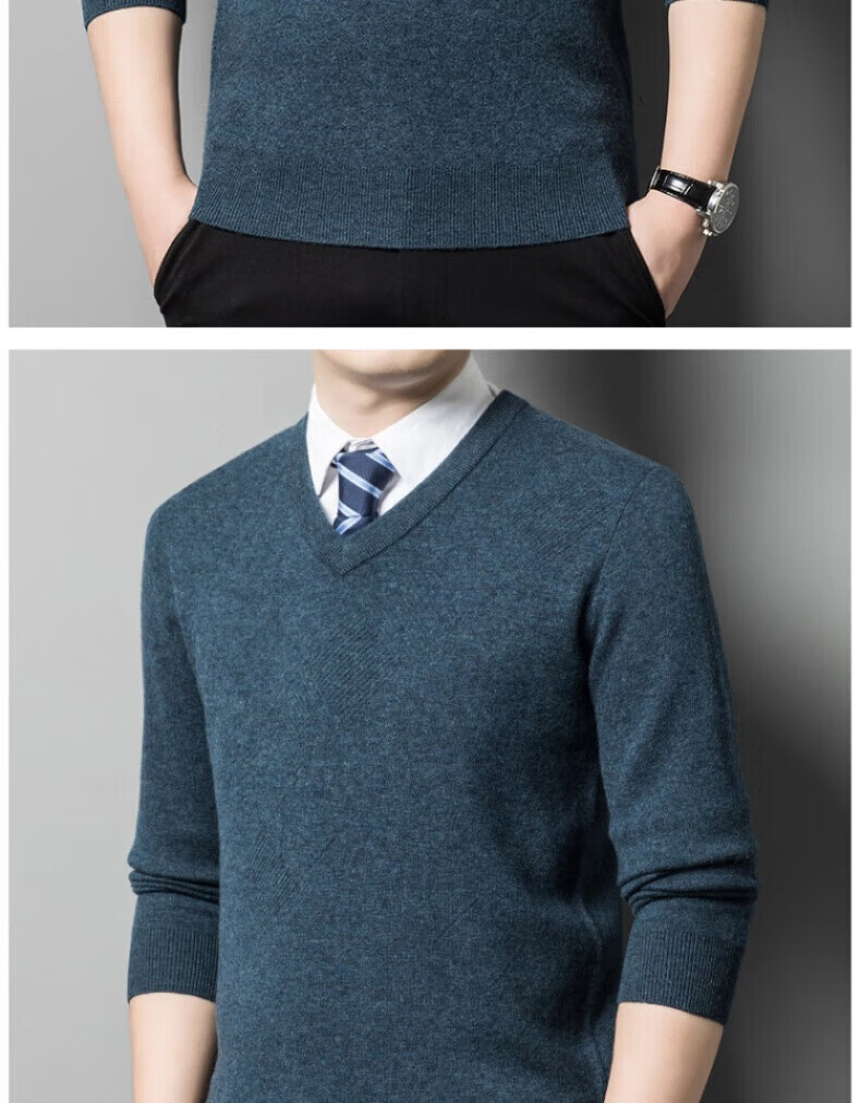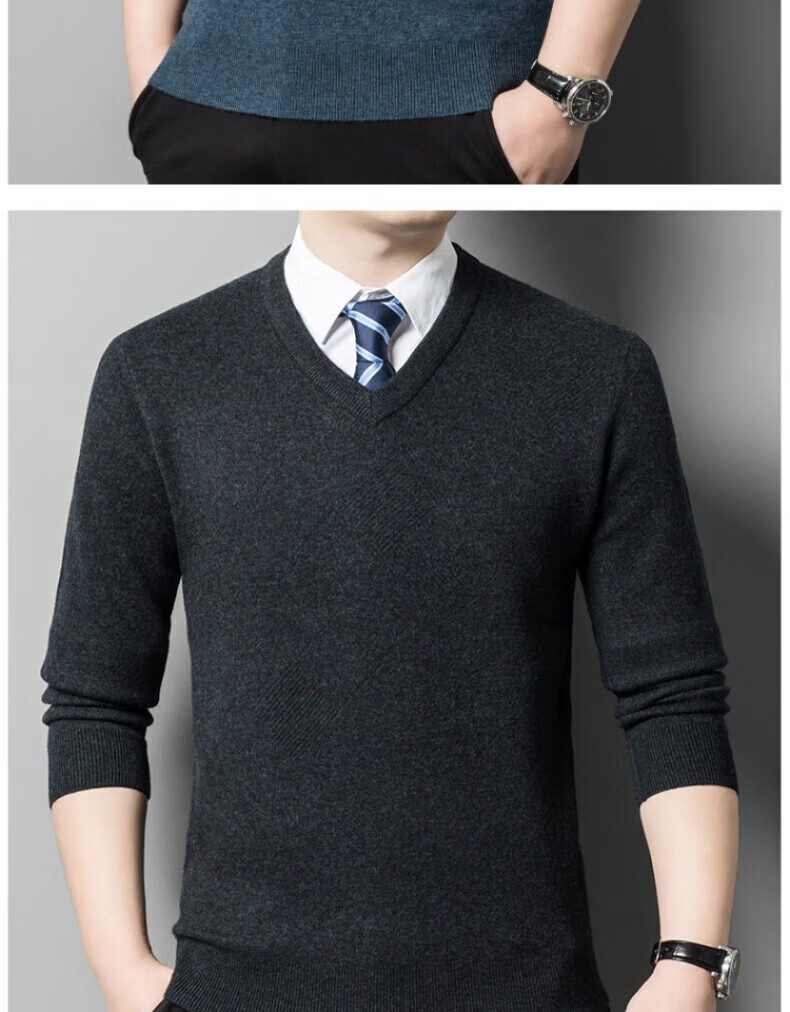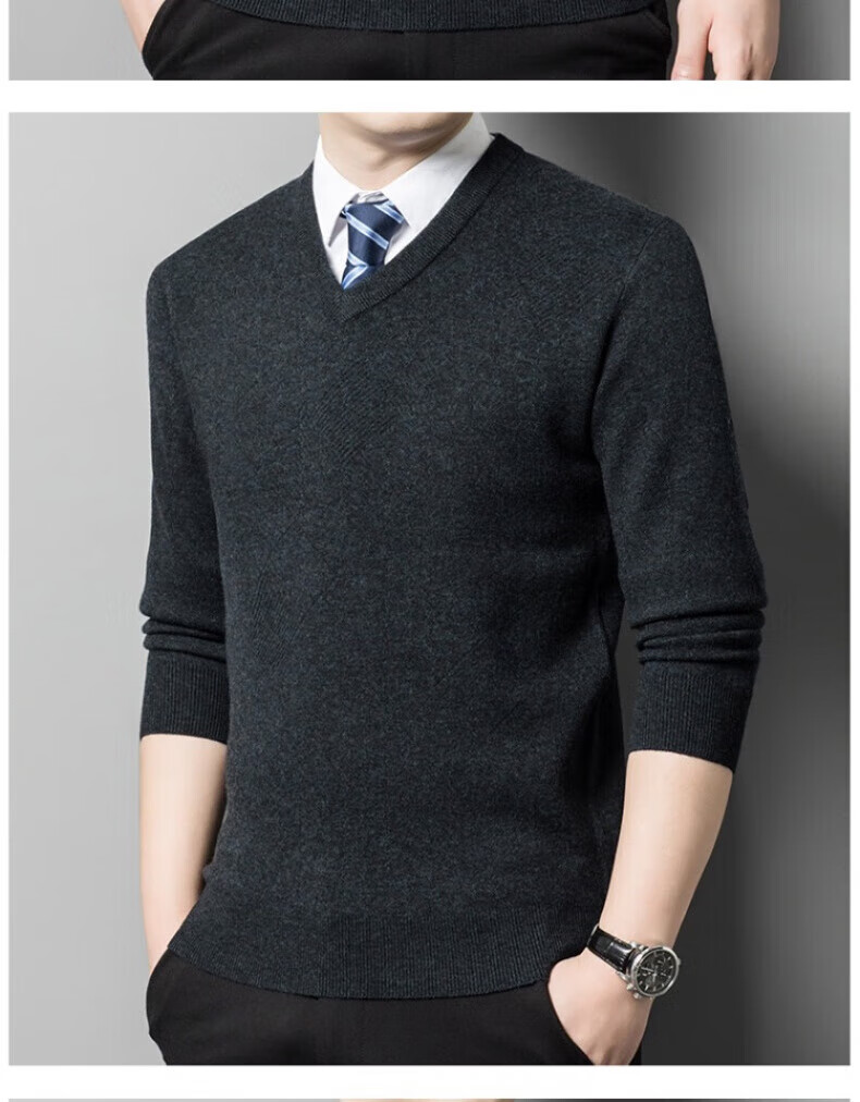 XJSGS international brand men's high-end wool sweater 100% pure wool autumn and winter new V-neck sweater men's bottoming shirt high-end black gray spot XL