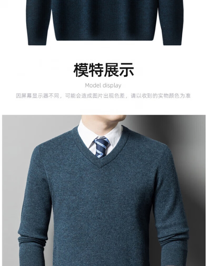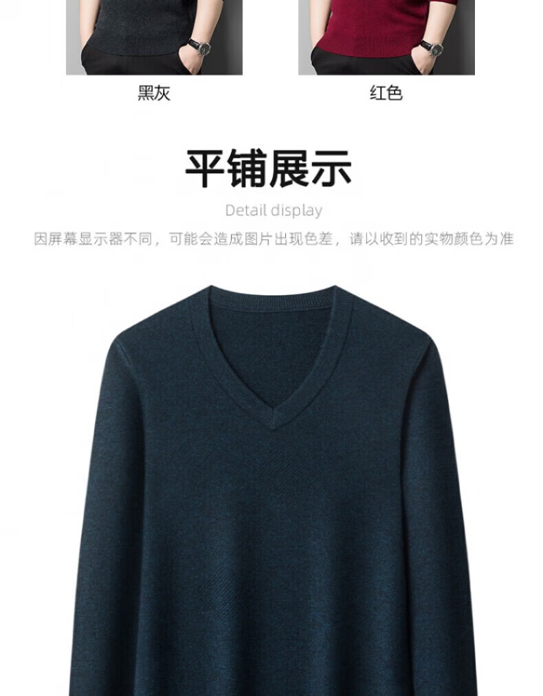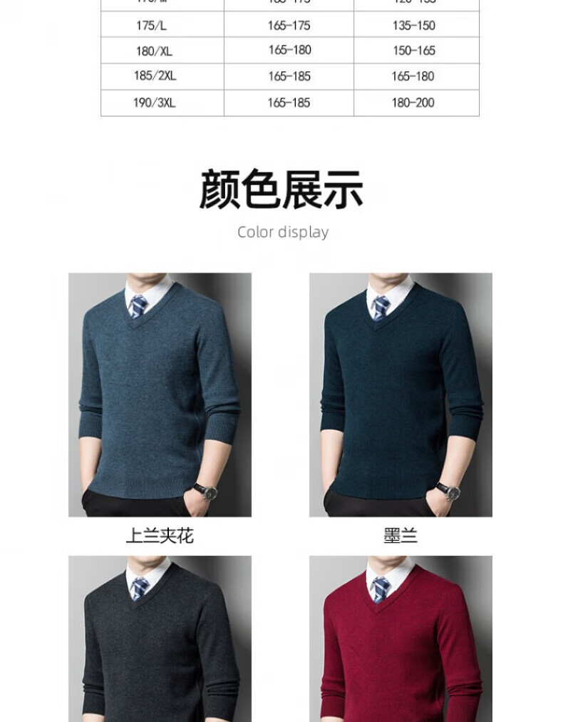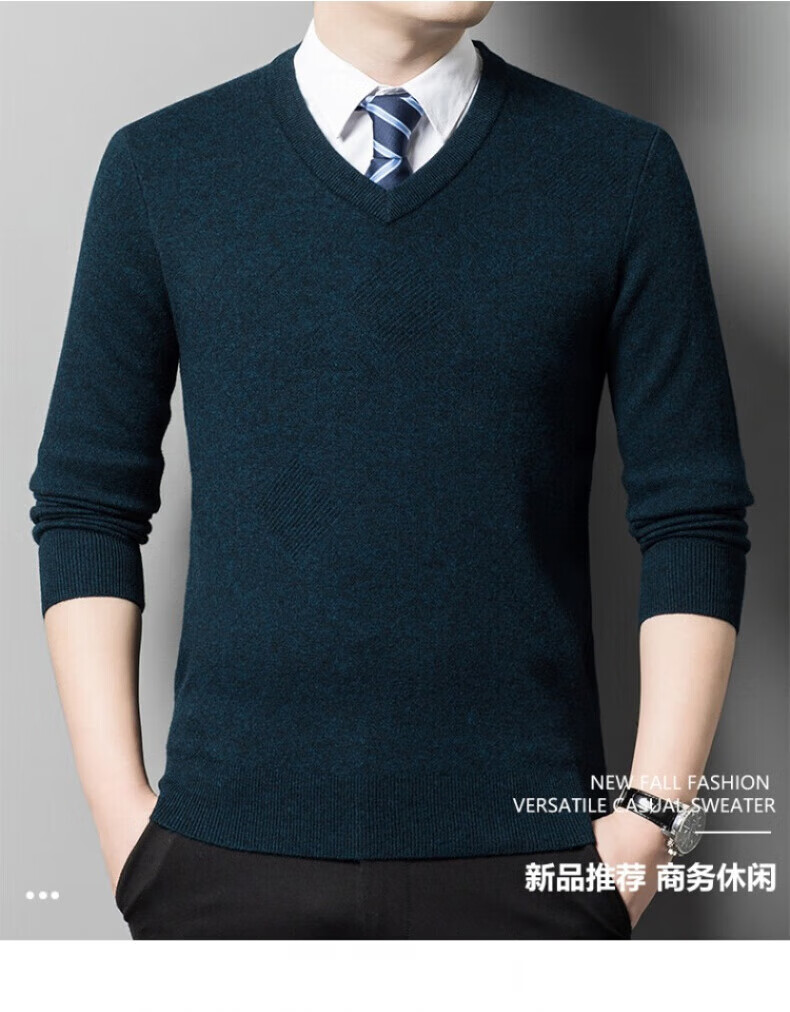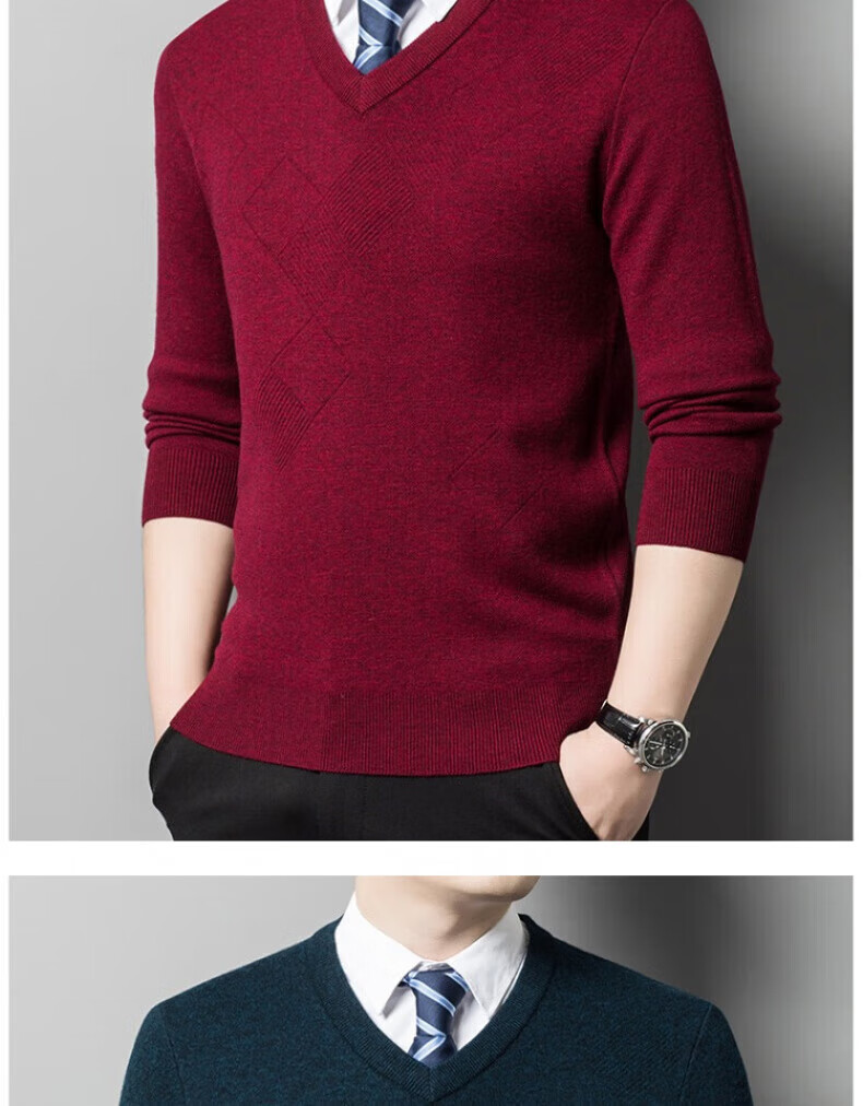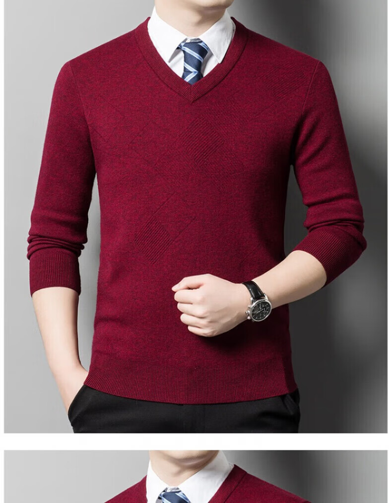 XJSGS international brand men's high-end wool sweater 100% pure wool autumn and winter new V-neck sweater men's bottoming shirt high-end black gray spot XL