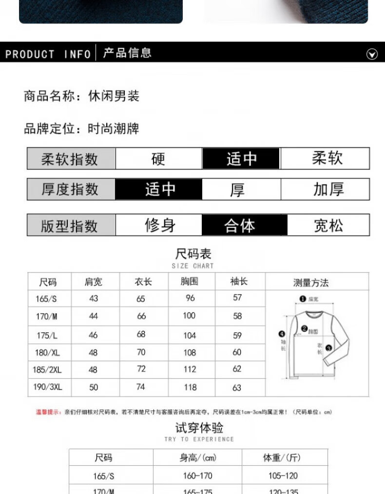 China (cm) 165 / 88-90 170 / 96-98 175 / 108-110 180 / 118-122 185 / 126-130