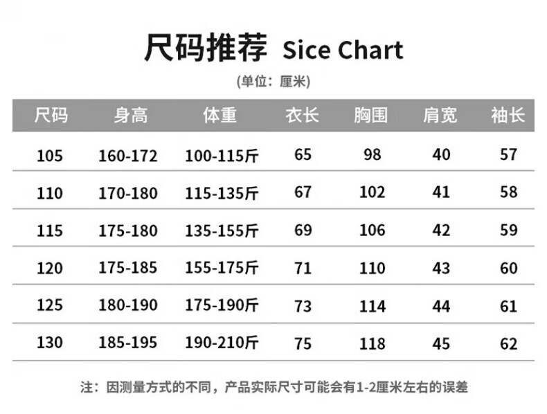China (cm) 165 / 88-90 170 / 96-98 175 / 108-110 180 / 118-122 185 / 126-130