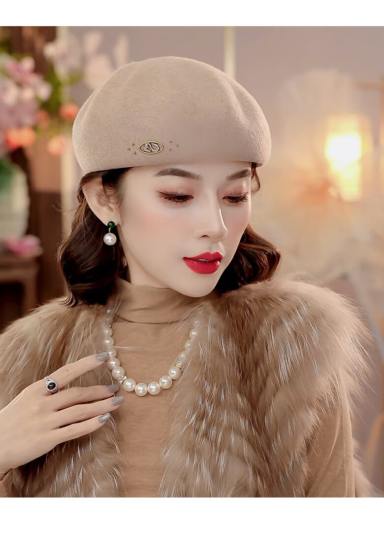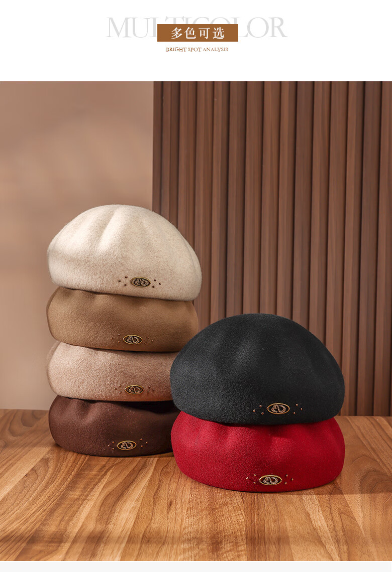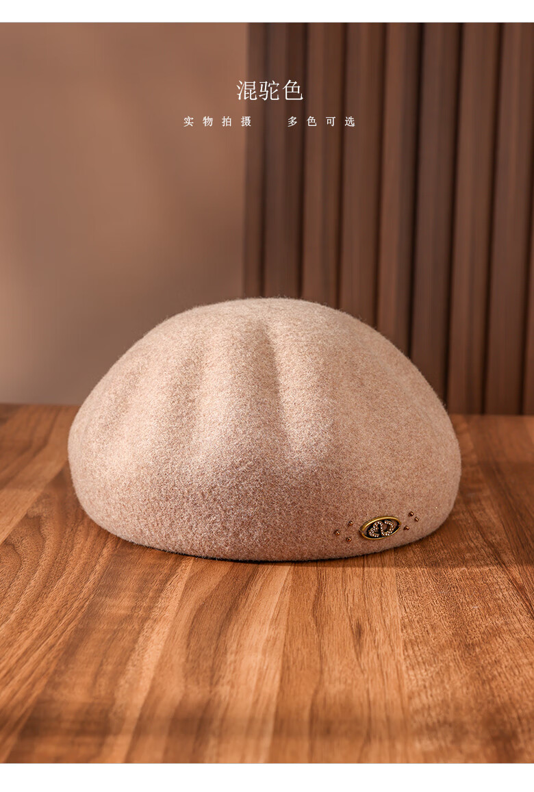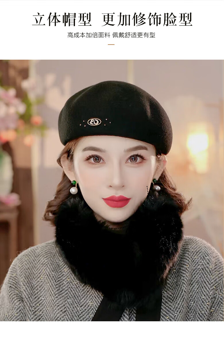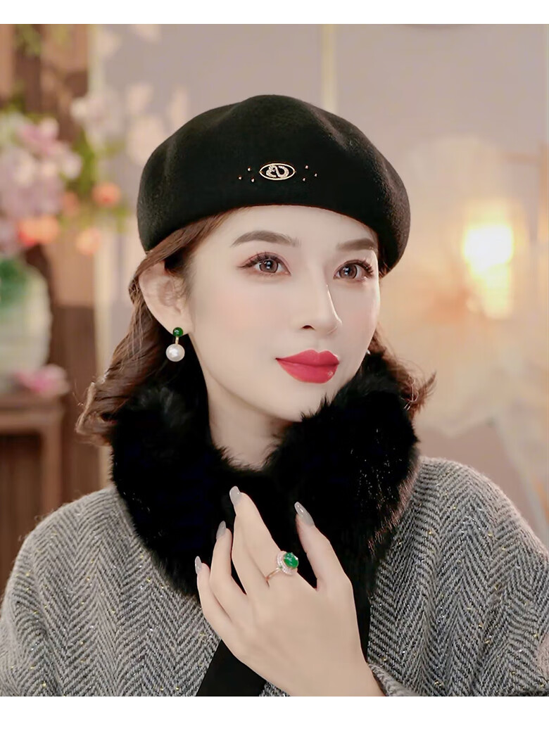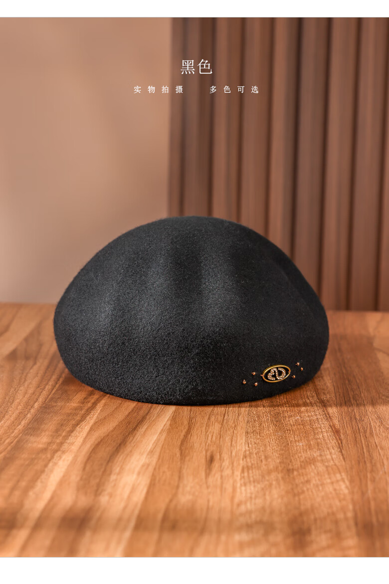 PTAH autumn and winter wool hat, bud hat, woolen simple retro fashion beret, handmade beading, shopping, winter new style, black