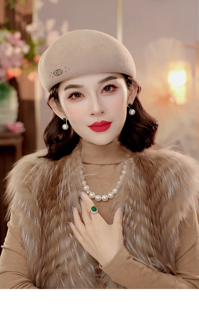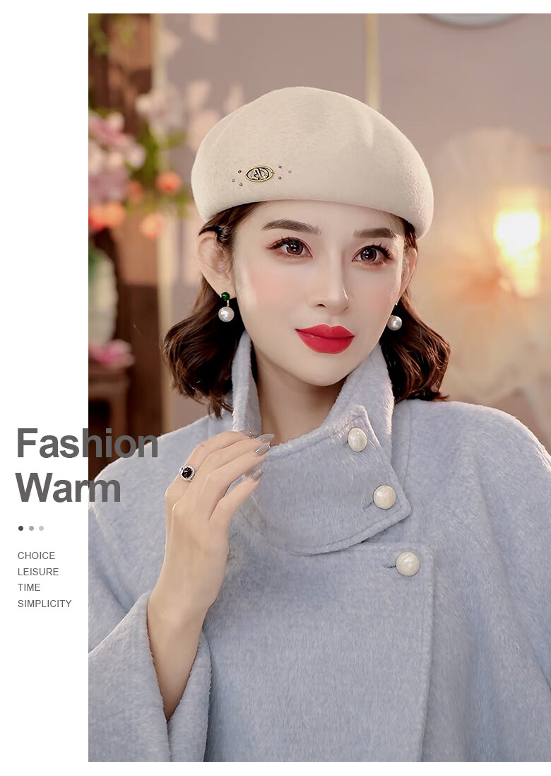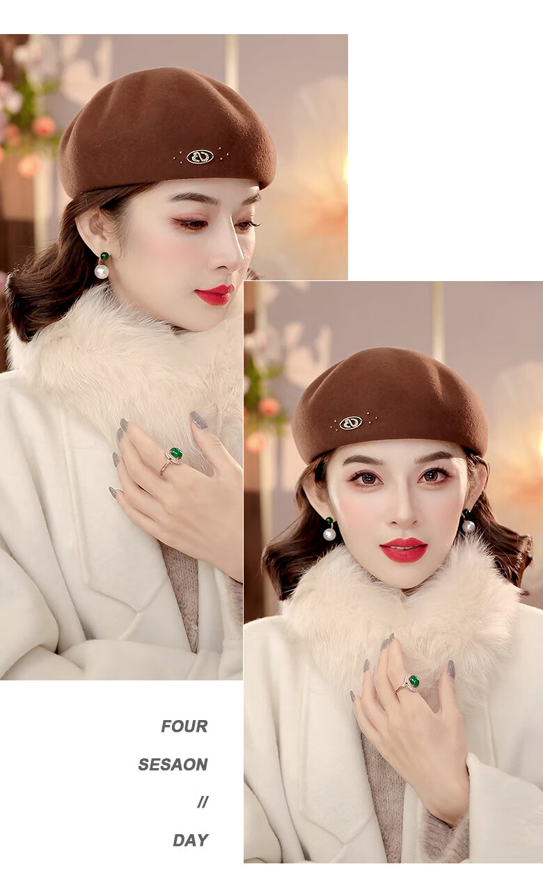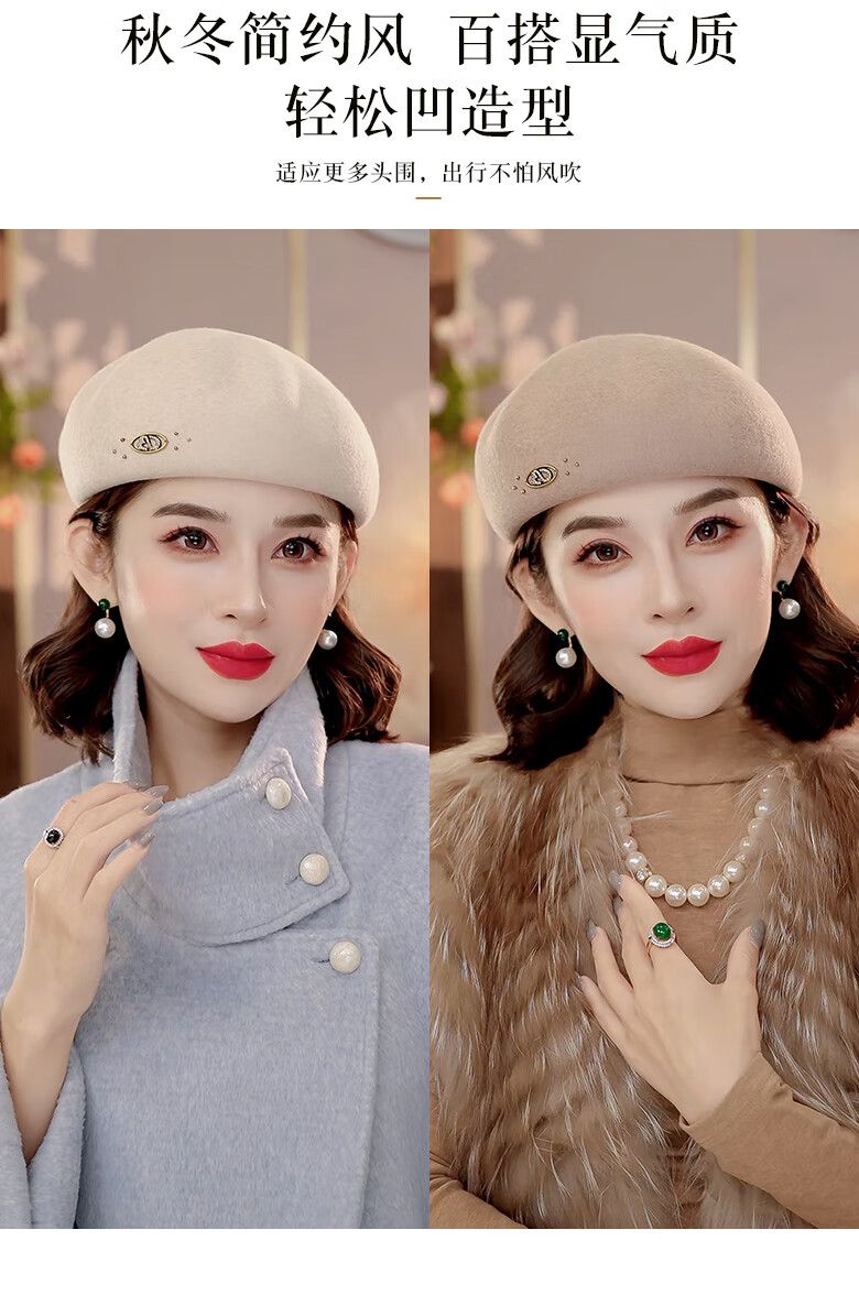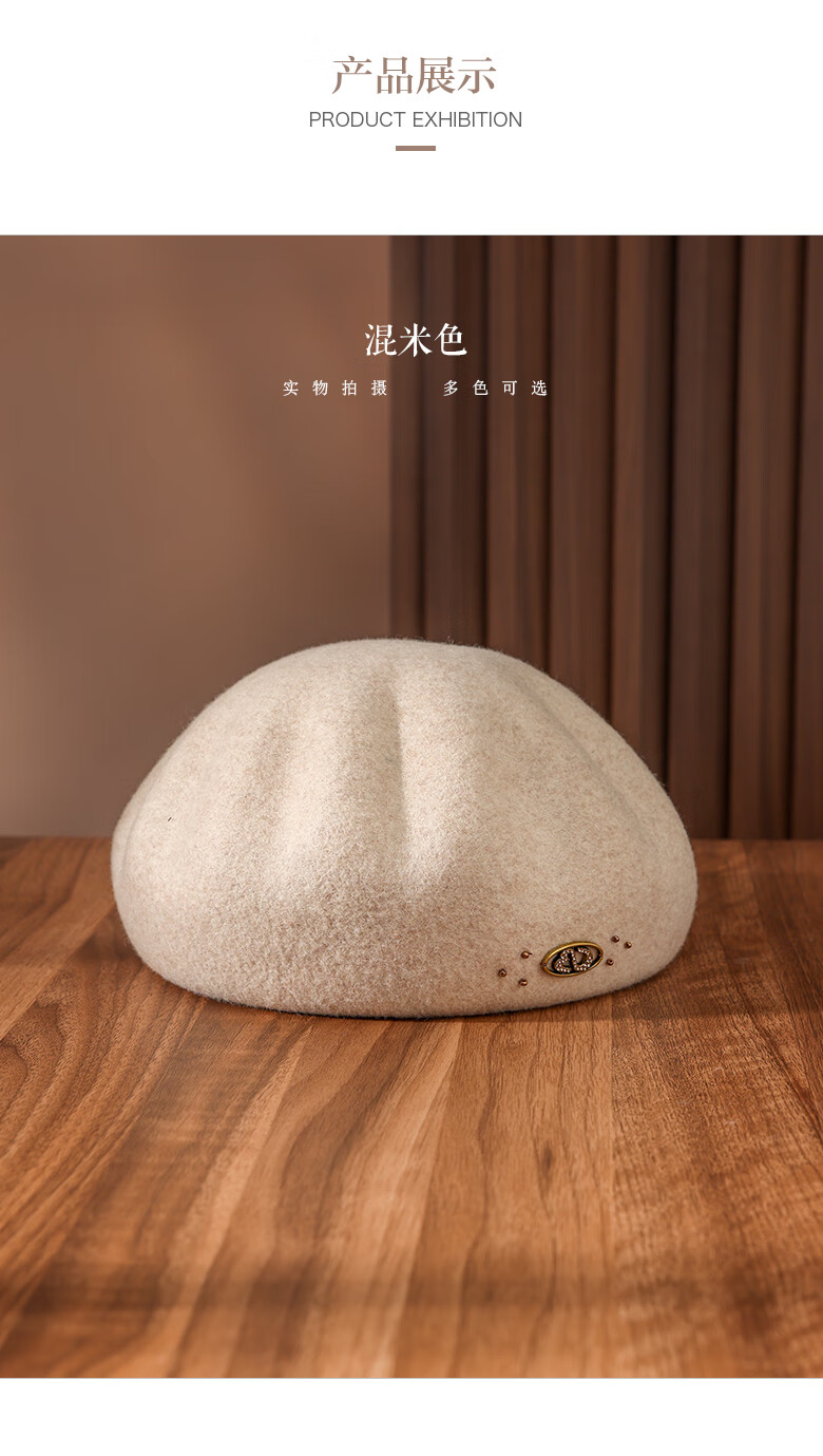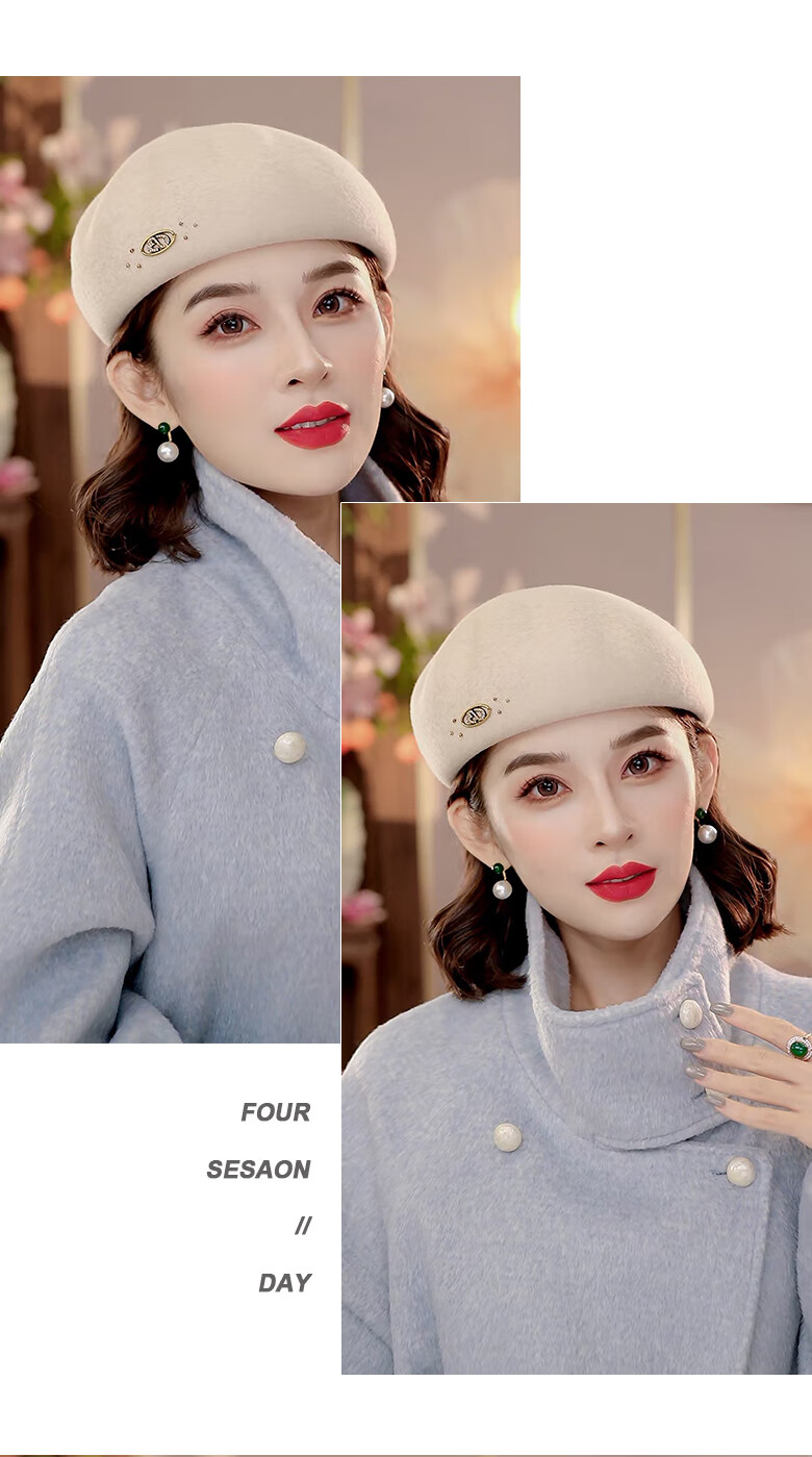 PTAH autumn and winter wool hat, bud hat, woolen simple retro fashion beret, handmade beading, shopping, winter new style, black