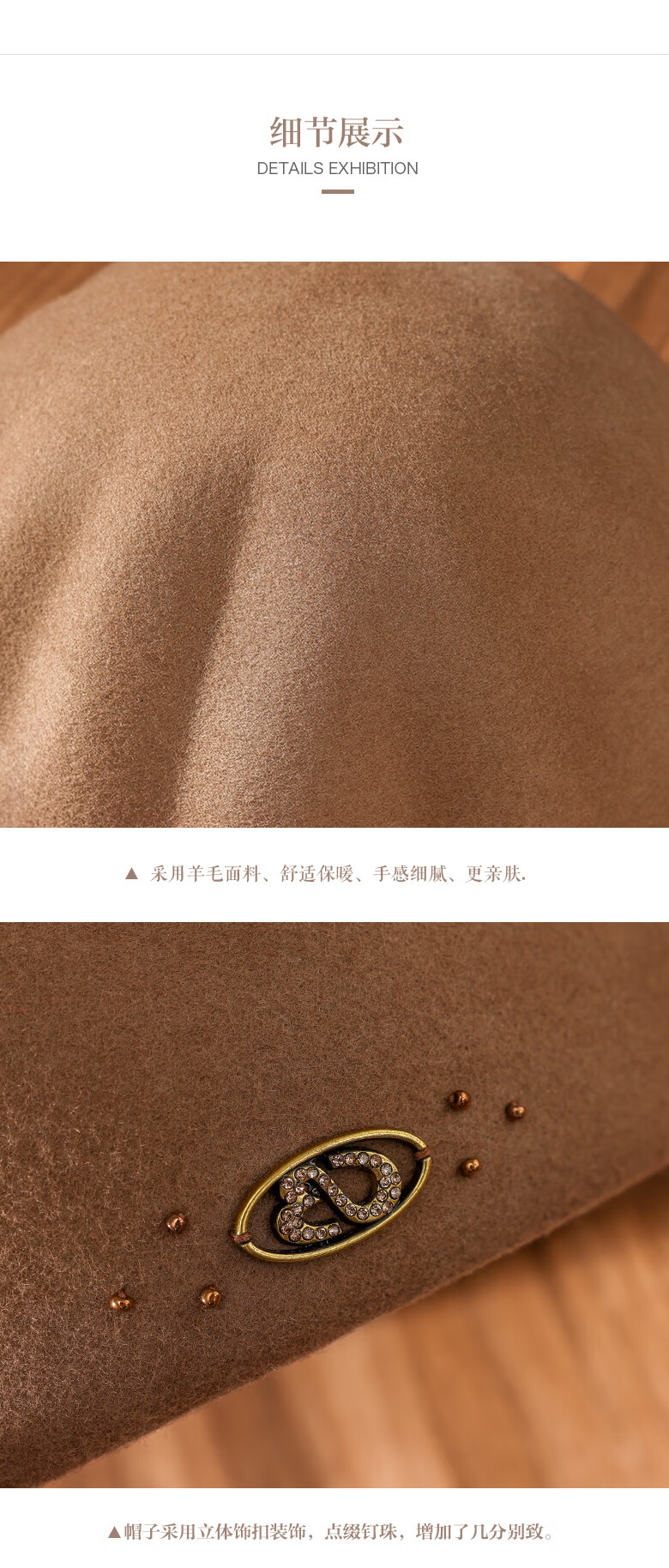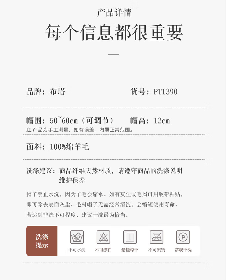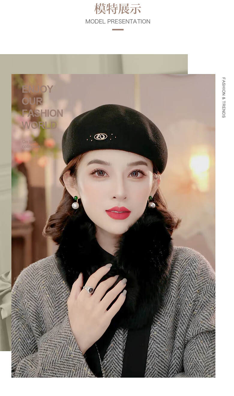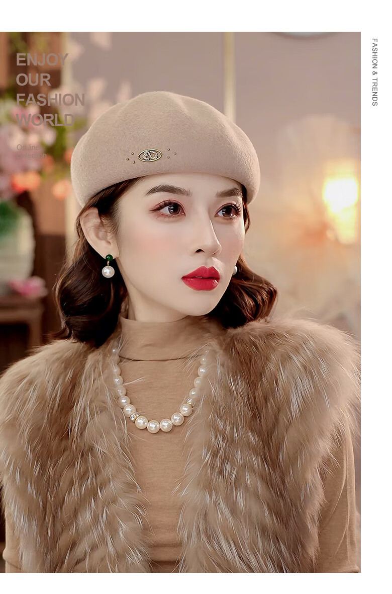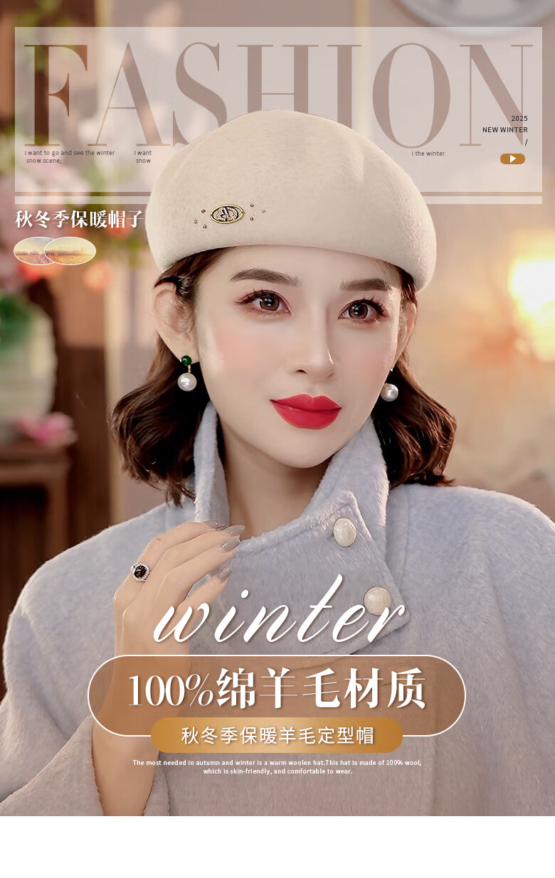 PTAH autumn and winter wool hat, bud hat, woolen simple retro fashion beret, handmade beading, shopping, winter new style, black
