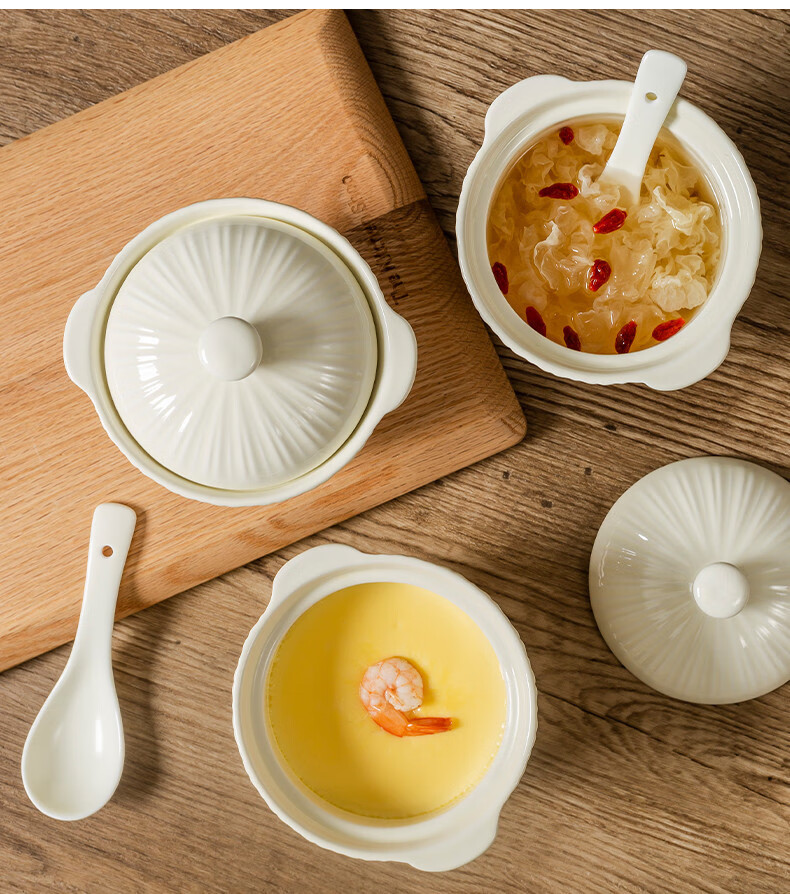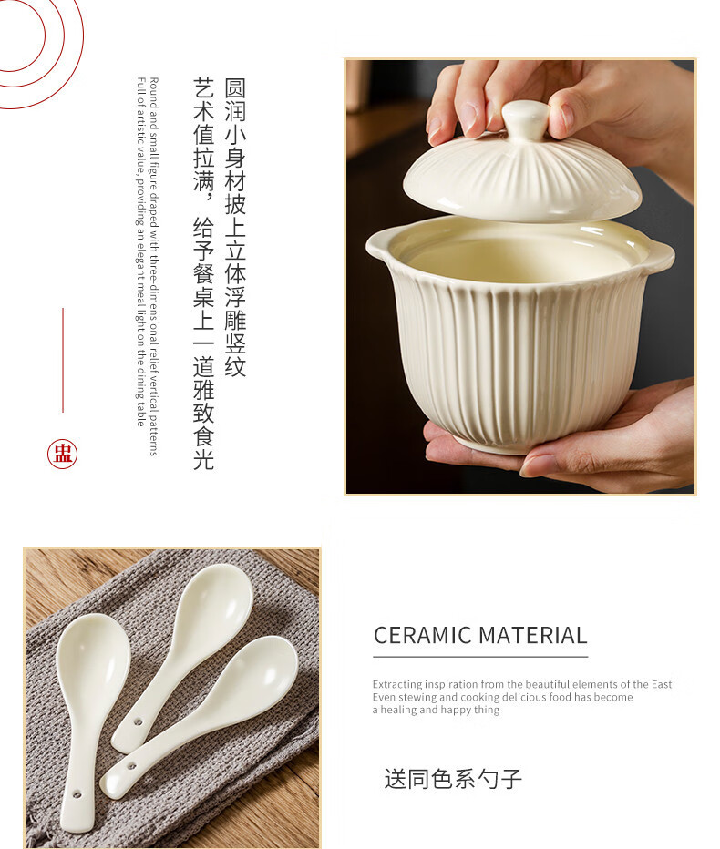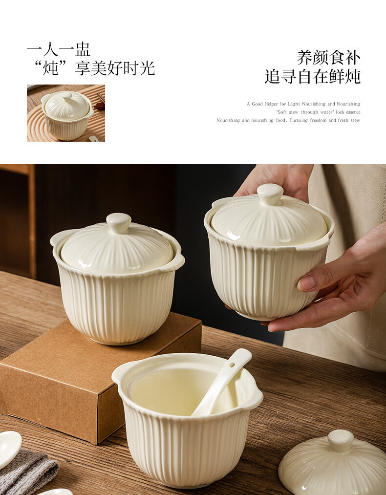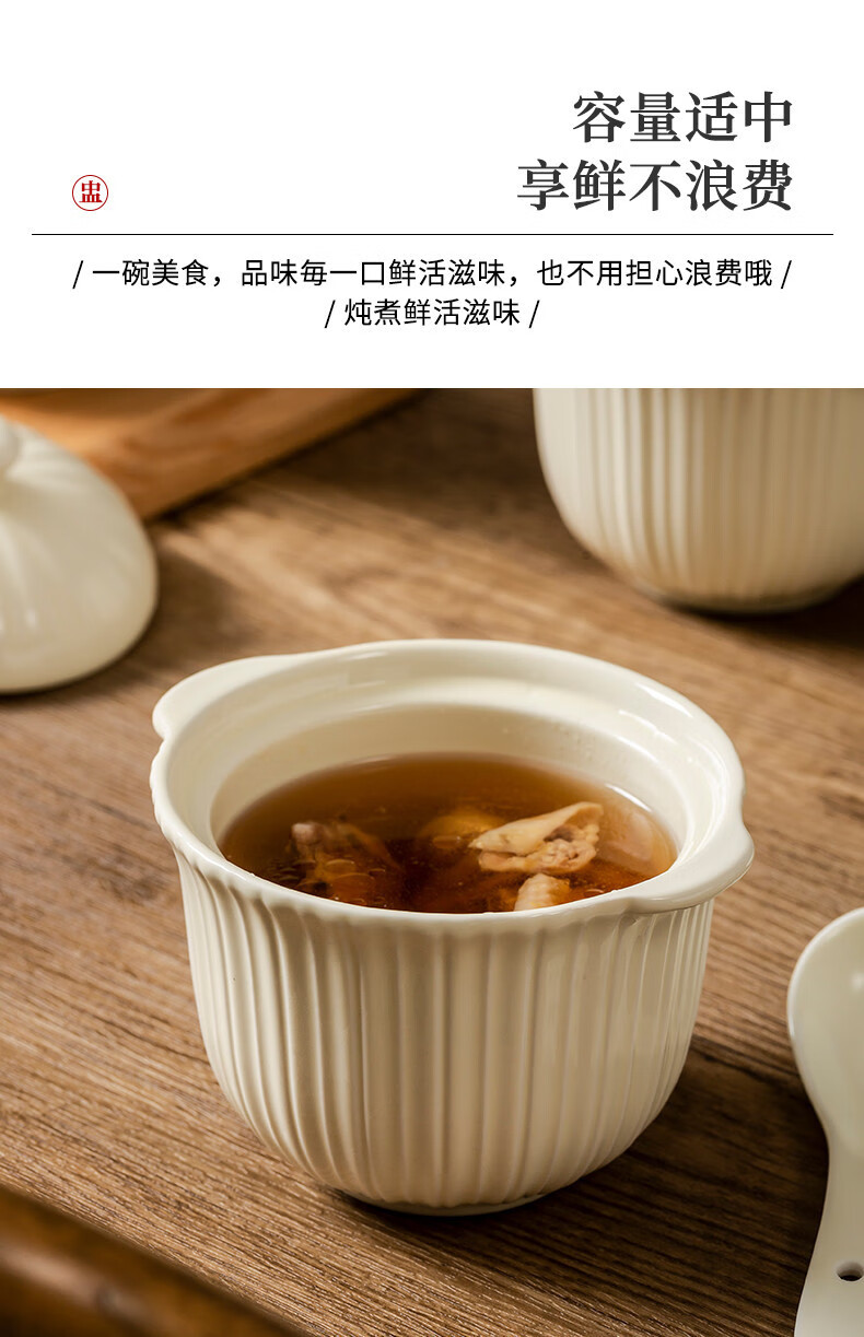 MZXM Japan imported quality bird's nest stew pot water-proof stew household ceramic stew pot with lid soup cup for one person steamed egg custard Rhine stew pot 497 with spoon