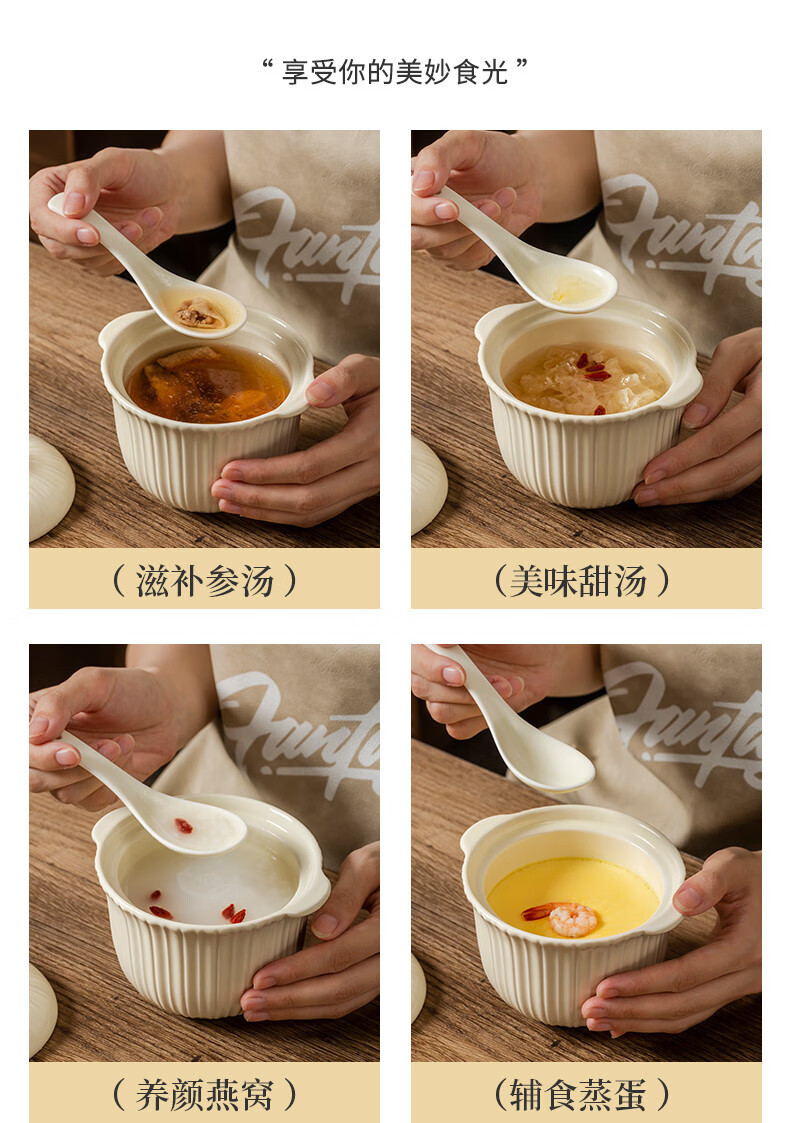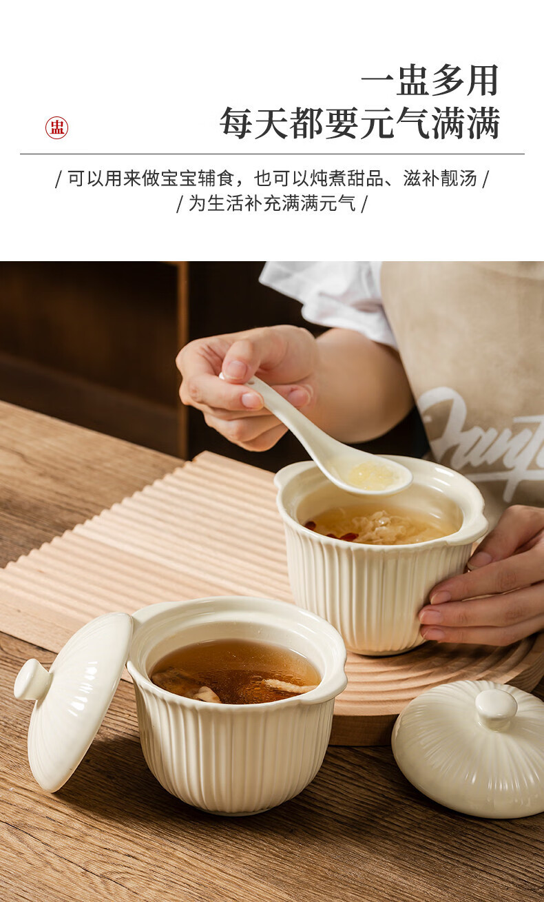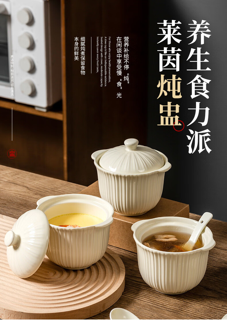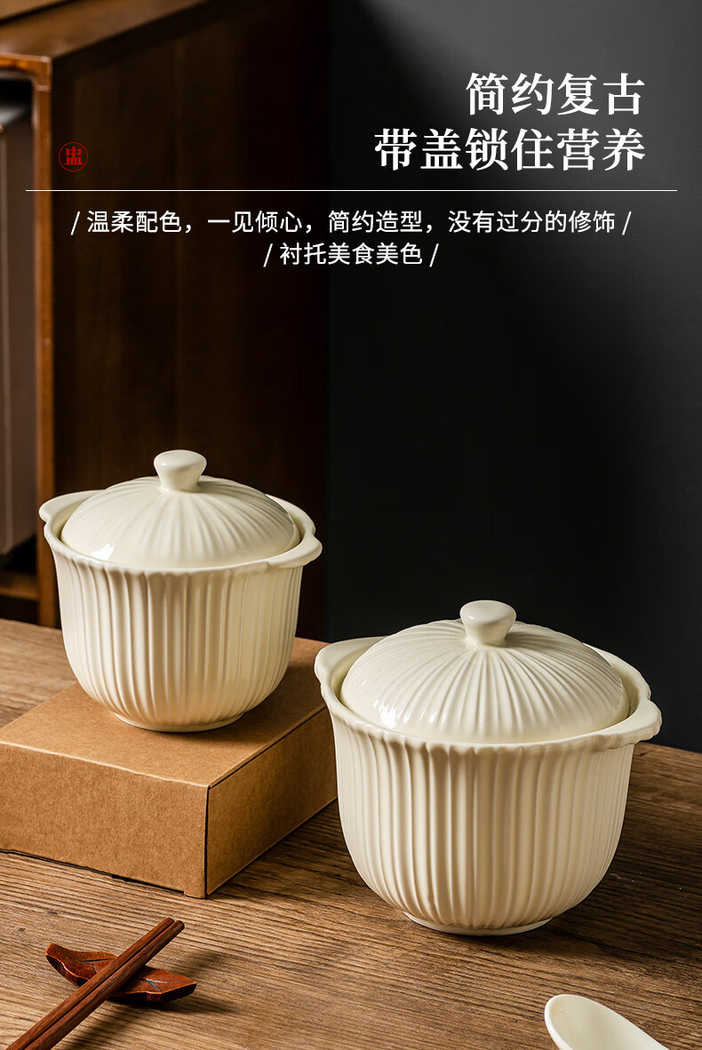 MZXM Japan imported quality bird's nest stew pot water-proof stew household ceramic stew pot with lid soup cup for one person steamed egg custard Rhine stew pot 497 with spoon