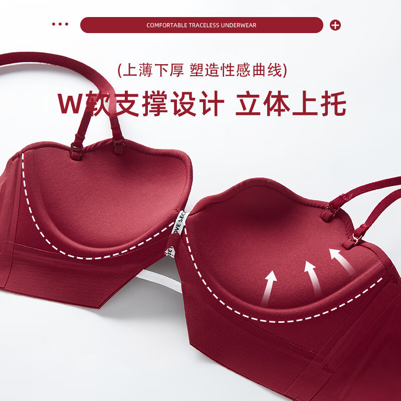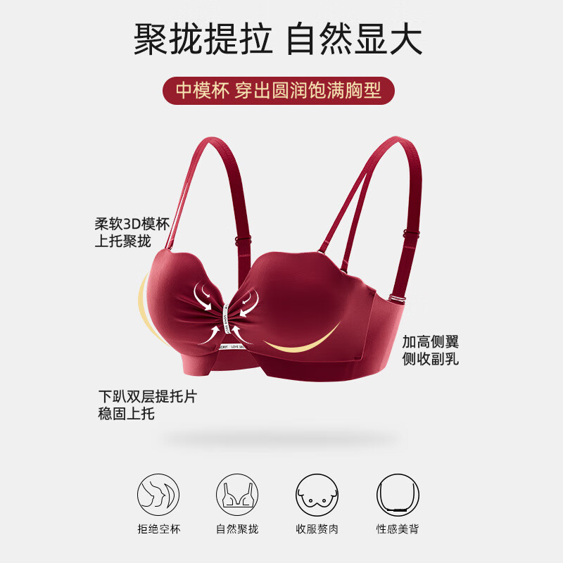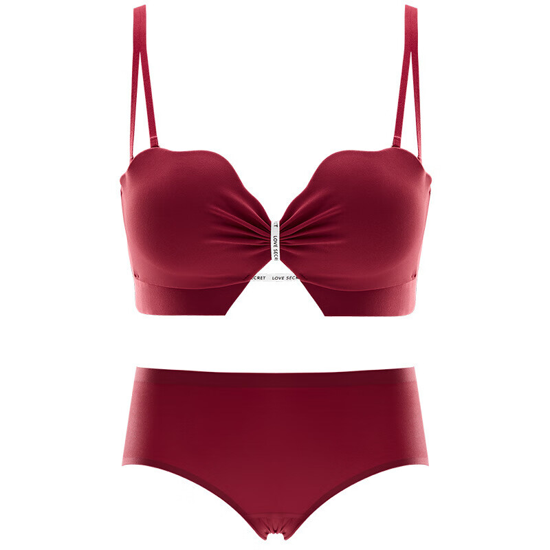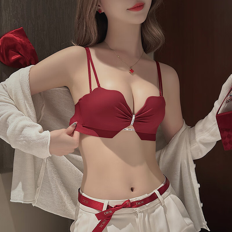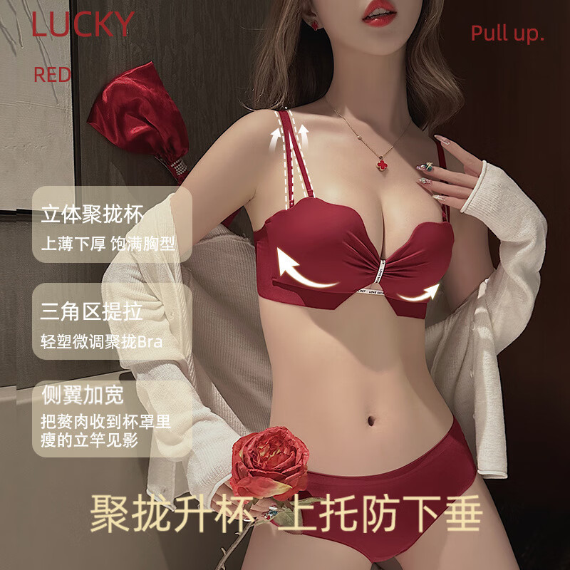 Adore Autumn and Summer Red Zodiac Year Underwear for Women without Wire Rings, Small Breasts, Push Up, Anti-Sagging, Side Breast Reduction, Wedding Bra Set, Retro Red, Single Piece 75B 34