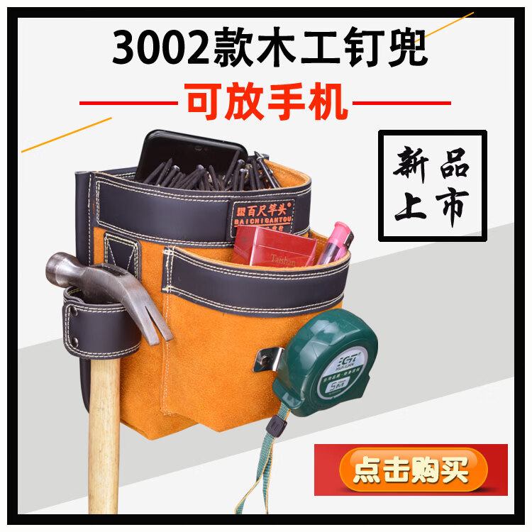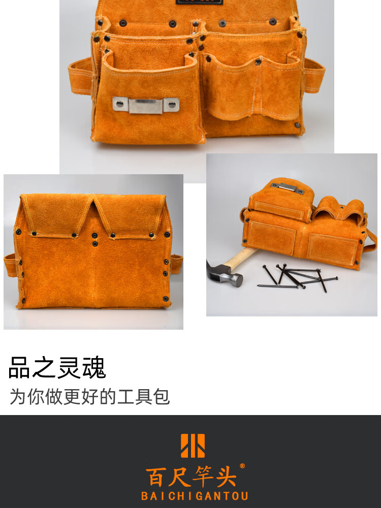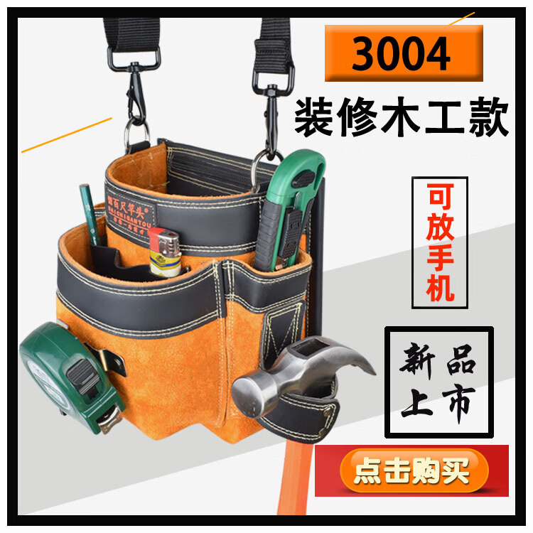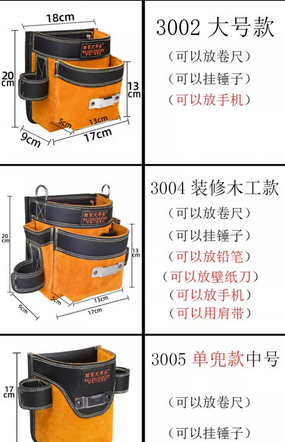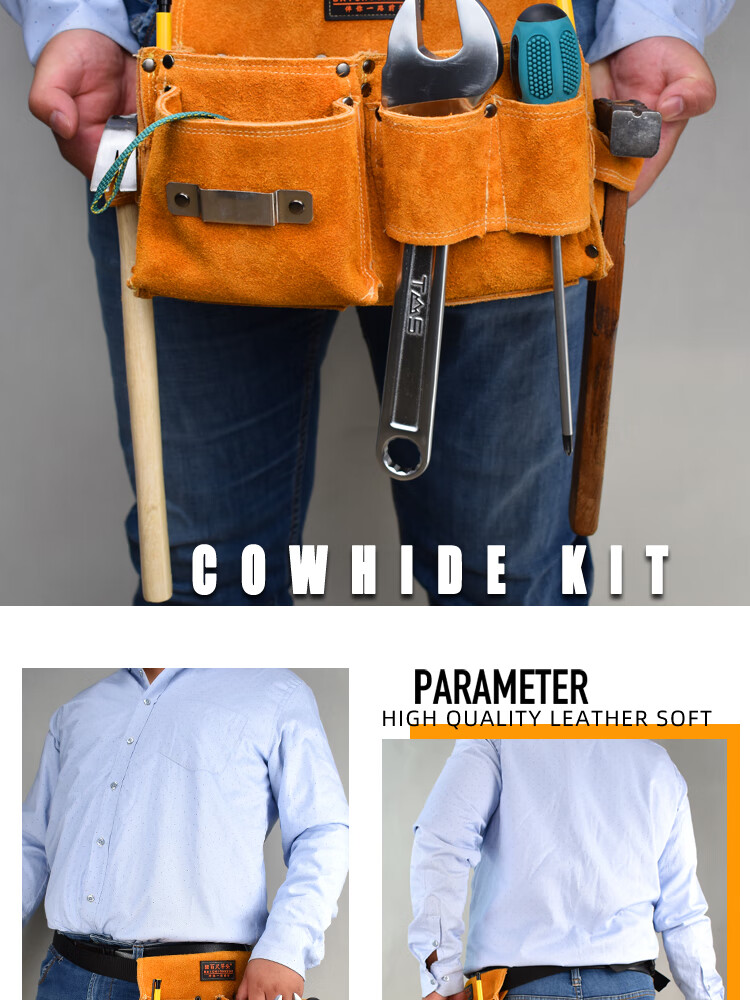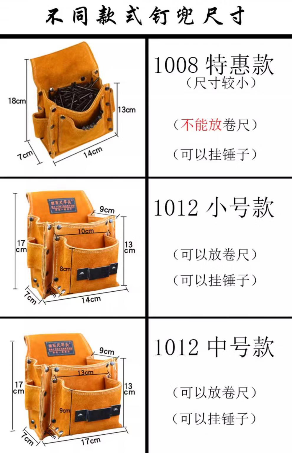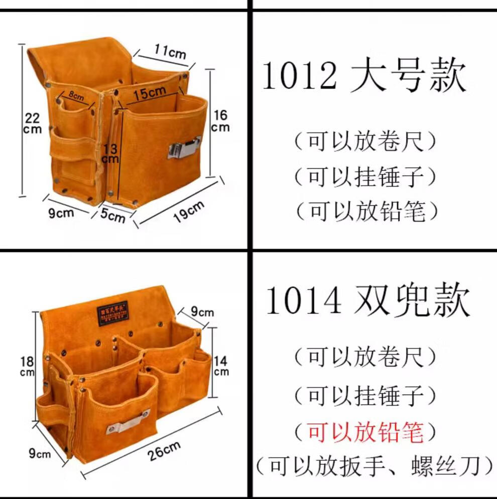 Yingtang Carpentry Nail Waist Pocket Nail Pocket Cowhide Carpentry Special Nail Bag Wear-Resistant Tool Bag Men's Multifunctional Waist Bag for Construction Site Yellow 1014 Double Pocket (Free Belt)