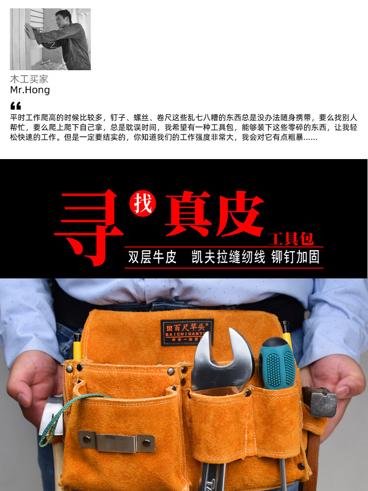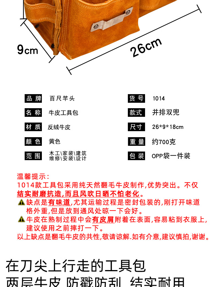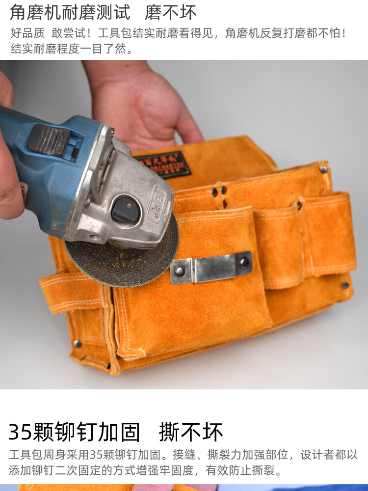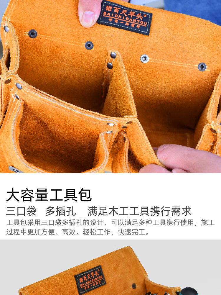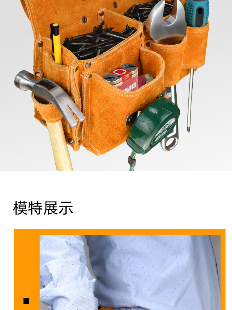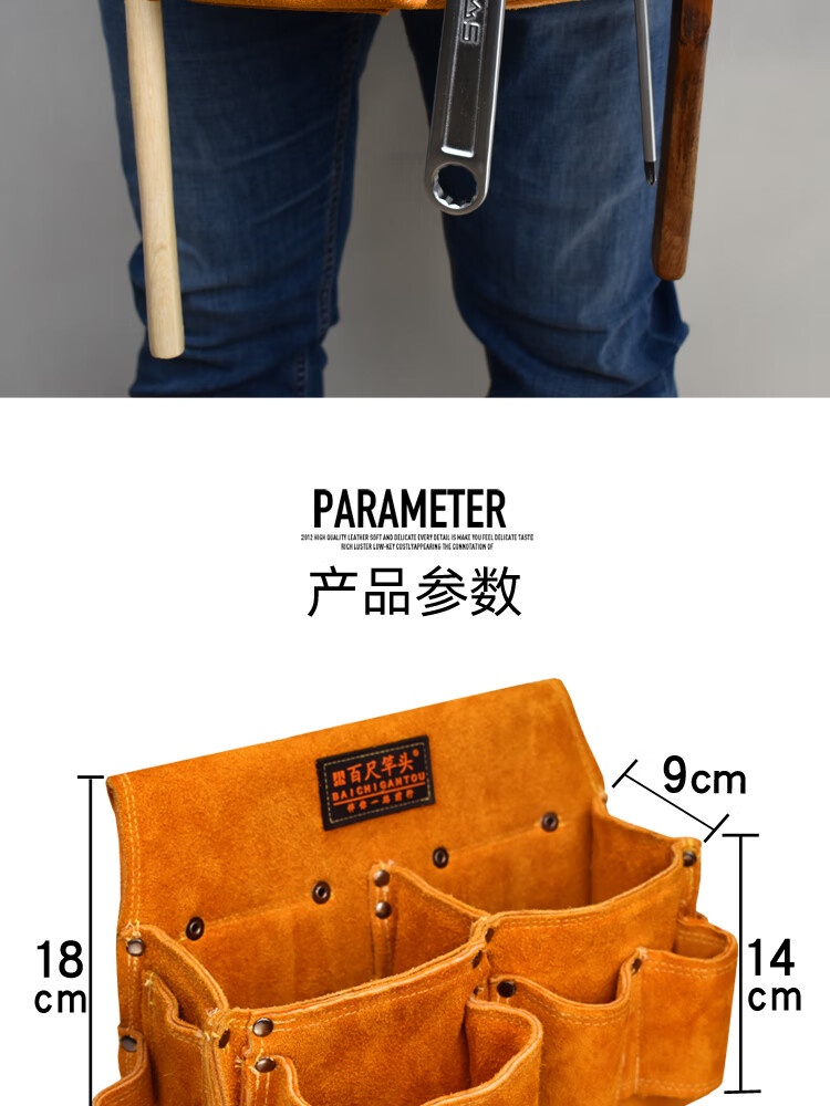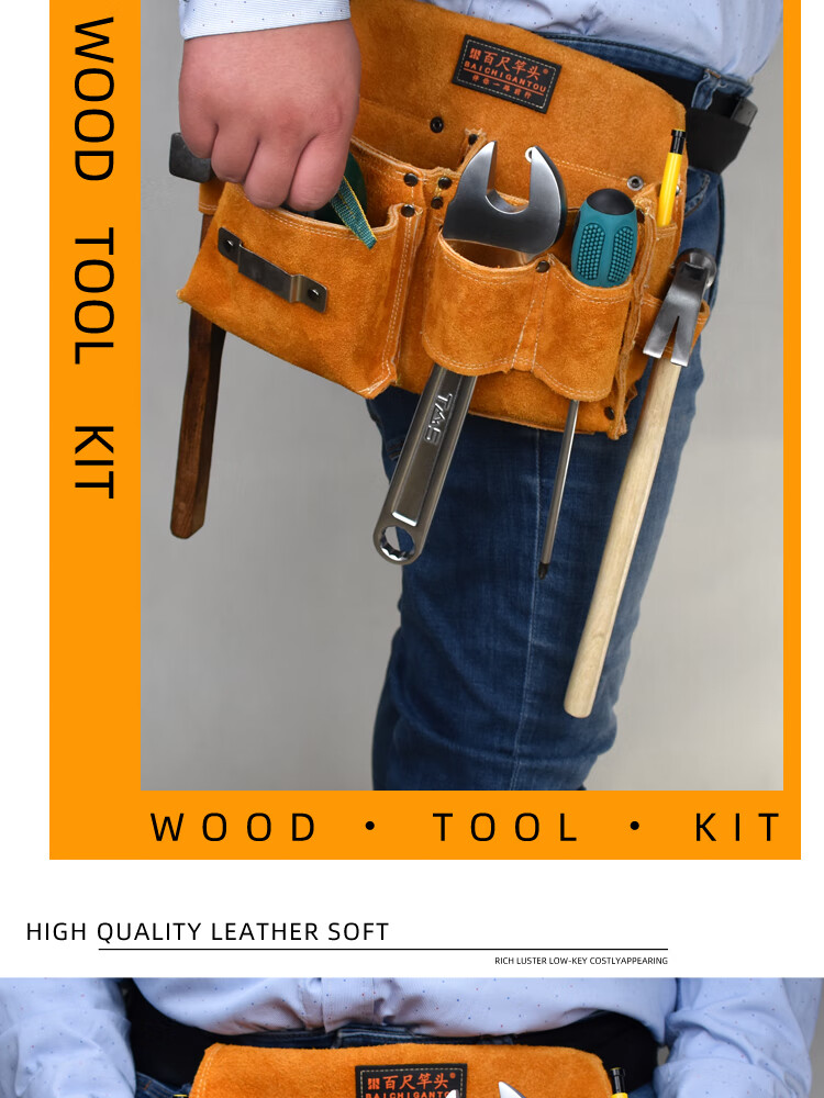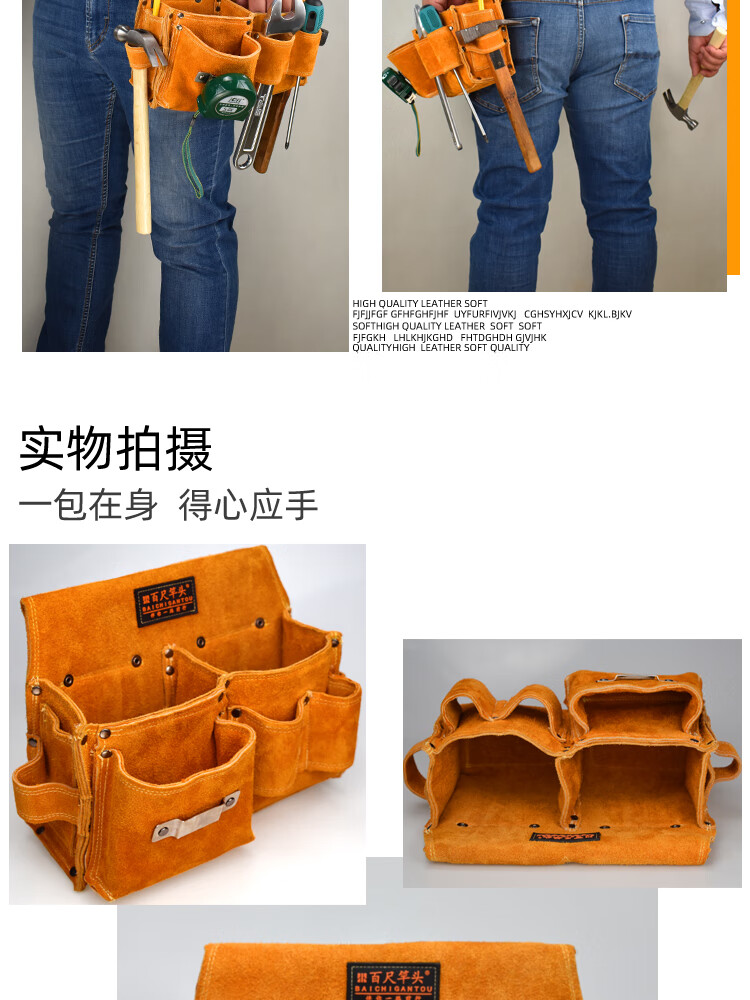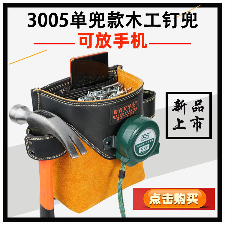 Yingtang Carpentry Nail Waist Pocket Nail Pocket Cowhide Carpentry Special Nail Bag Wear-Resistant Tool Bag Men's Multifunctional Waist Bag for Construction Site Yellow 1014 Double Pocket (Free Belt)