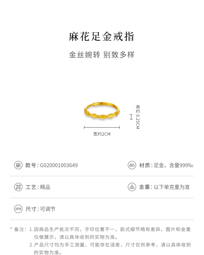 Lao Fengxiang Twist Gold Pure Gold Live Ring for Women Gift Price Twist Ring 2.21
