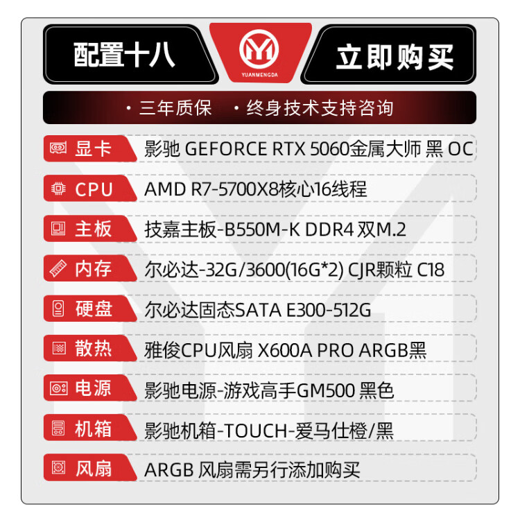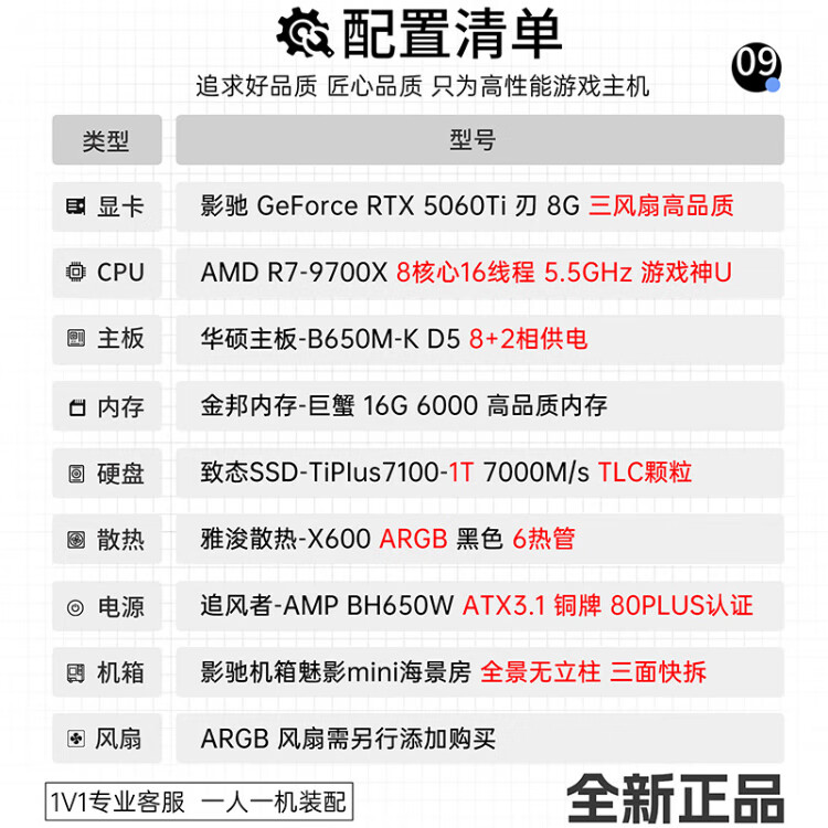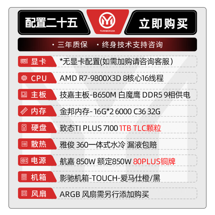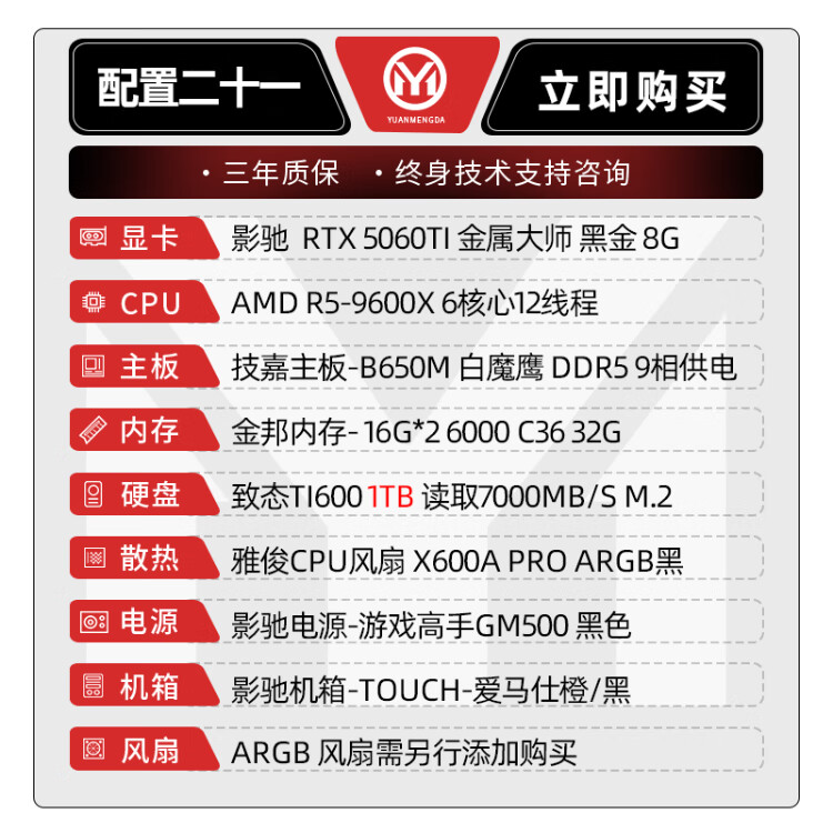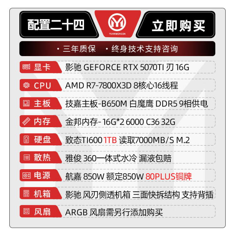 Yuanmengda amd 9600X/9700X/7800X3D/9800X3D+5060/5060Ti/5070/5070ti computer host ASUS motherboard game esports assembly computer with twenty-three 7800X3D+ GALAXY 5070