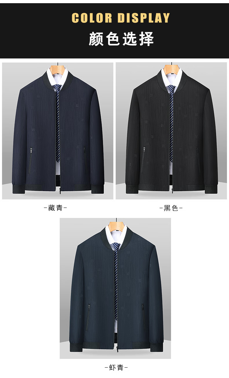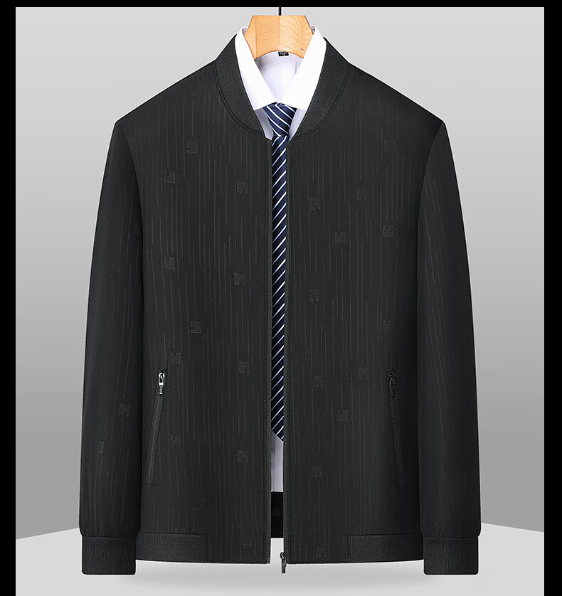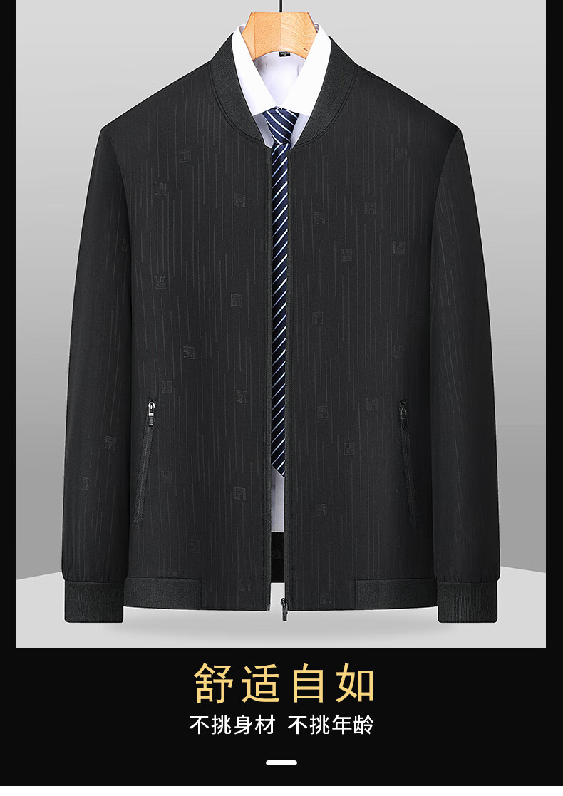 Middle-aged men's spring and autumn casual jackets, baseball collar jackets, stand collar spring and autumn thin casual tops, daddy clothes for men, black 2XL 185 yards 130-145Jin Jin is equal to 0.5 kg