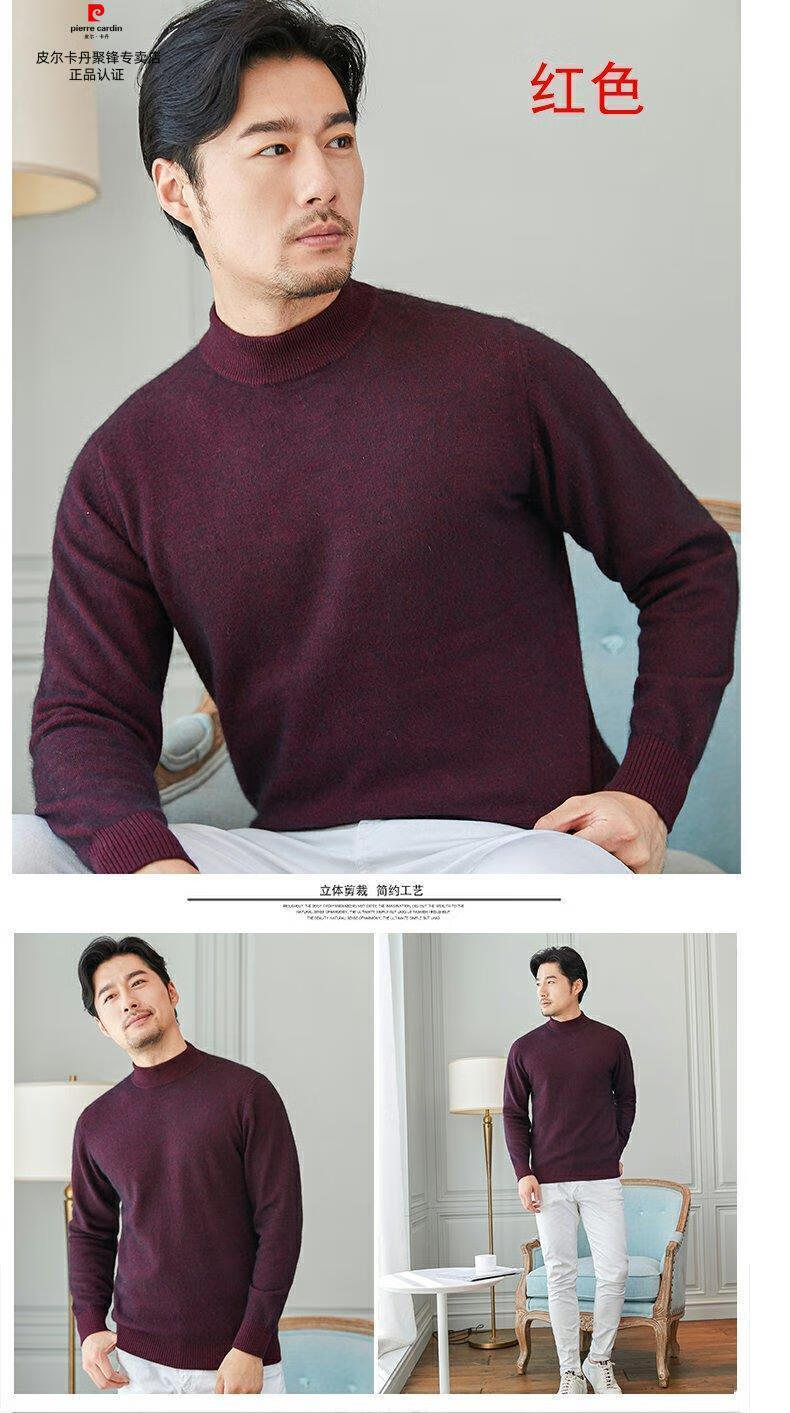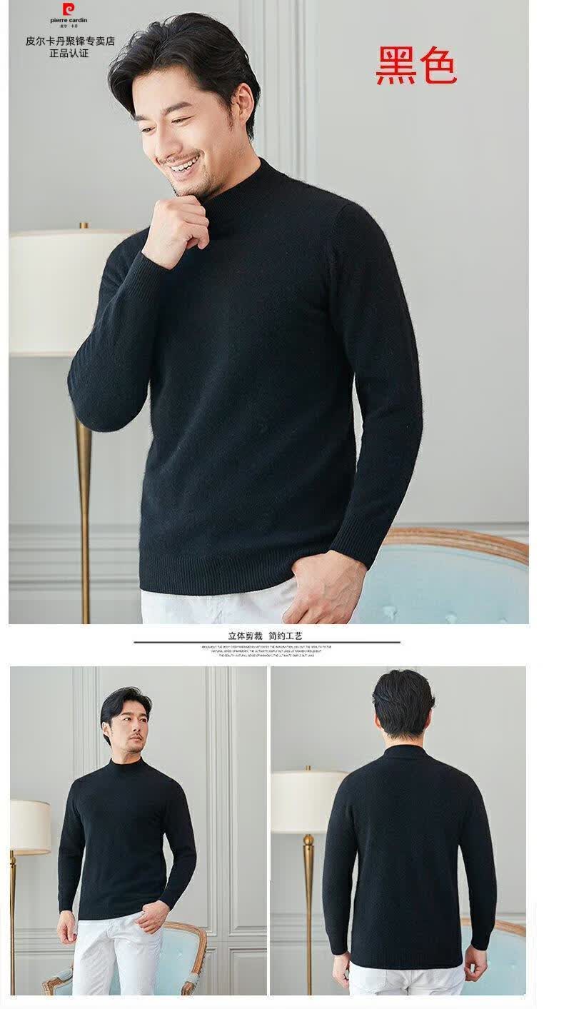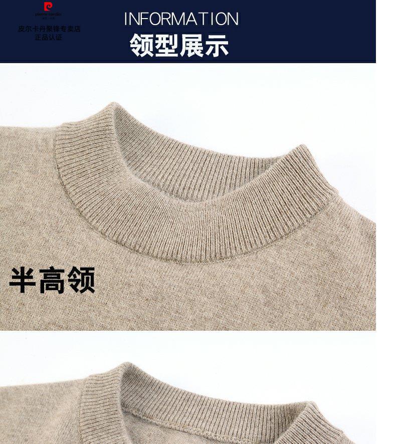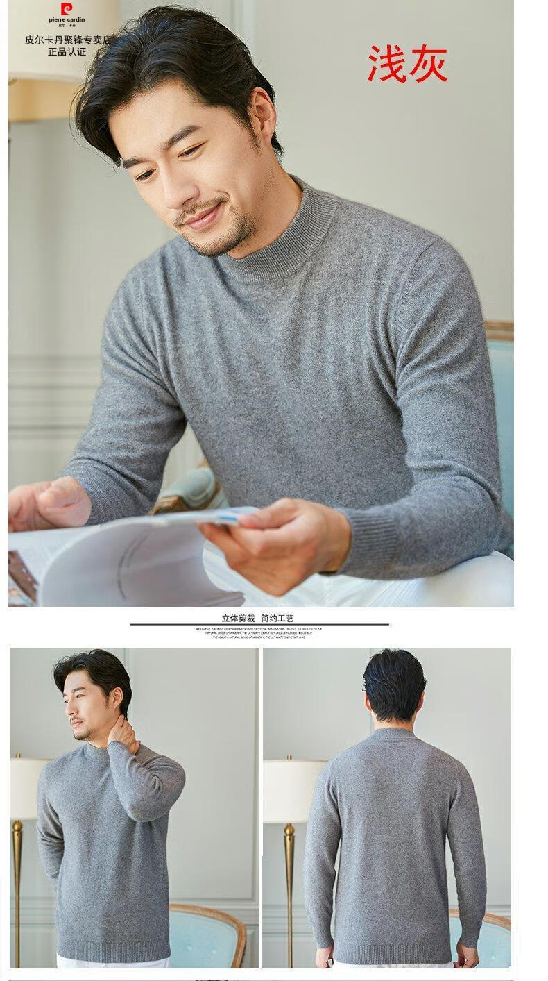 Pierre Cardin brand high-end men's thickened woolen sweater half turtleneck bottoming sweater round neck woolen sweater dad sweater half turtleneck/medium gray M 16590-115Jin Jin equals 0.5 kg
