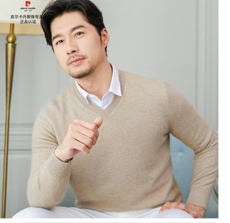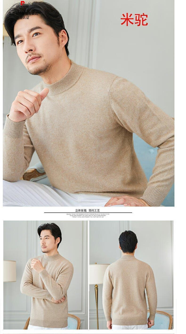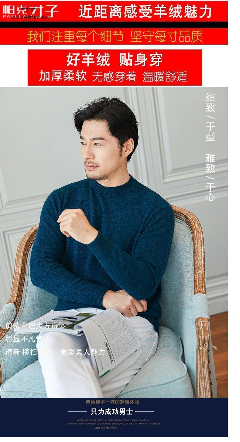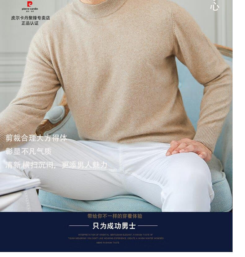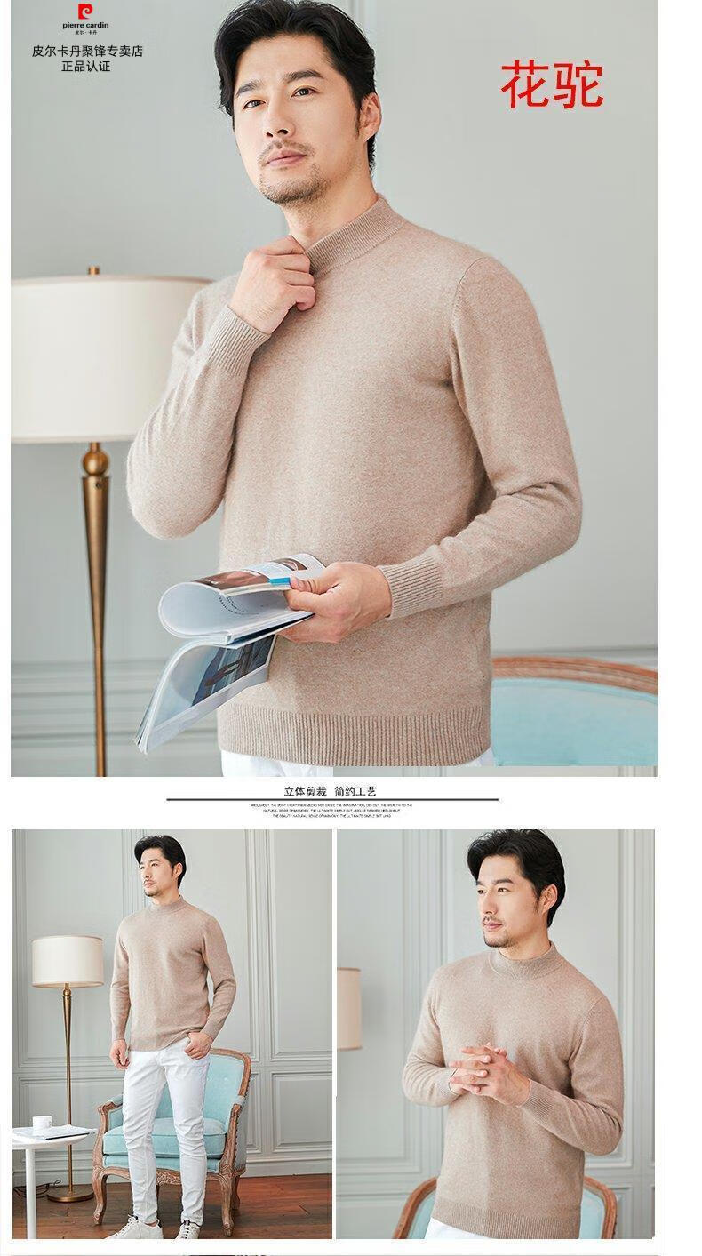 Pierre Cardin brand high-end men's thickened woolen sweater half turtleneck bottoming sweater round neck woolen sweater dad sweater half turtleneck/medium gray M 16590-115Jin Jin equals 0.5 kg
