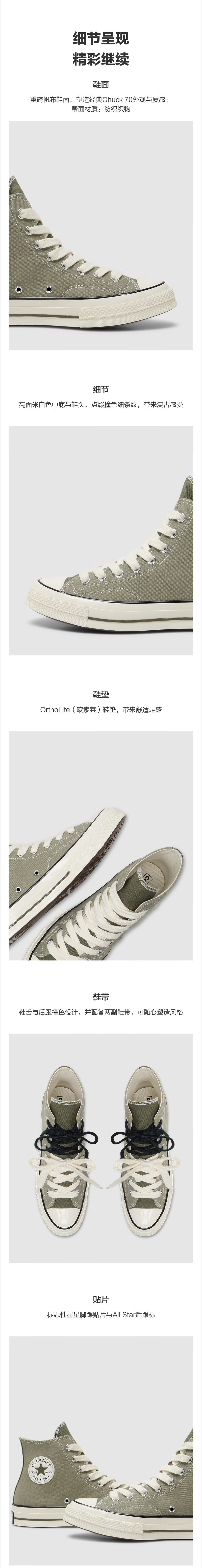 Converse CONVERSE Converse 1970S autumn and winter new sports men's and women's casual sneakers light olive green green A17903C A17903C 43