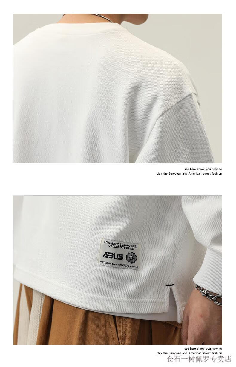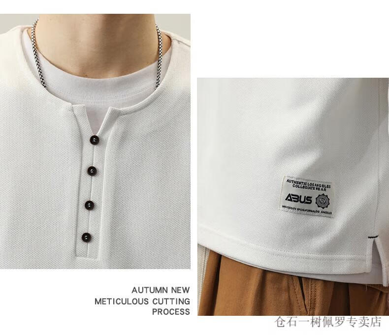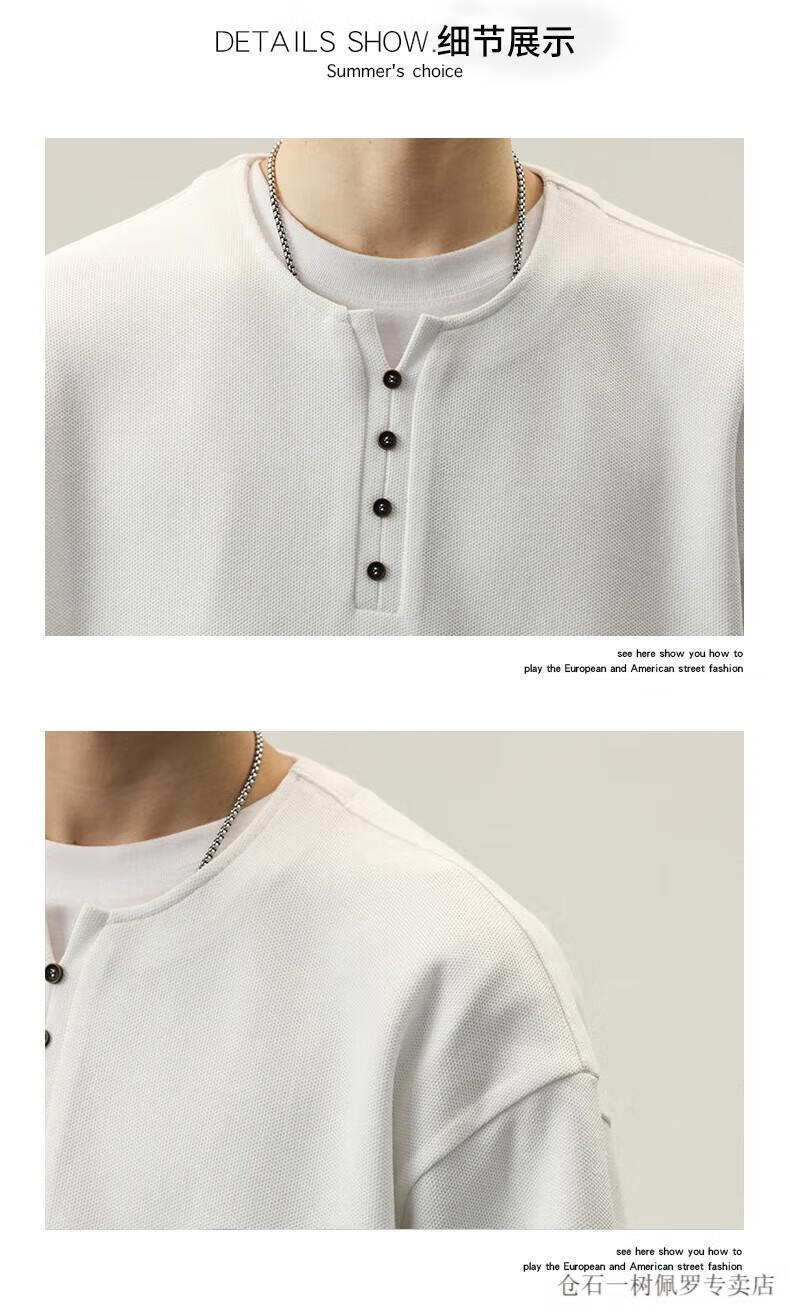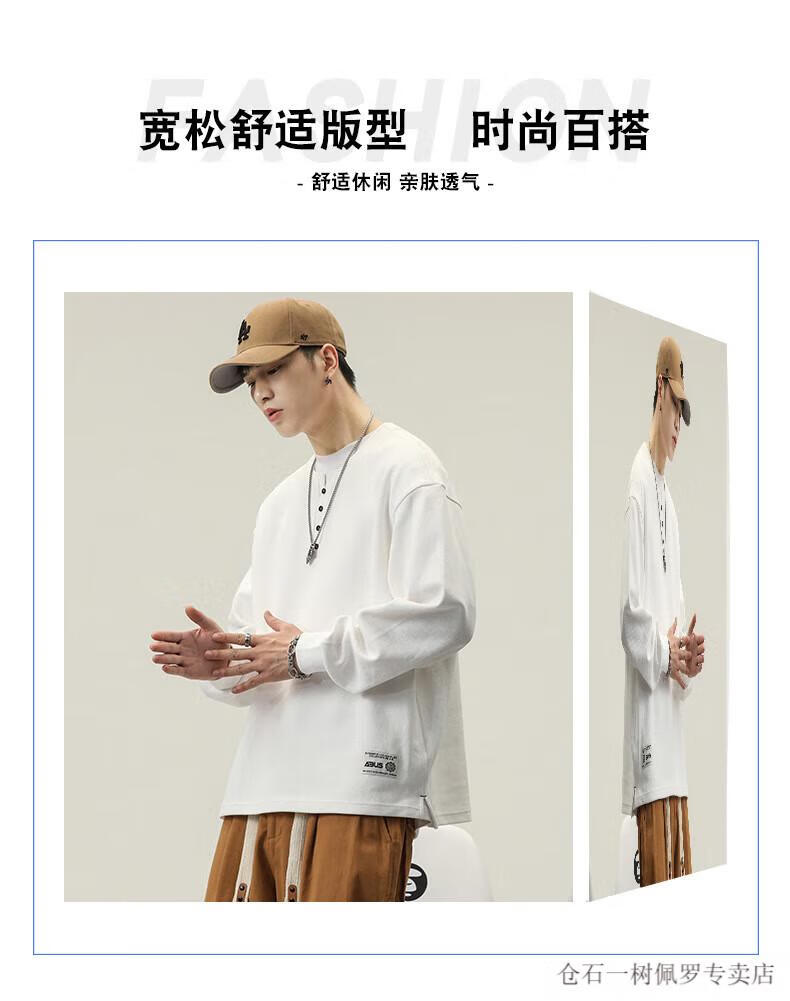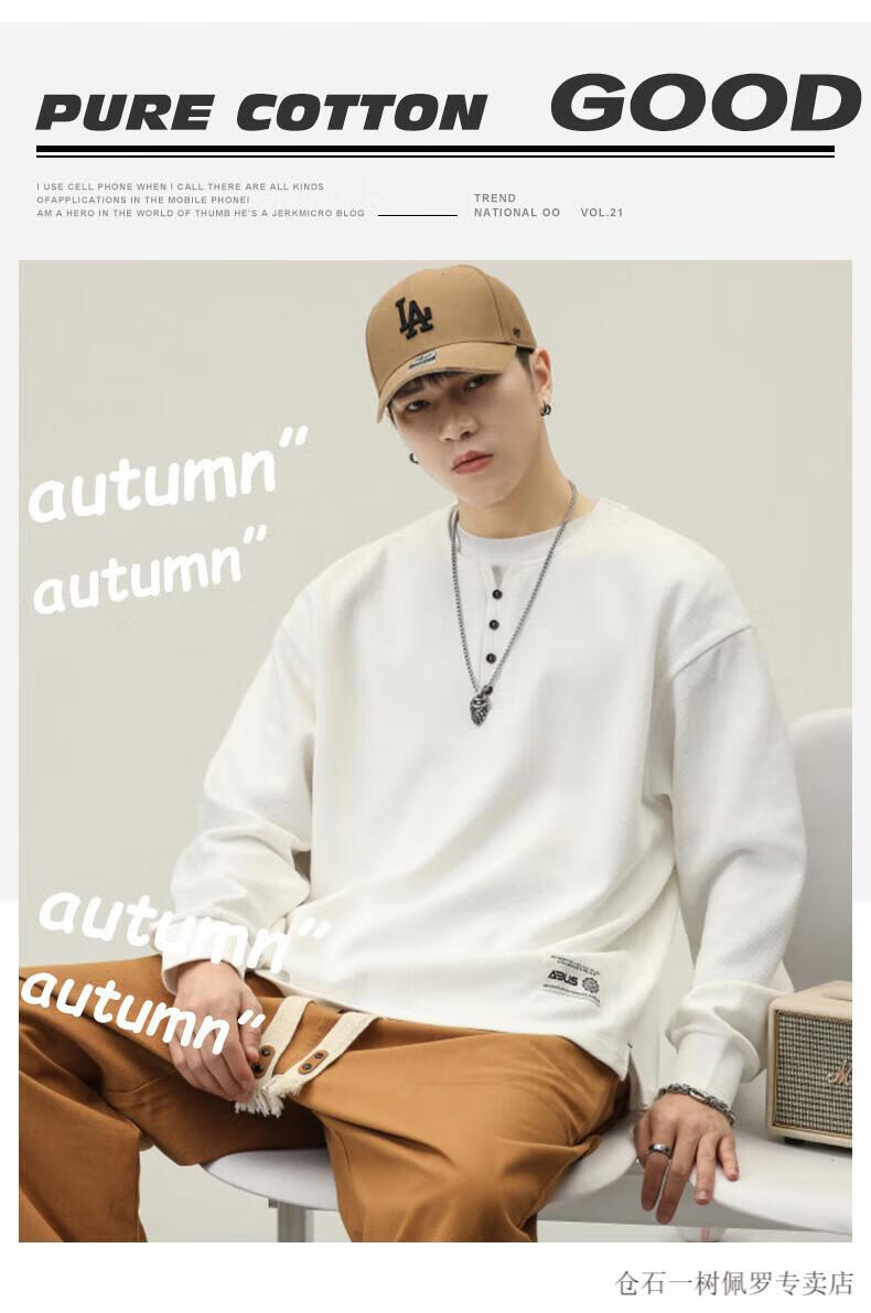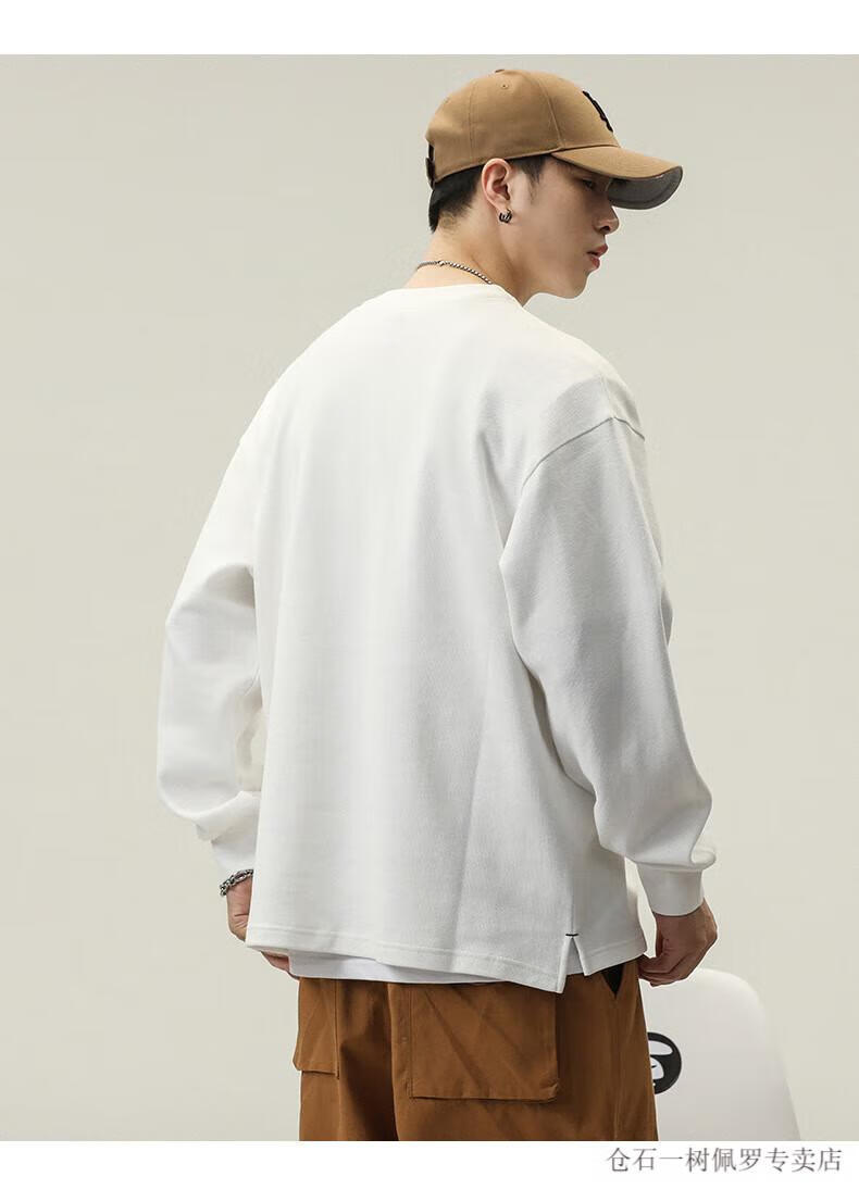 Kuraishi Kazuki autumn heavy cotton men's long-sleeved T-shirt loose large size American fashion brand casual Henry collar bottoming shirt sweatshirt black M suitable for 110-130Jin Jin equals 0.5 kg