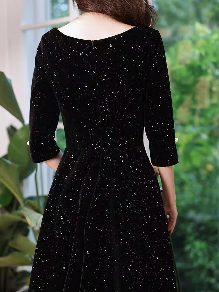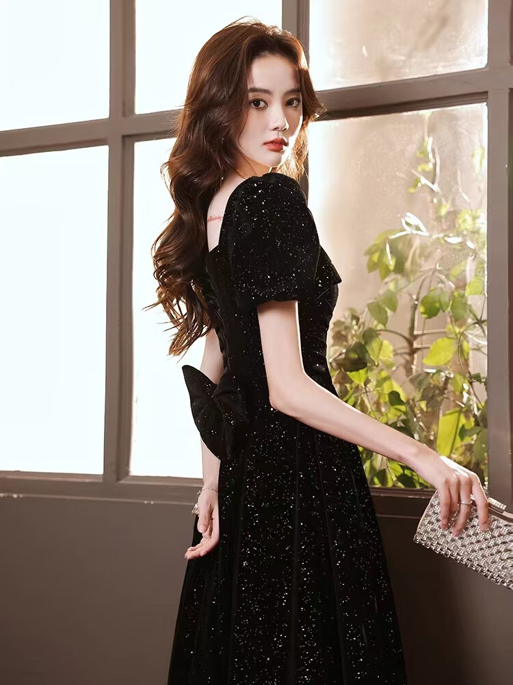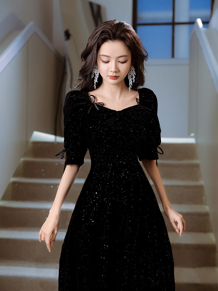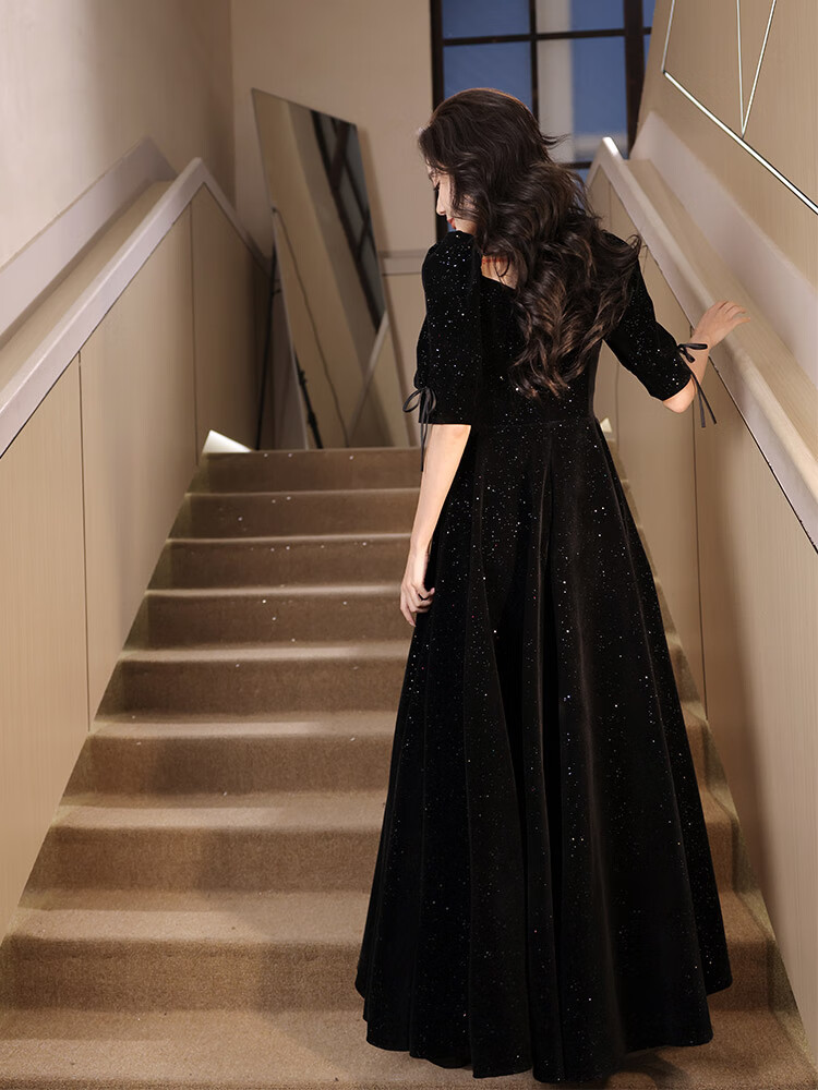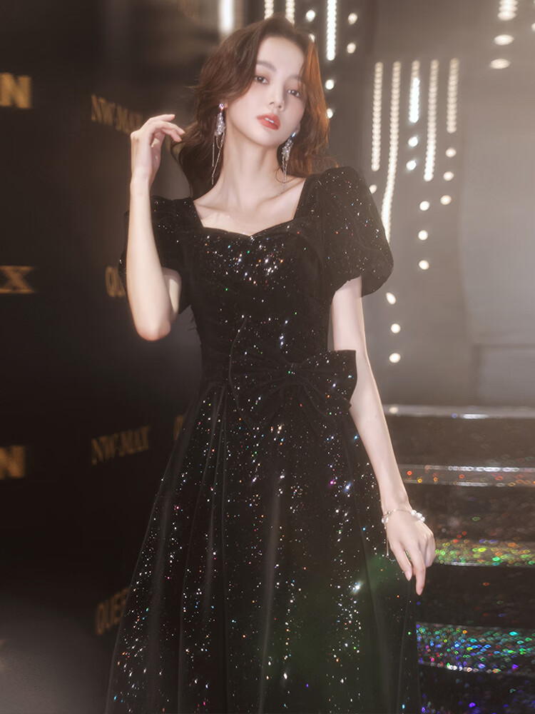 Timochi Music Student Art Exam Dress Female Vocal Performance Costume Black Dinner Party Temperament High-end Light Luxury Niche French Adult Black 6 Zip S
