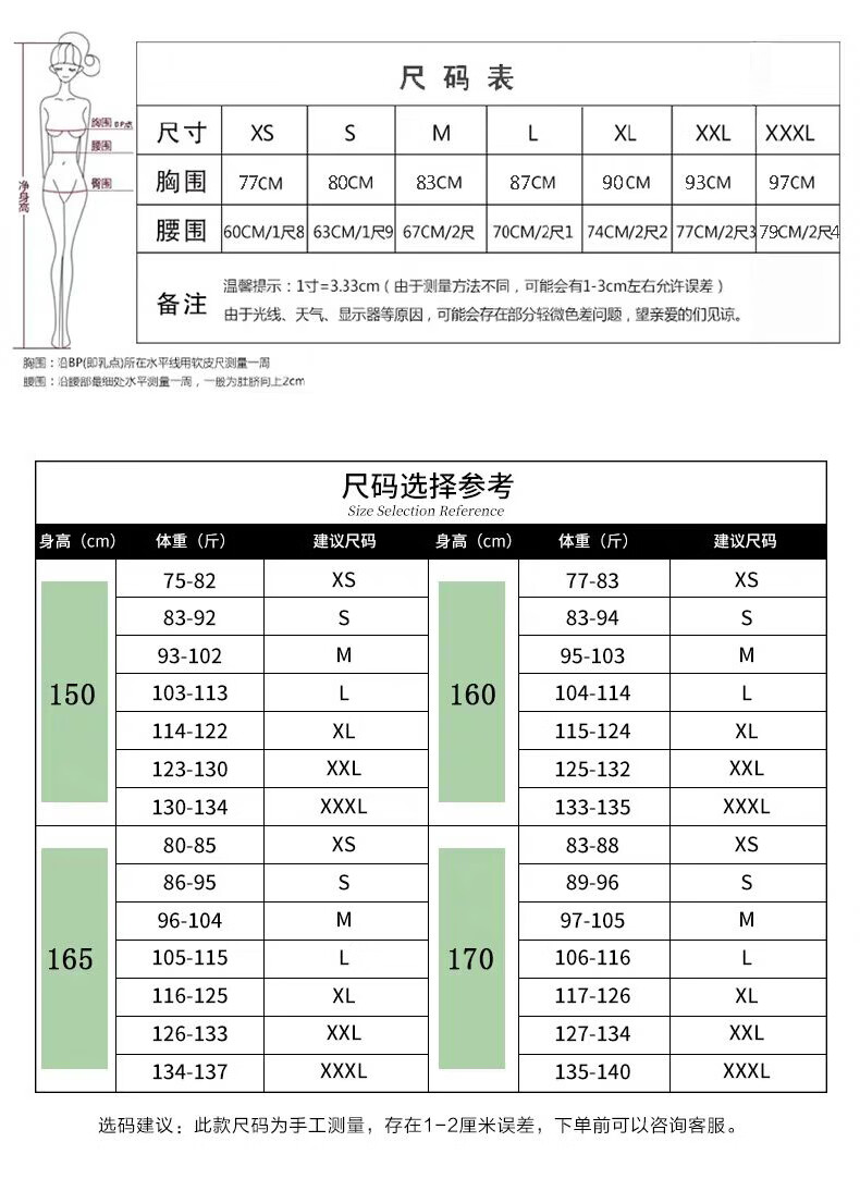 China (cm) 160-165/84-86 165-170 / 88-90 167-172 / 92-96 168-173 / 98-102 170-176 / 106-110