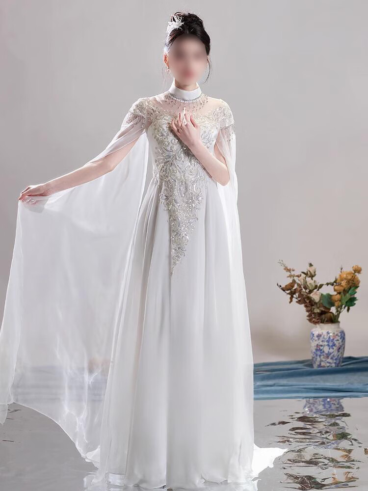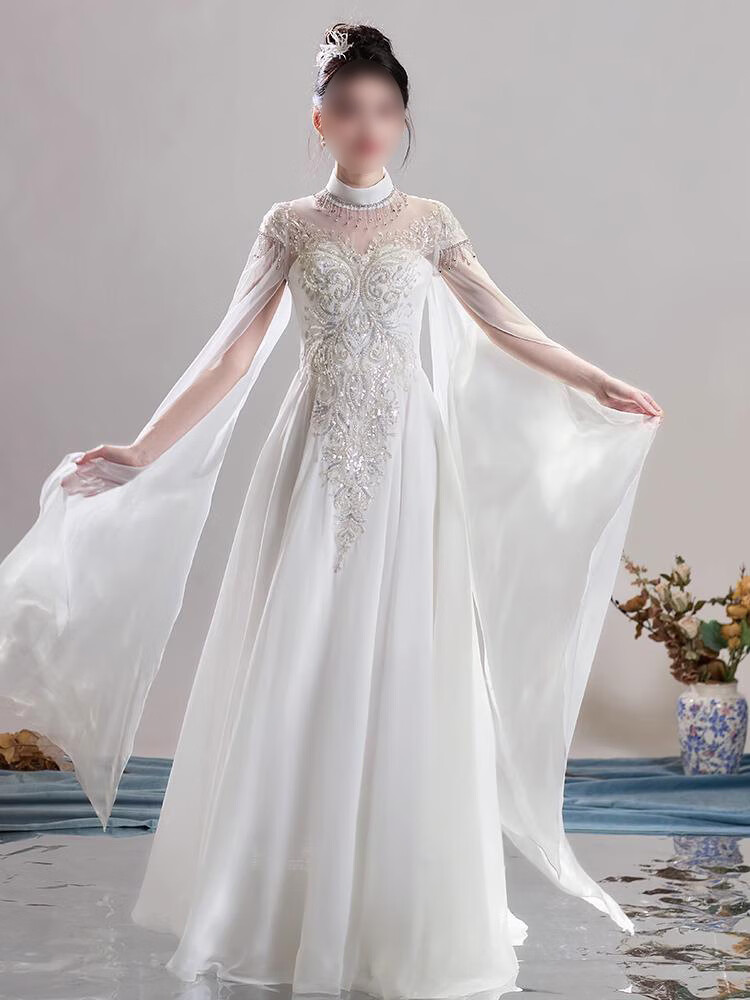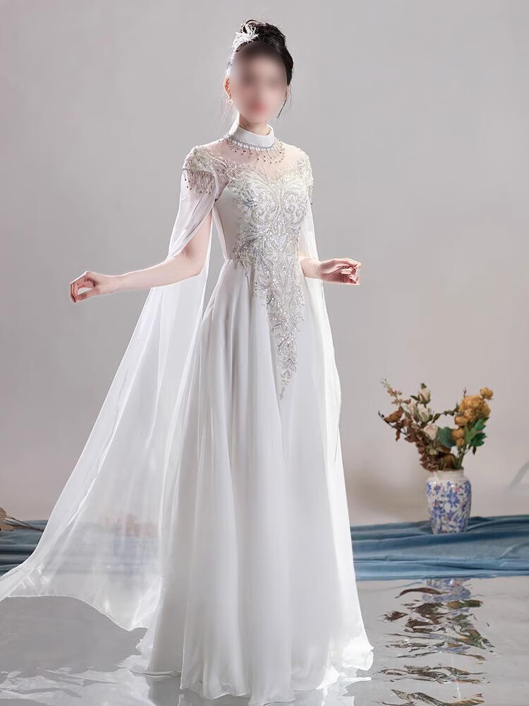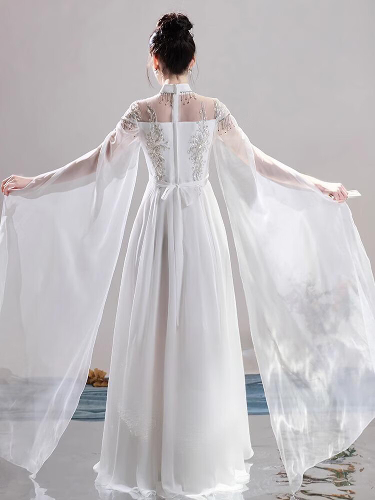 Timochi guzheng performance clothing Hanfu folk music performance dress Chinese style female white student art exam chorus fairy skirt long white L