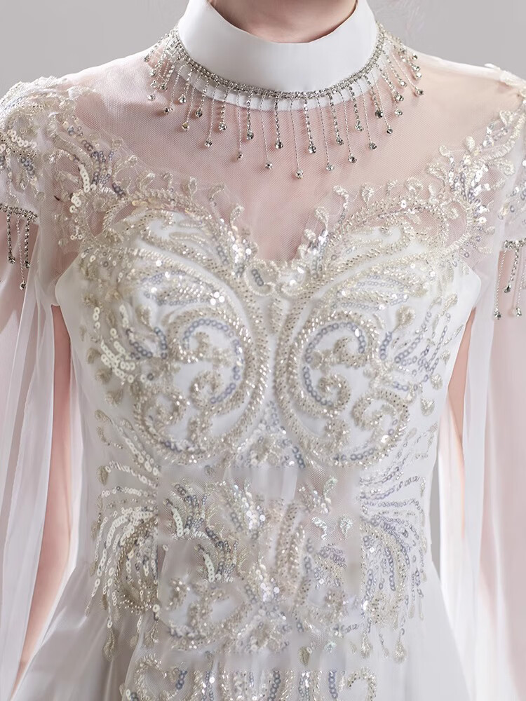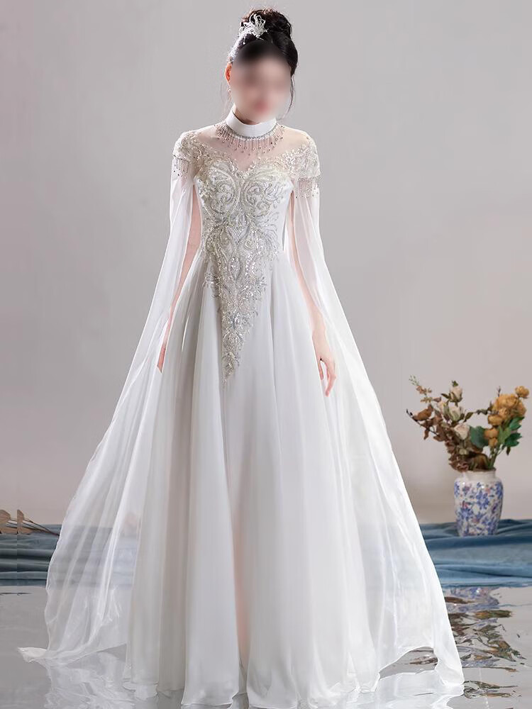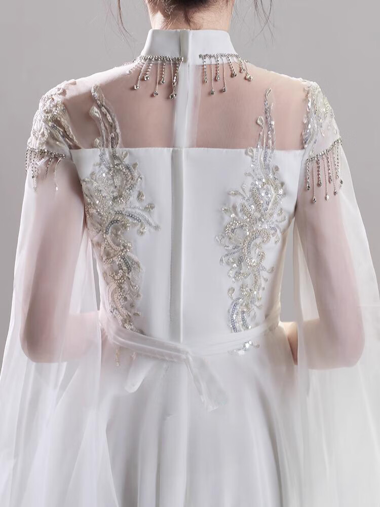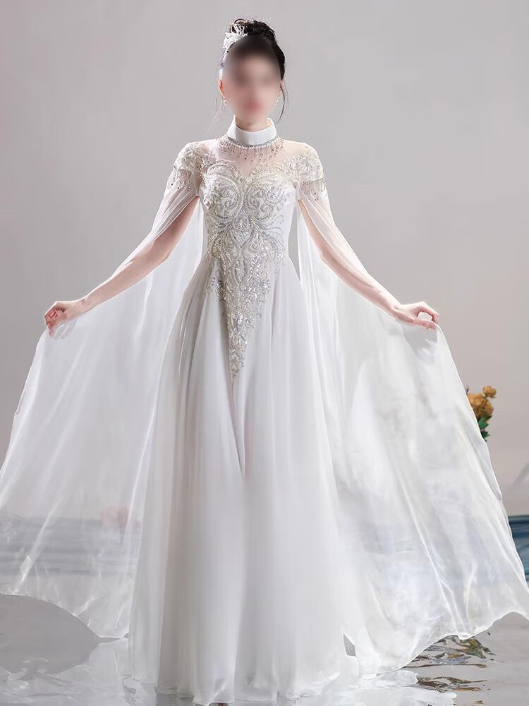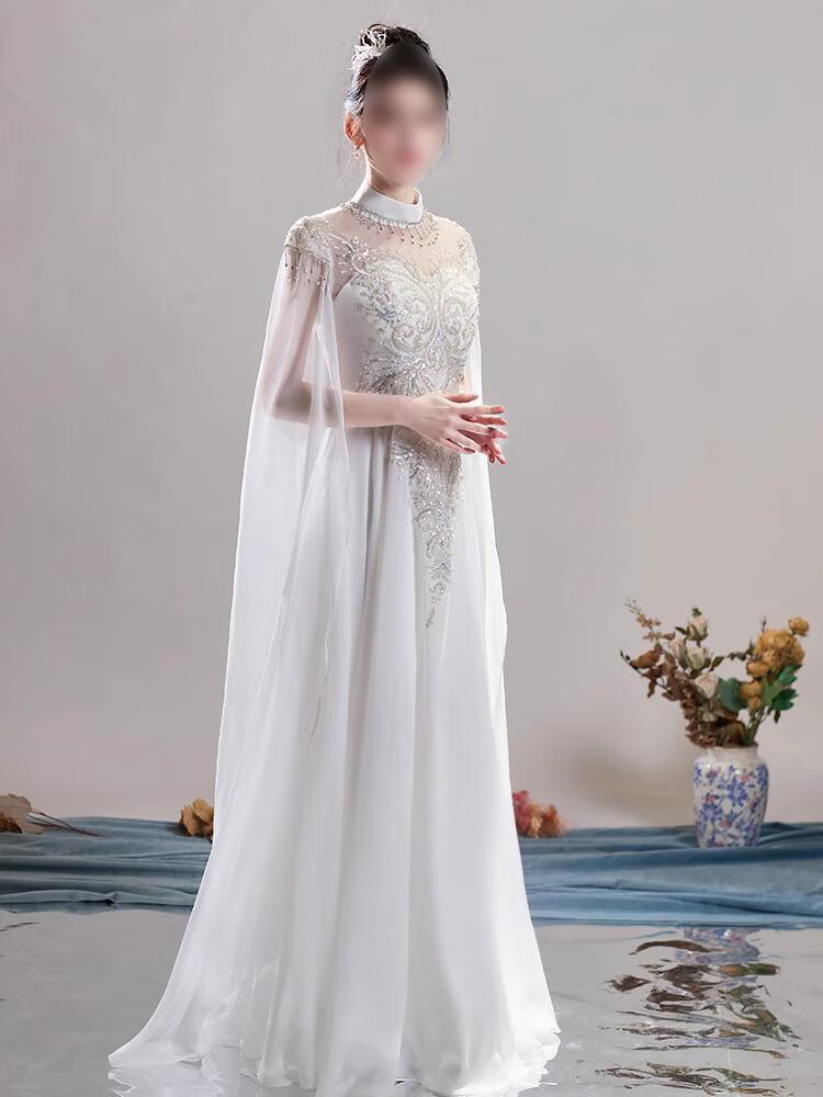 Timochi guzheng performance clothing Hanfu folk music performance dress Chinese style female white student art exam chorus fairy skirt long white L
