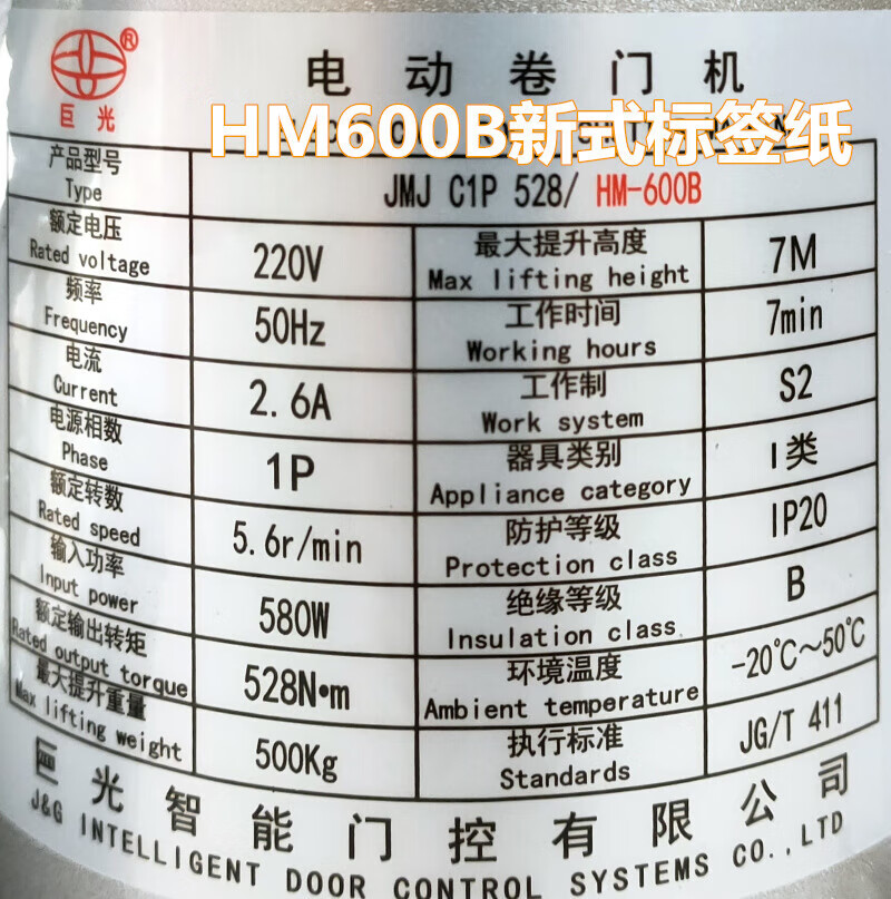 Juguang rolling door motor dark horse HM-600B iron armor TJ-500B anti-chain rolling door machine remote control door machine + remote HM600 single motor