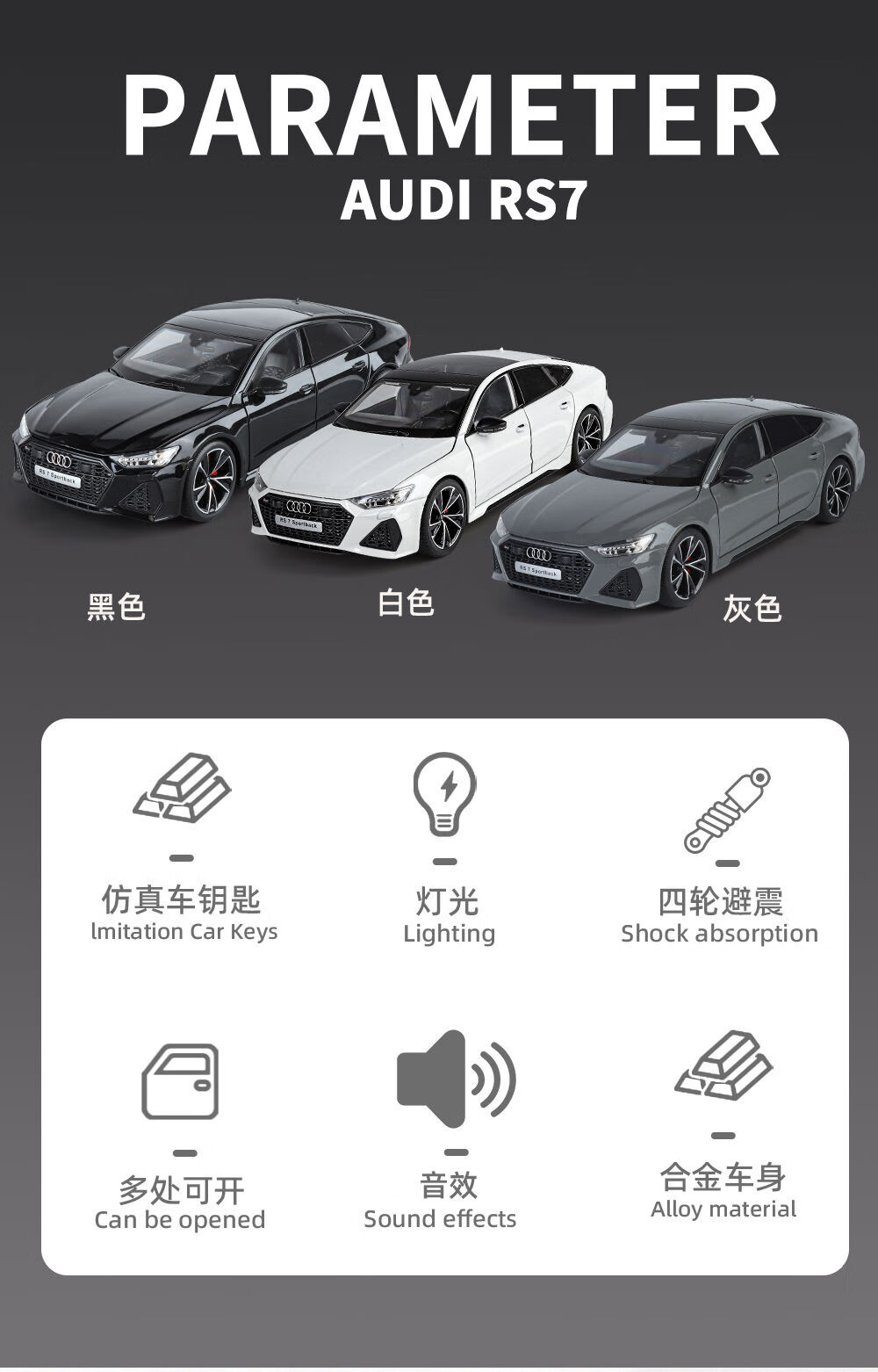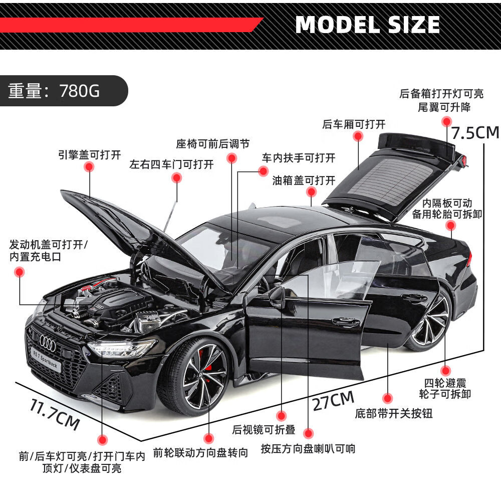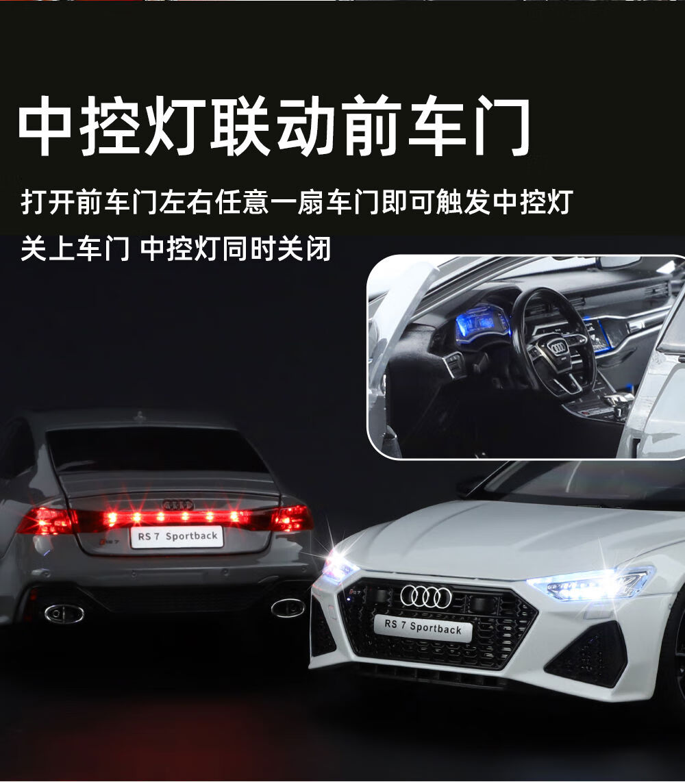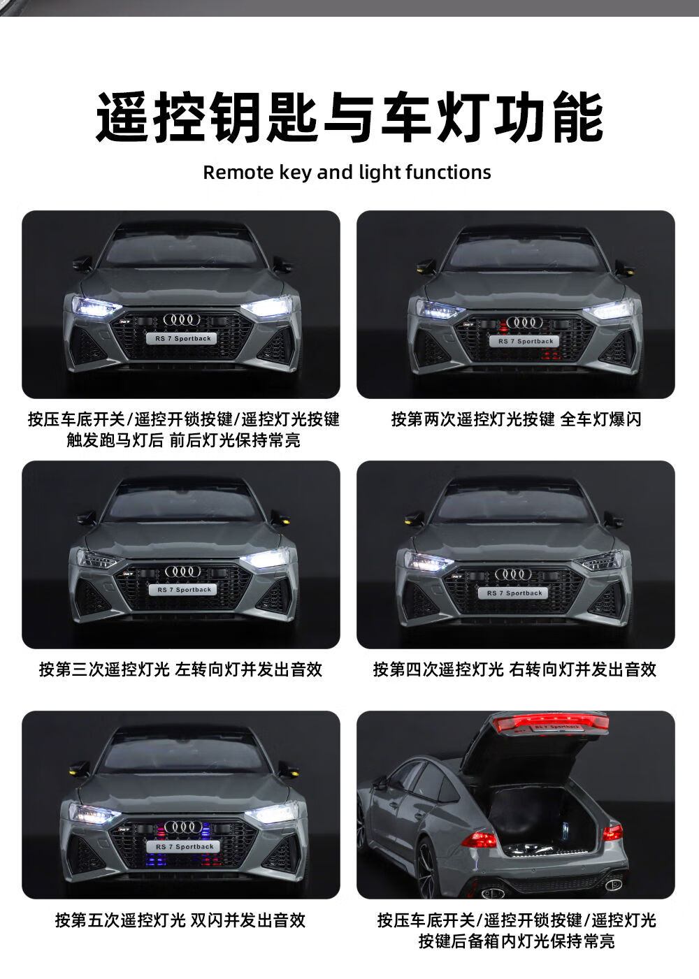 Yier 1:18 alloy key remote control Audi RS7 black performance car model modified light version male sports car for children 1-18 Audi RS7-gray super full function