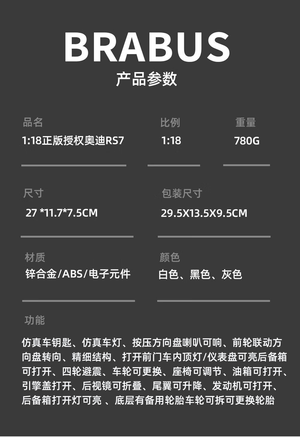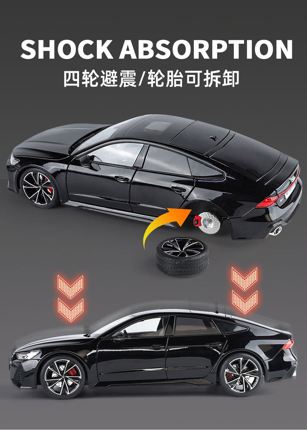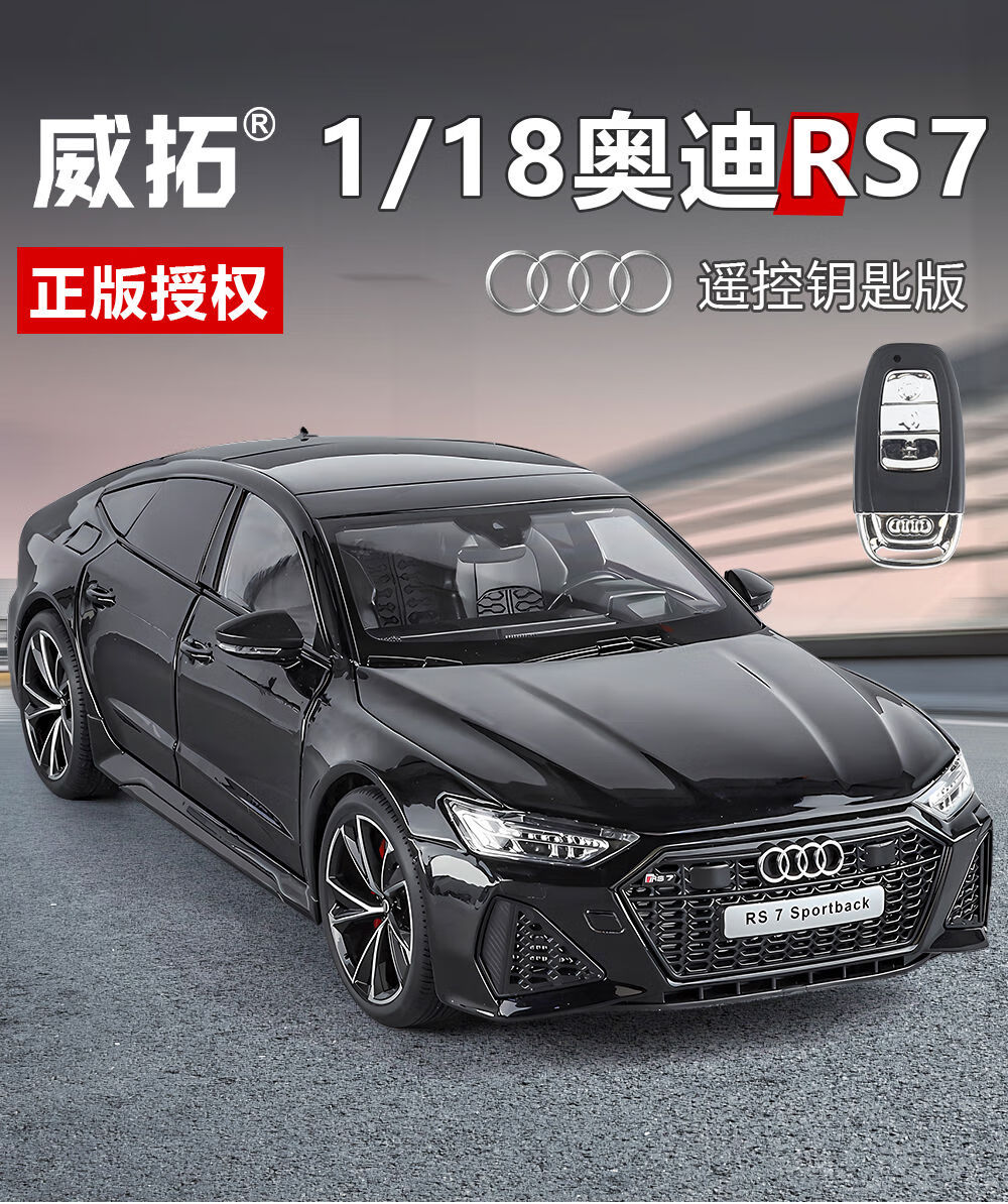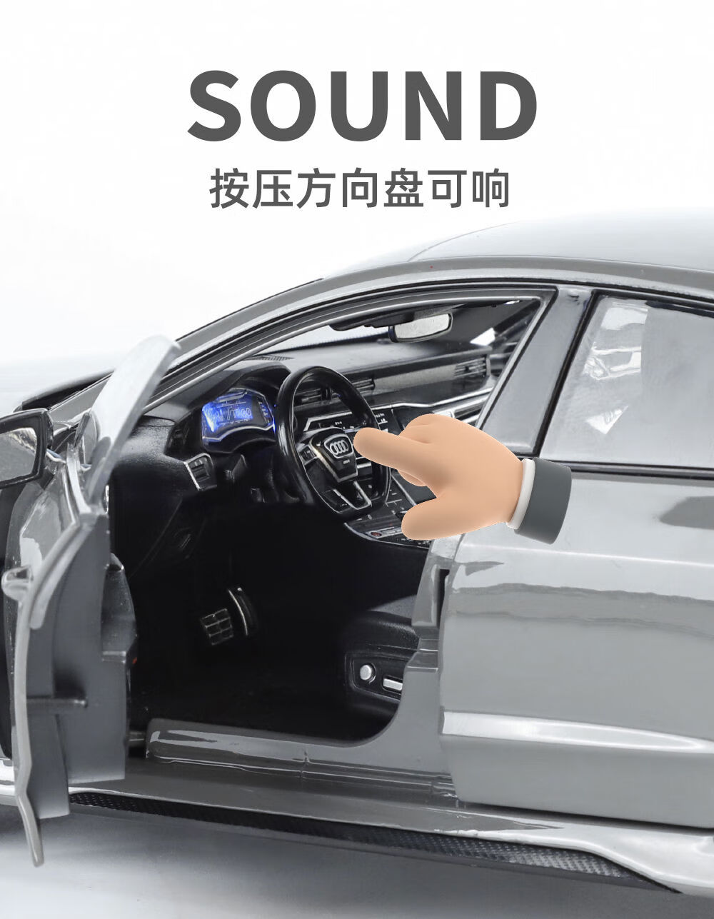 Yier 1:18 alloy key remote control Audi RS7 black performance car model modified light version male sports car for children 1-18 Audi RS7-gray super full function