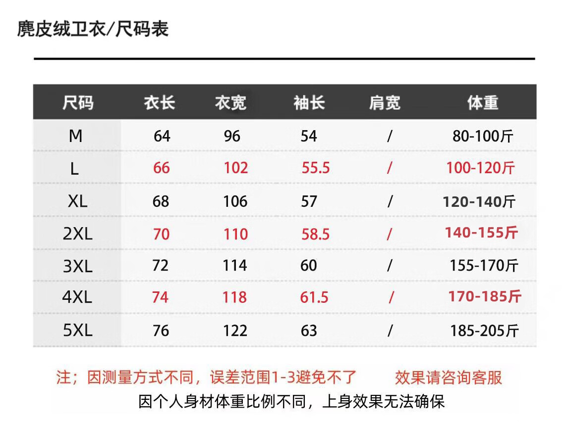 China (cm) 165 / 88-90 170 / 96-98 175 / 108-110 180 / 118-122 185 / 126-130