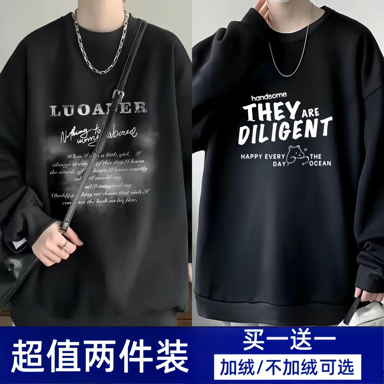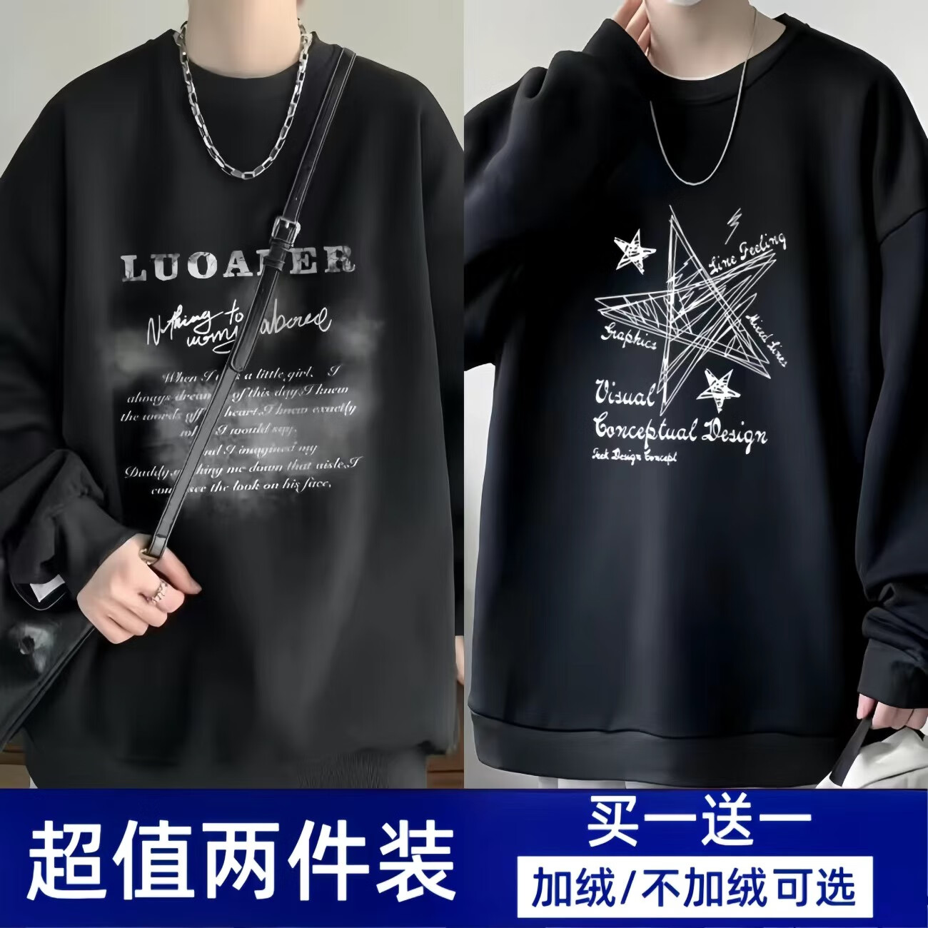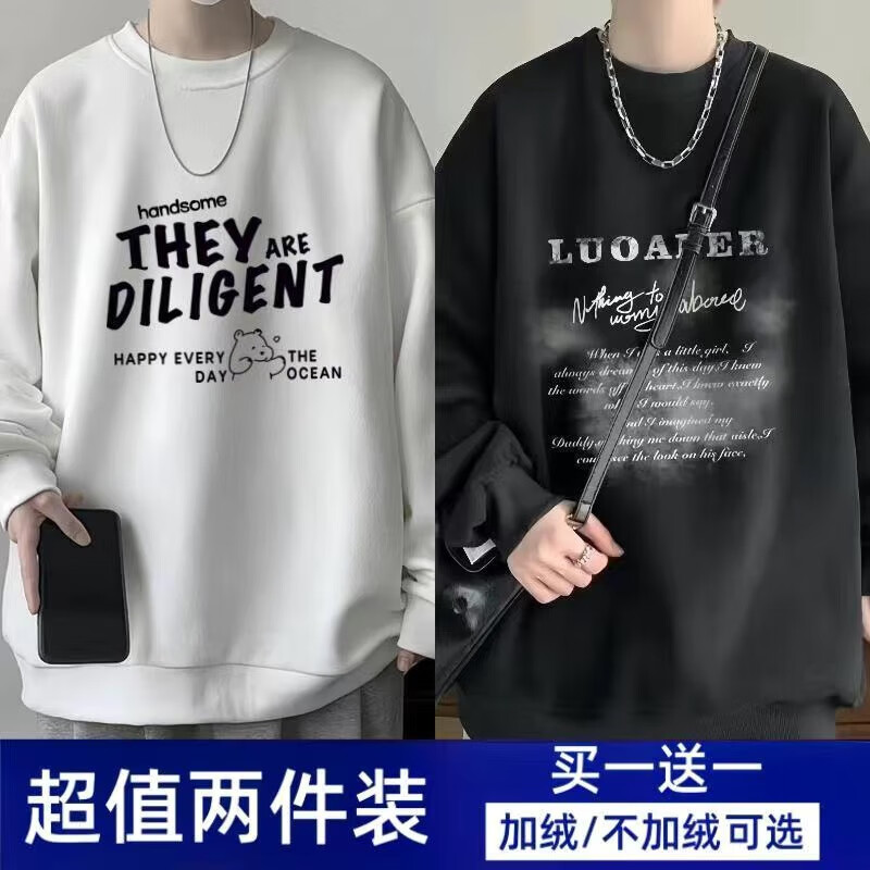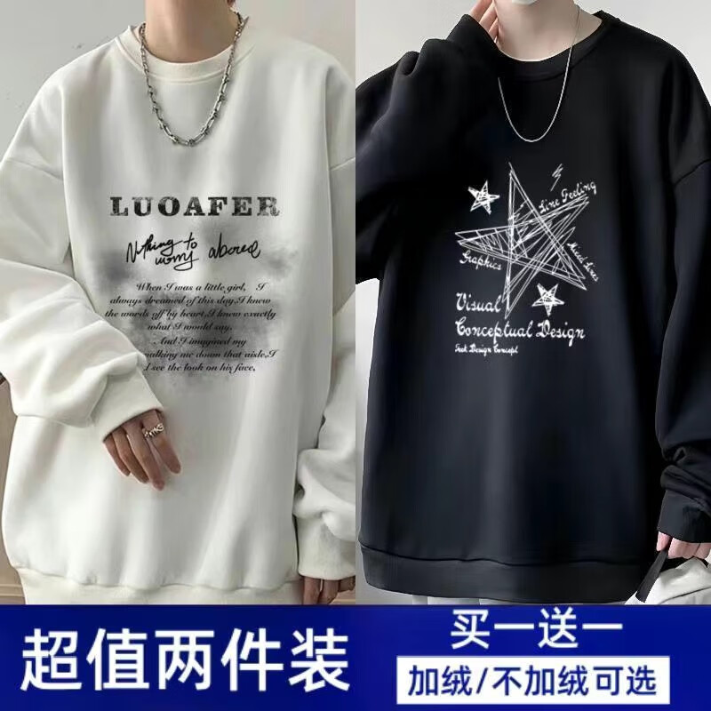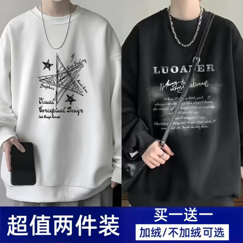Woodpecker 2-piece sweatshirt men's spring and autumn loose top ins round neck long-sleeved trendy bottoming shirt jacket LUO white + five-pointed star black (regular) XL recommended weight 120-140Jin Jin is equal to about 0.5 kg