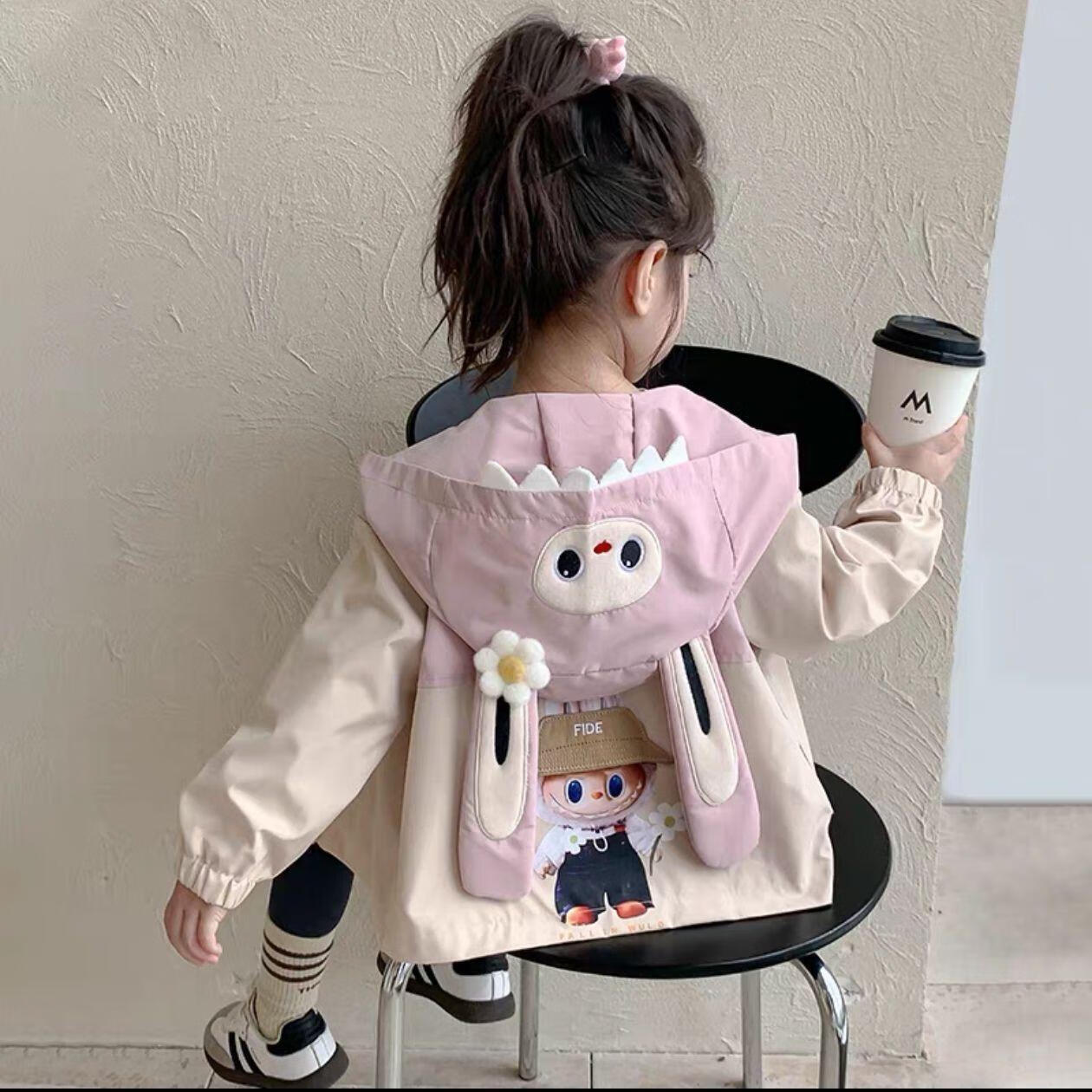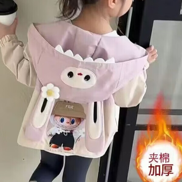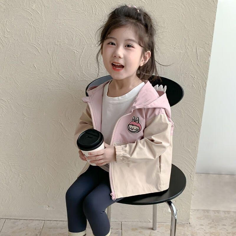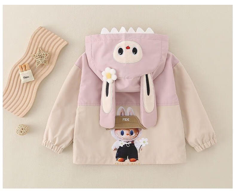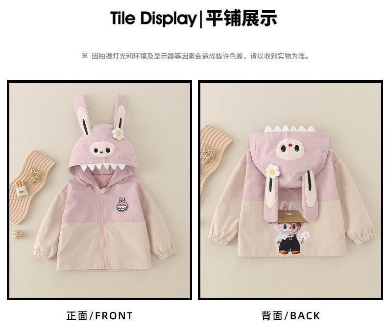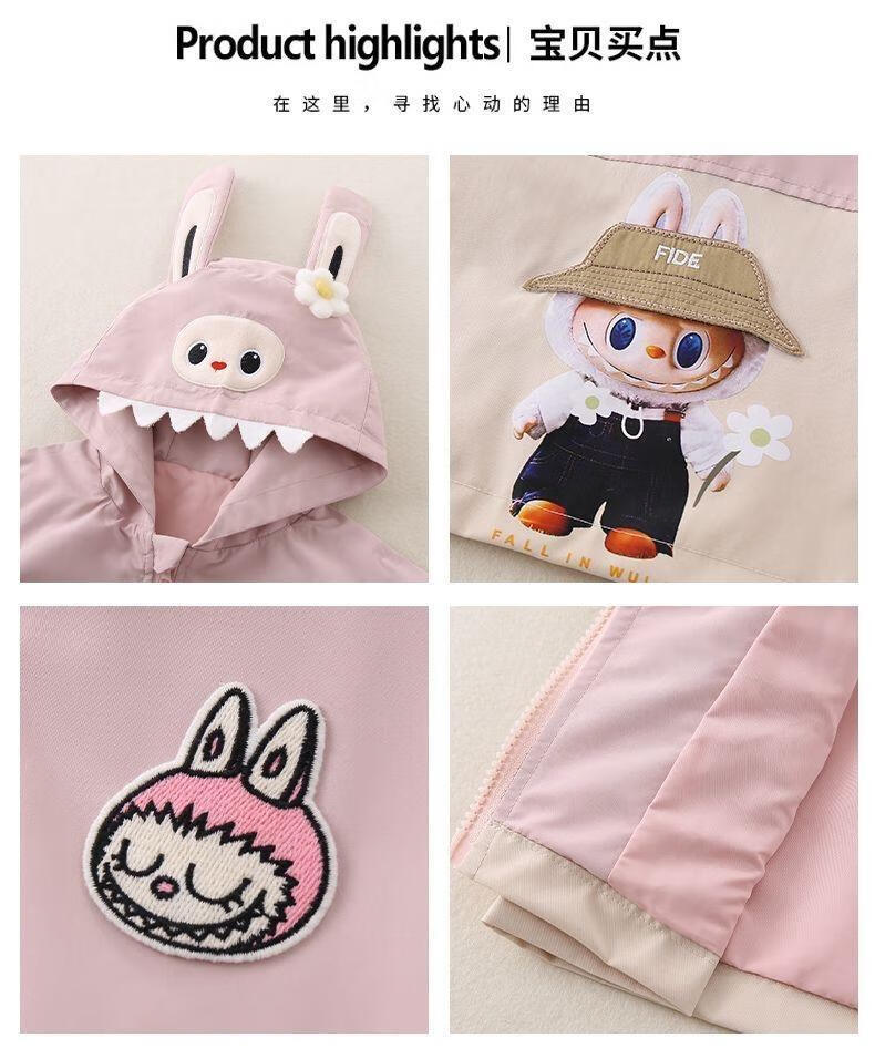 Labubu Girls' Style Jacket Spring and Autumn 2025 New Top Baby Hooded Jacket Autumn Children's Autumn Clothing Pink 140 One Size Small